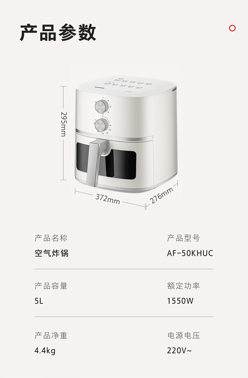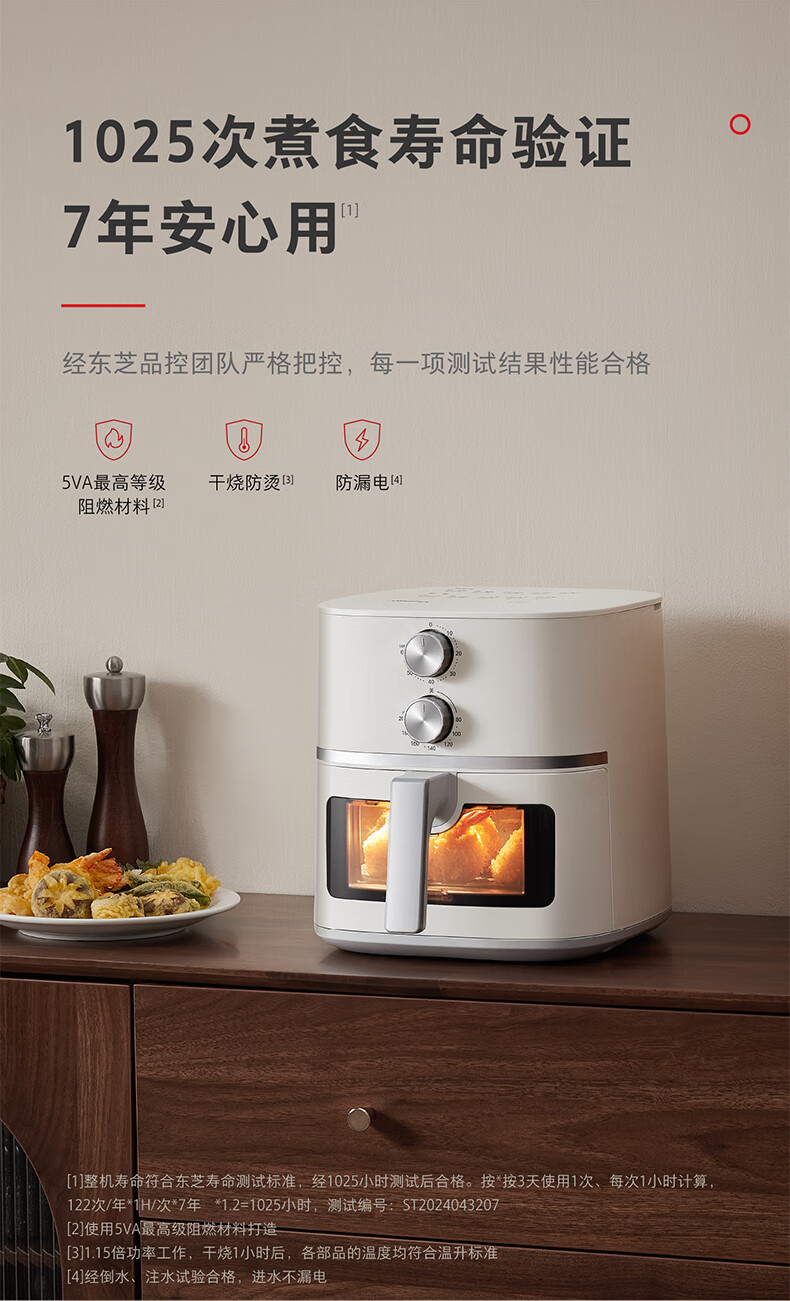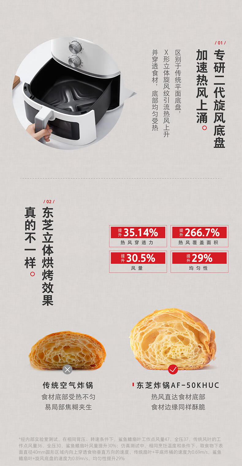 东芝(TOSHIBA)二代旋风底盘 空炸鲨鱼鳍扇叶 低油轻脂不粘 双旋钮操作 5L空气炸锅AF-50KHUC