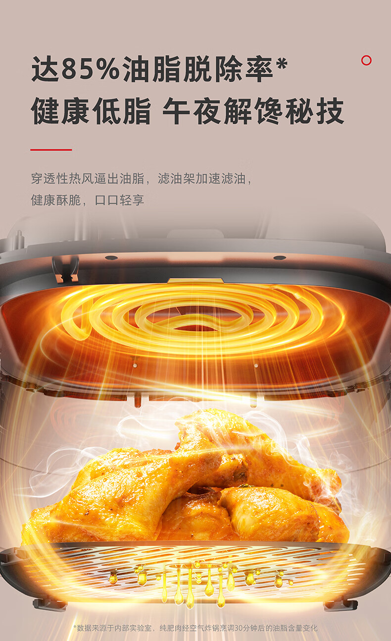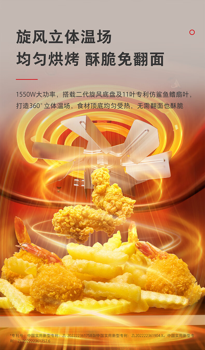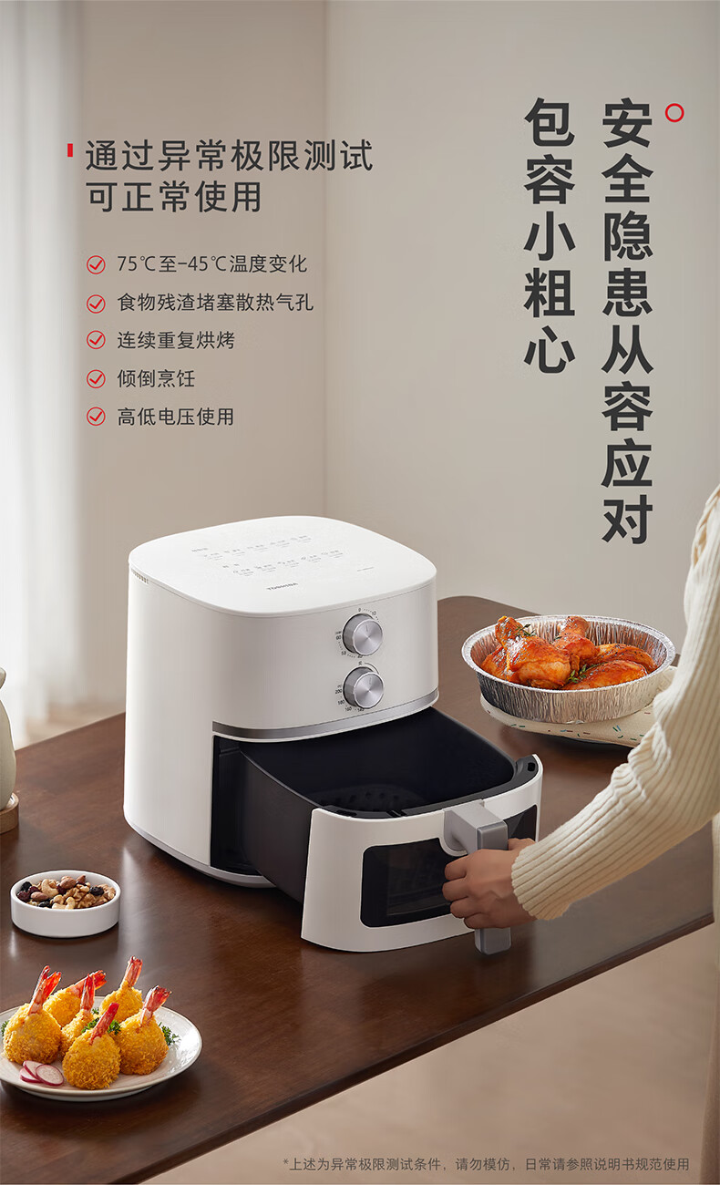 东芝(TOSHIBA)二代旋风底盘 空炸鲨鱼鳍扇叶 低油轻脂不粘 双旋钮操作 5L空气炸锅AF-50KHUC