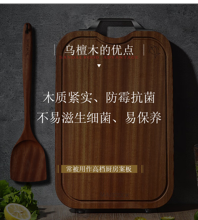双枪乌金檀木整木菜板 百年龄砧板家用切菜案板抗菌实木菜板45*30*2.5