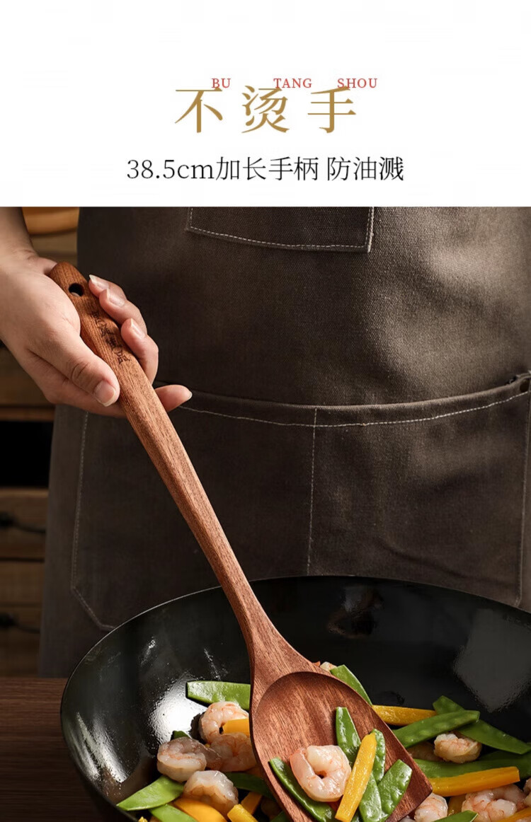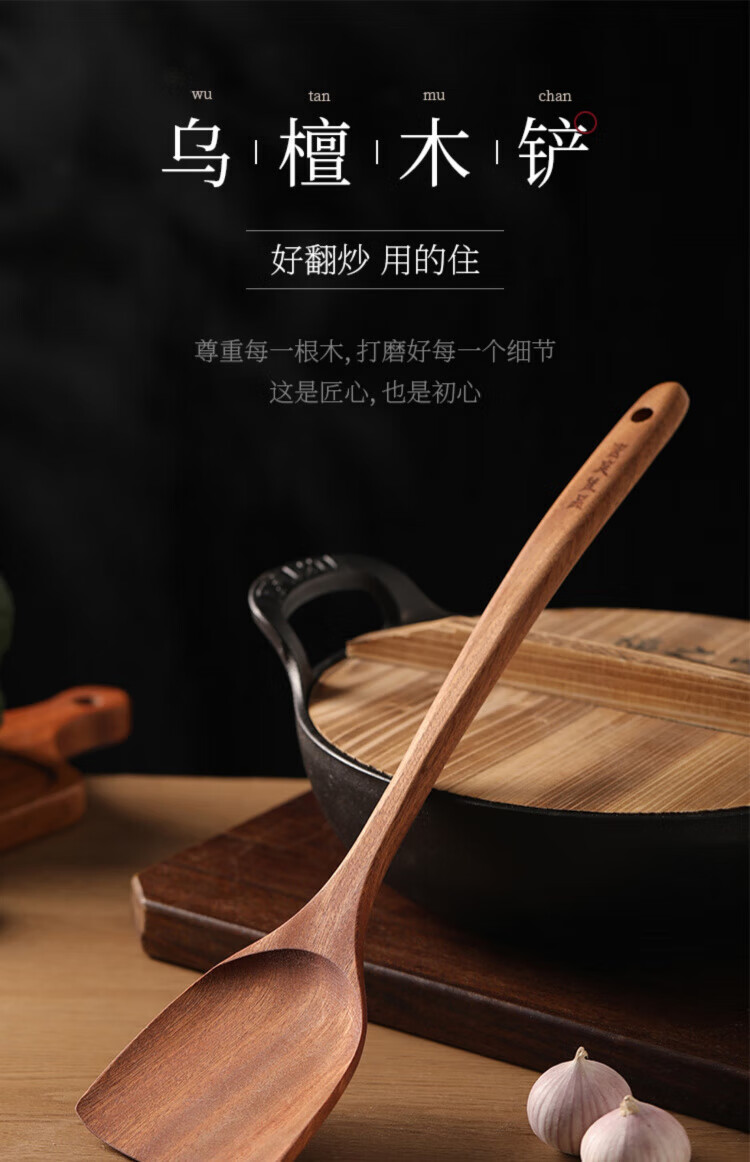WCZ德国乌檀木锅铲家用不粘锅专用木质木勺木头炒菜铲子食品级耐高温 佳品乌檀木加长锅铲