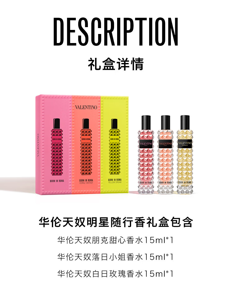 华伦天奴罗马女士香水套装3x15ml生日礼物圣诞礼物送女友|效期至26年9月