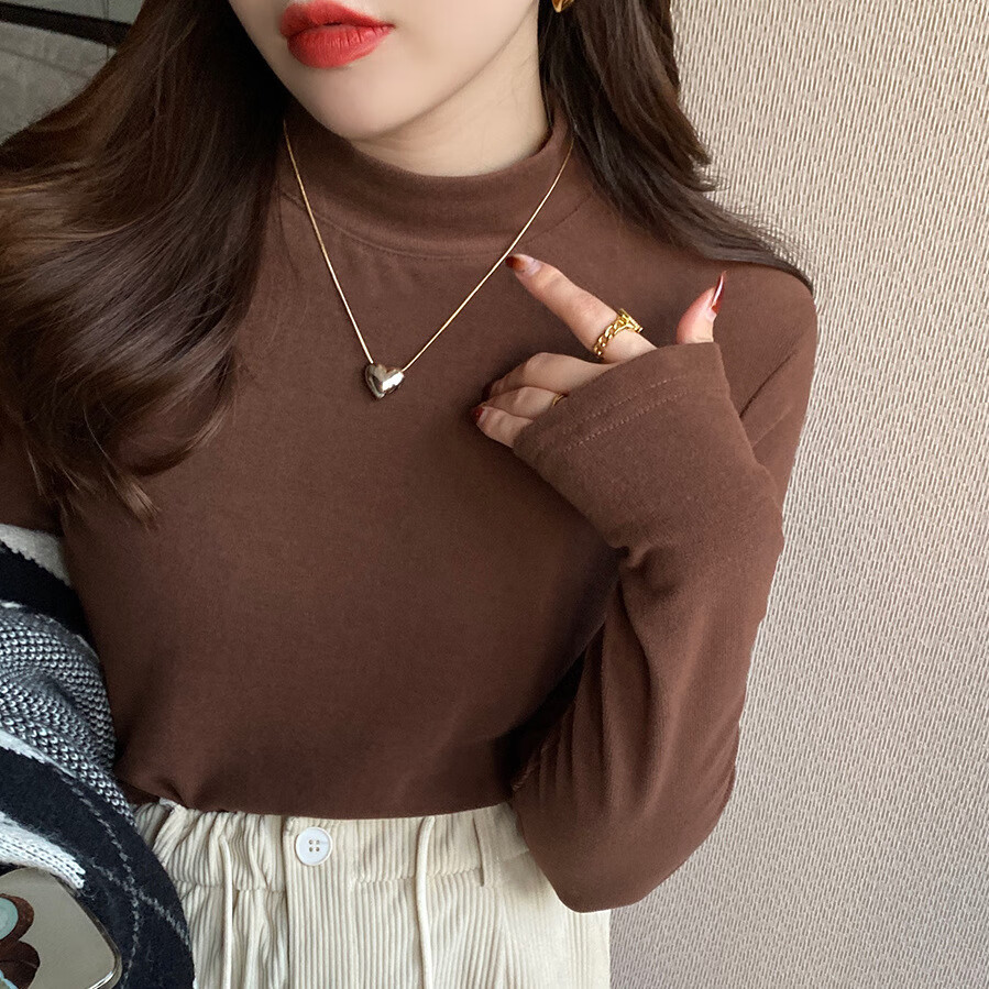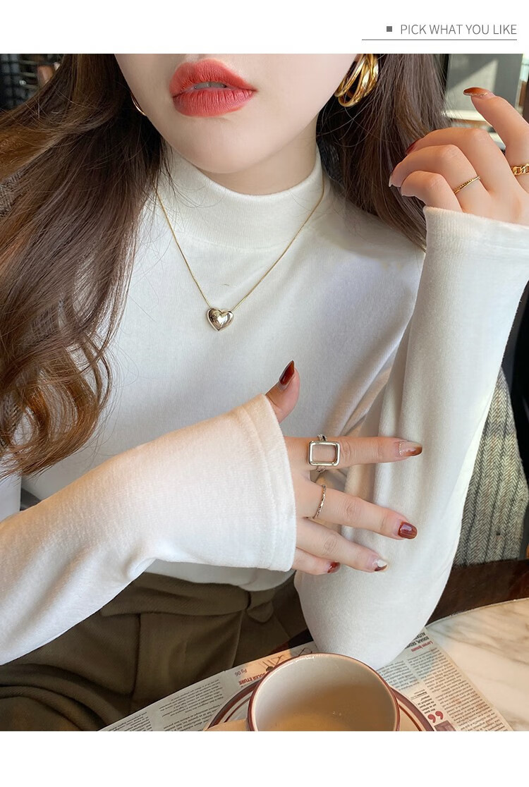 燠阳半高领打底衫女长袖加绒加厚修身显瘦秋冬德绒黑色内搭保暖上衣衫 半高领白色 L 【95-110斤】