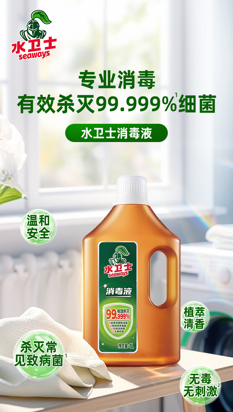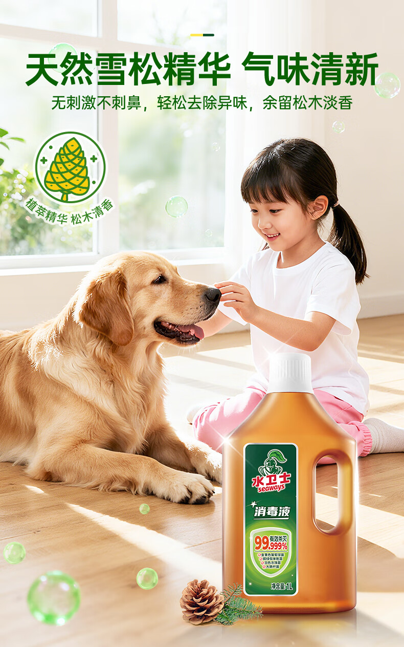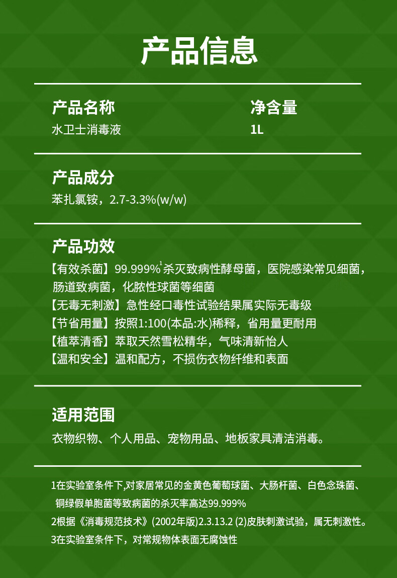 水卫士家居衣物消毒液1L 母婴友好衣物地板玩具宠物用品消毒杀菌除菌液 【松木清香】1L*2瓶