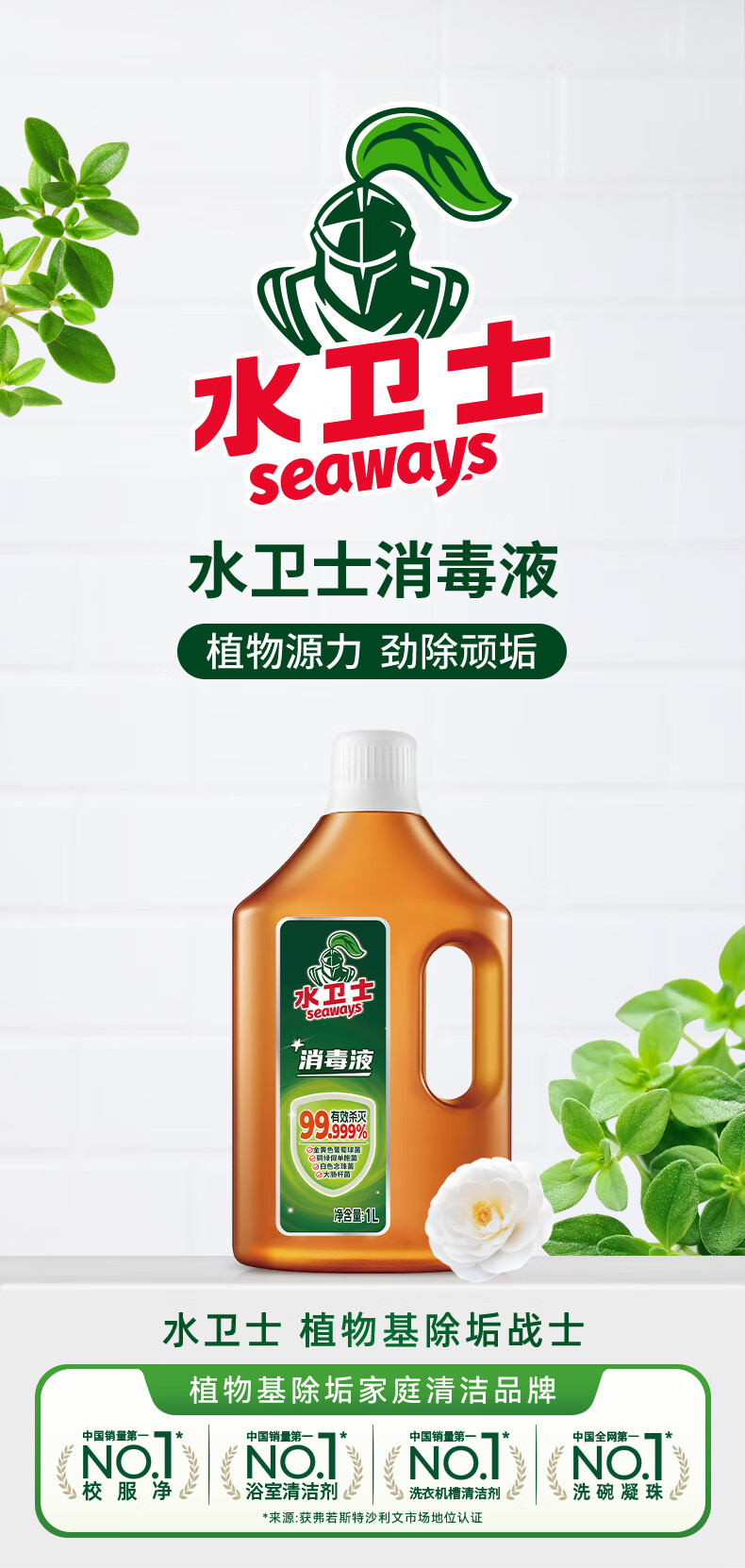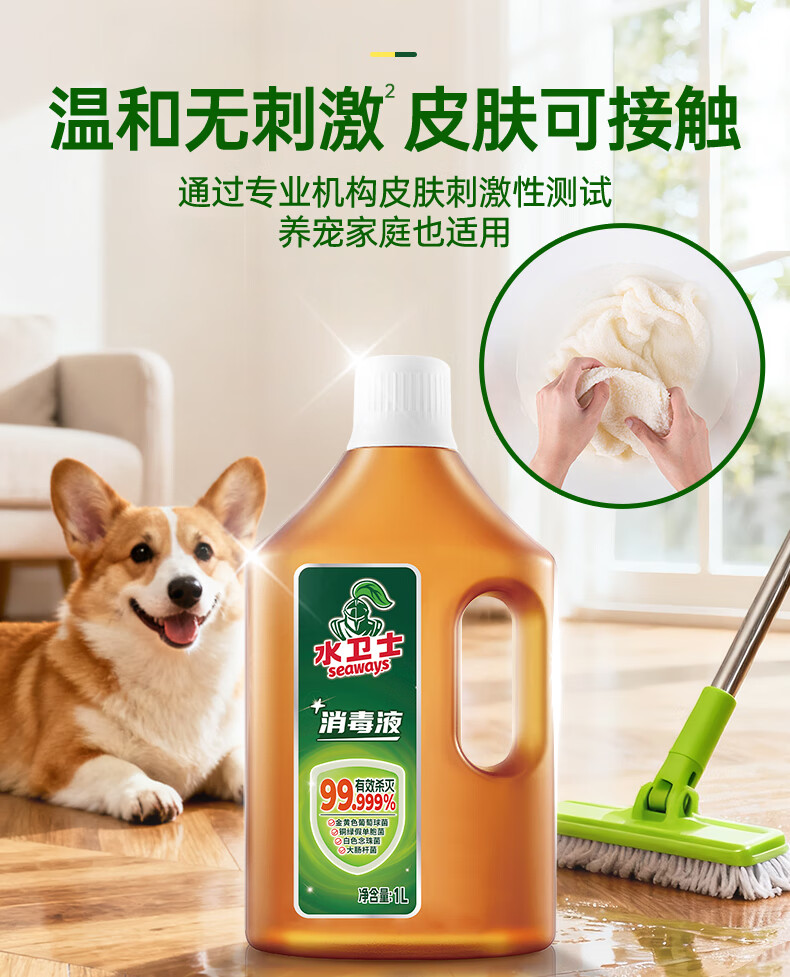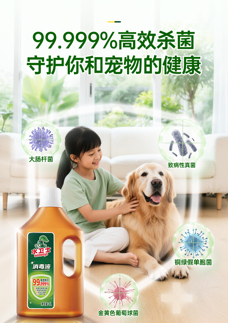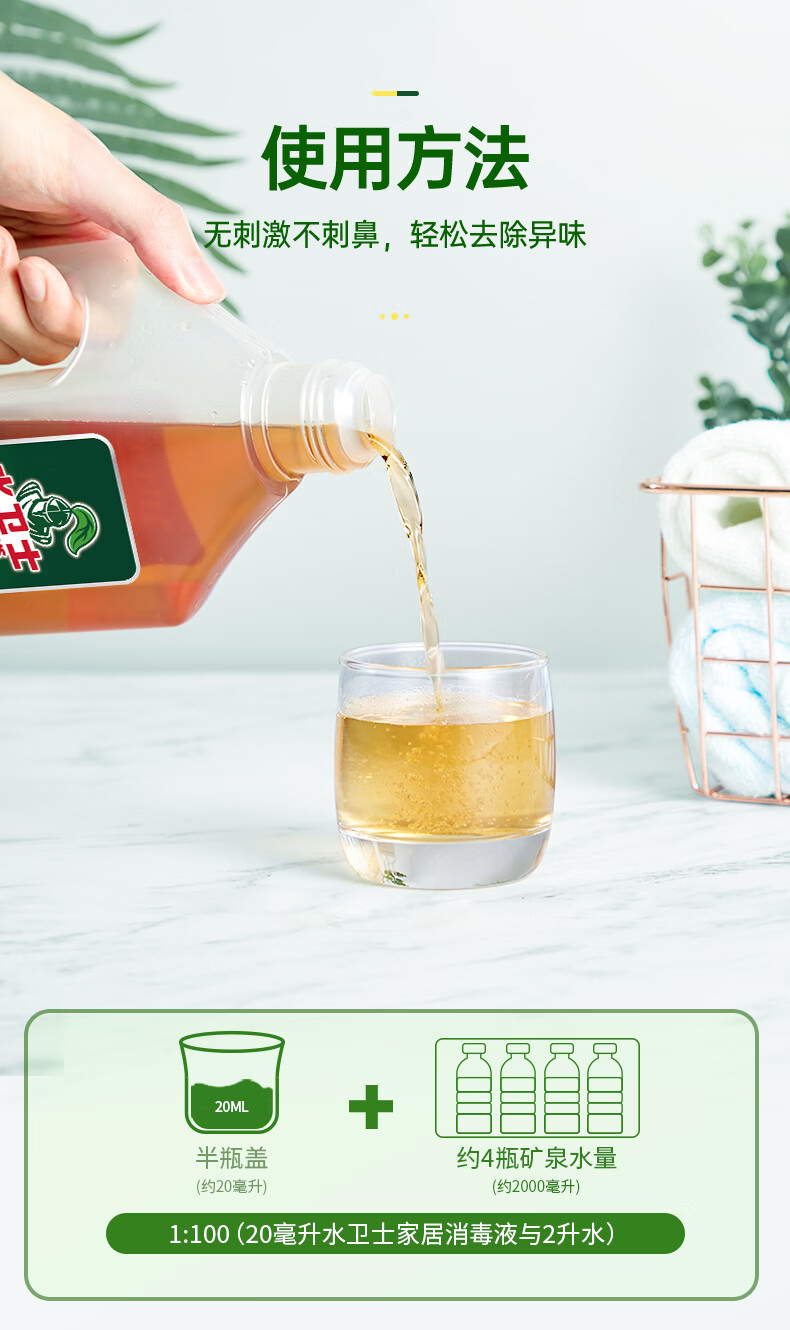 水卫士家居衣物消毒液1L 母婴友好衣物地板玩具宠物用品消毒杀菌除菌液 【松木清香】1L*2瓶