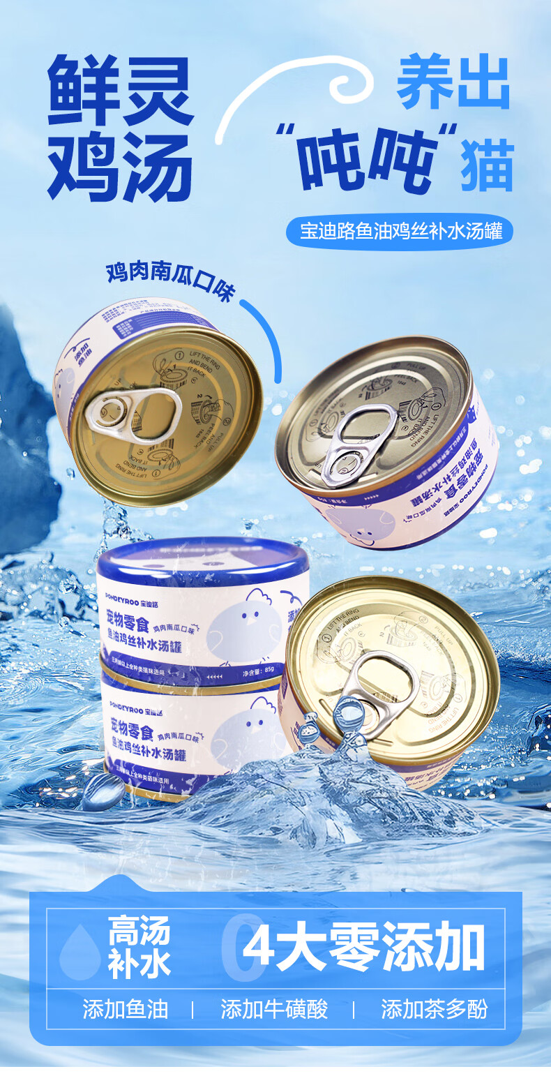 宝迪路猫罐头32罐猫咪用品成幼猫鸡肉湿粮整箱营养健康 鱼油南瓜鸡丝罐 4罐【新客尝鲜】