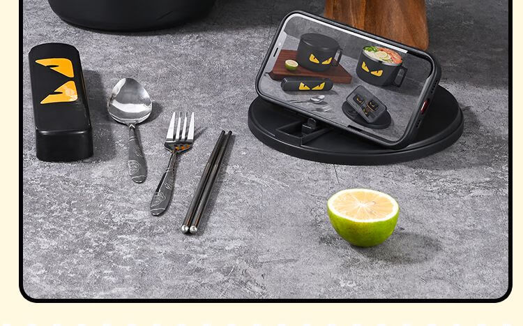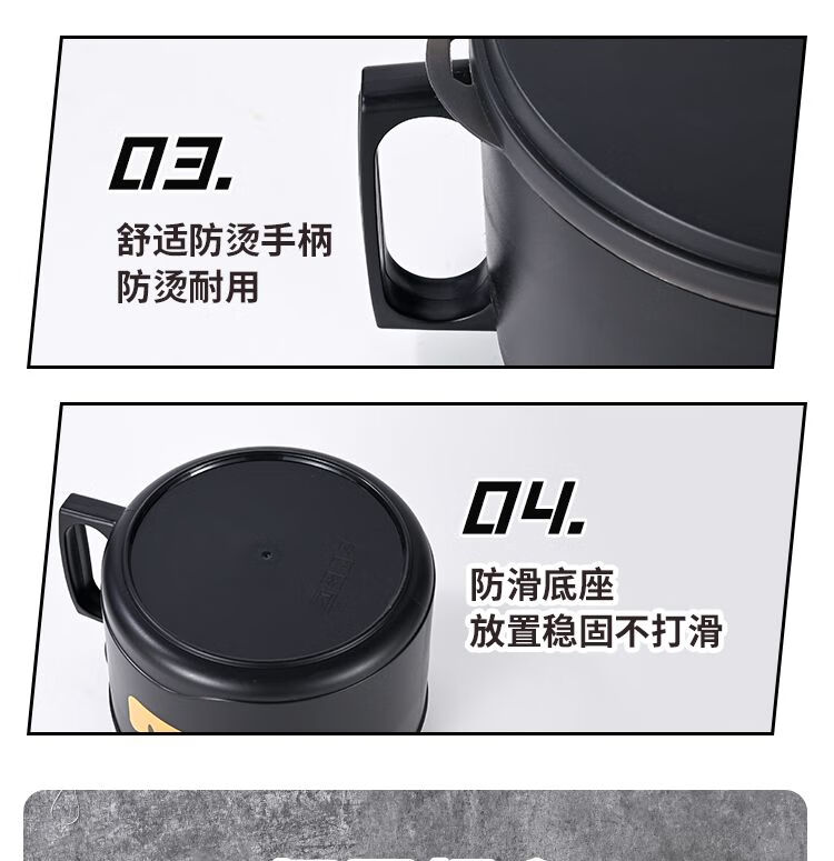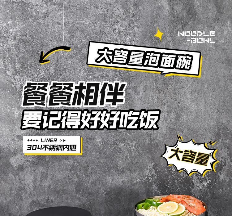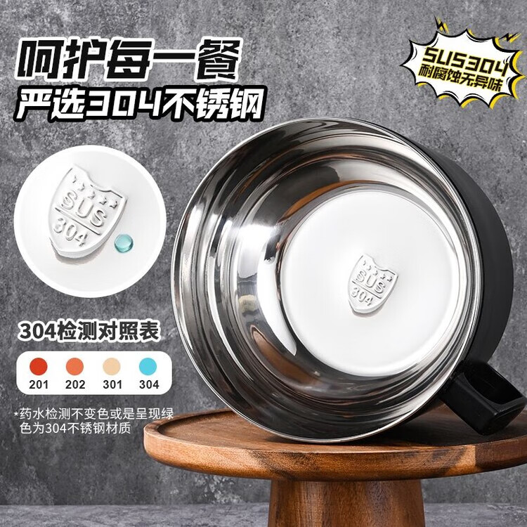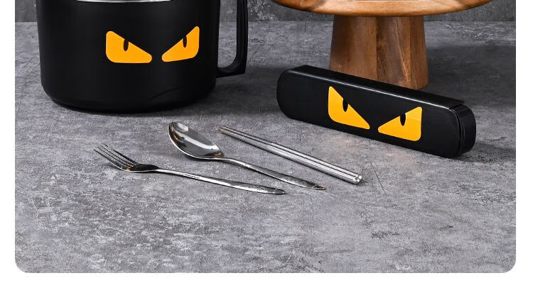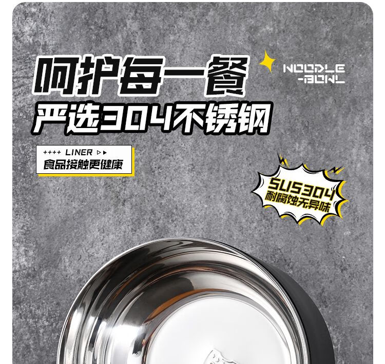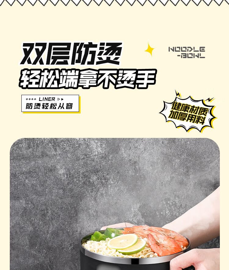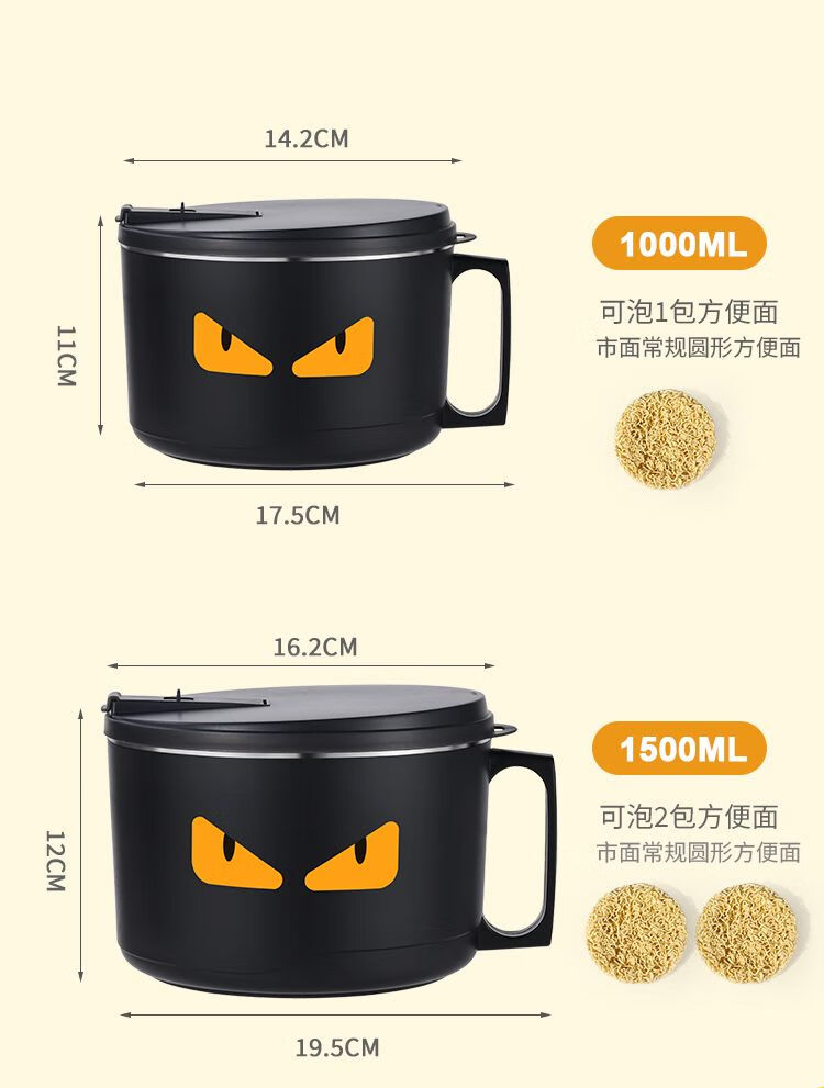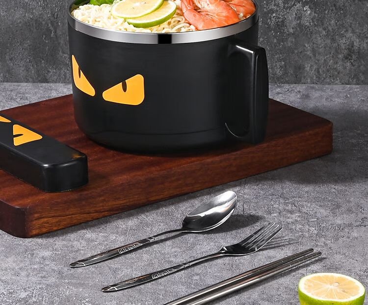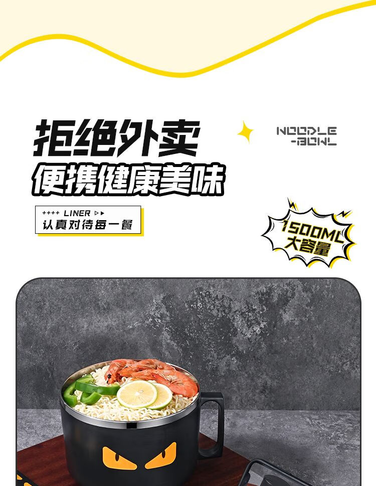 DEATKN泡面碗带盖日式304不锈钢ins风可沥水宿舍面碗大容量学生专用饭盒 全黑-加大号304小恶魔1500ml 泡面碗【配沥水防尘盖】
