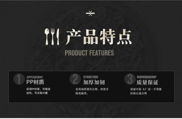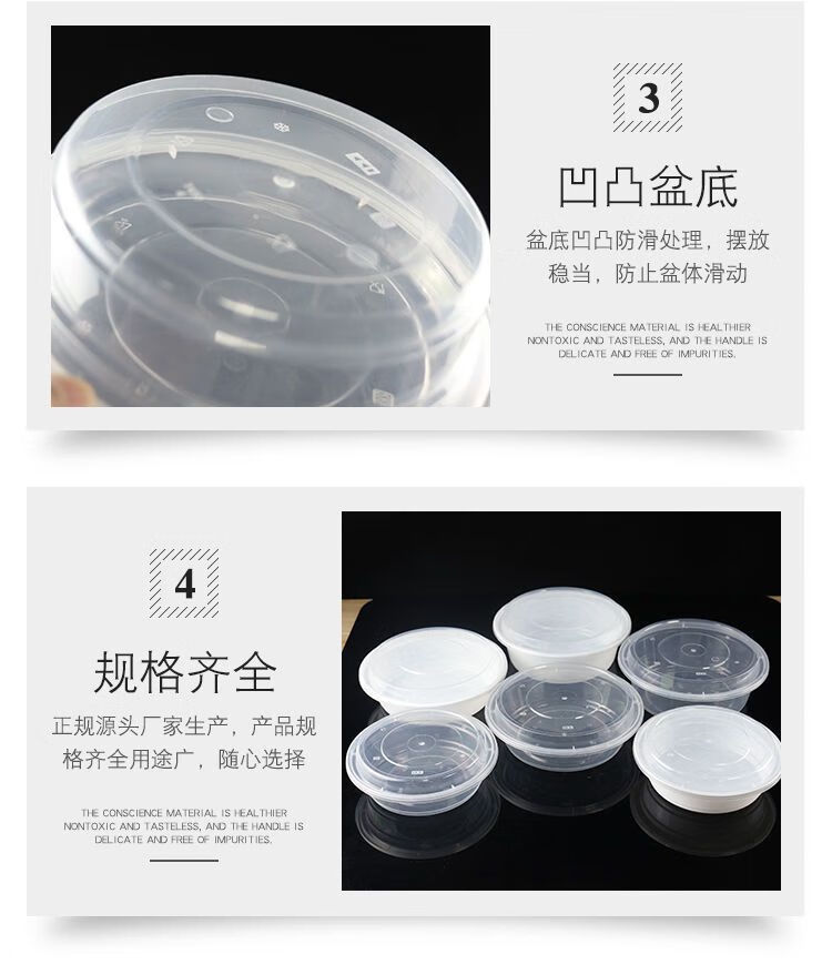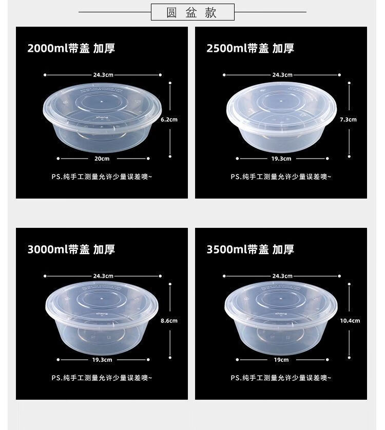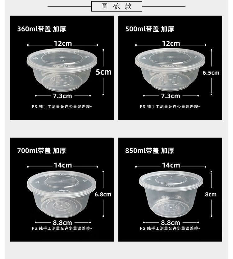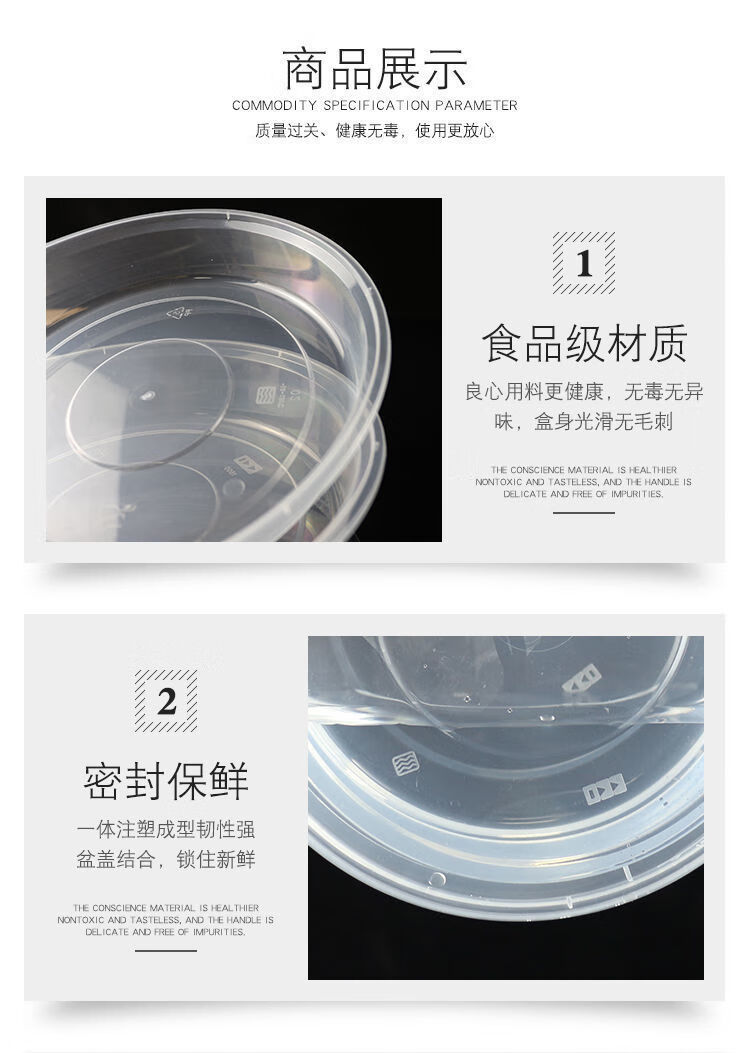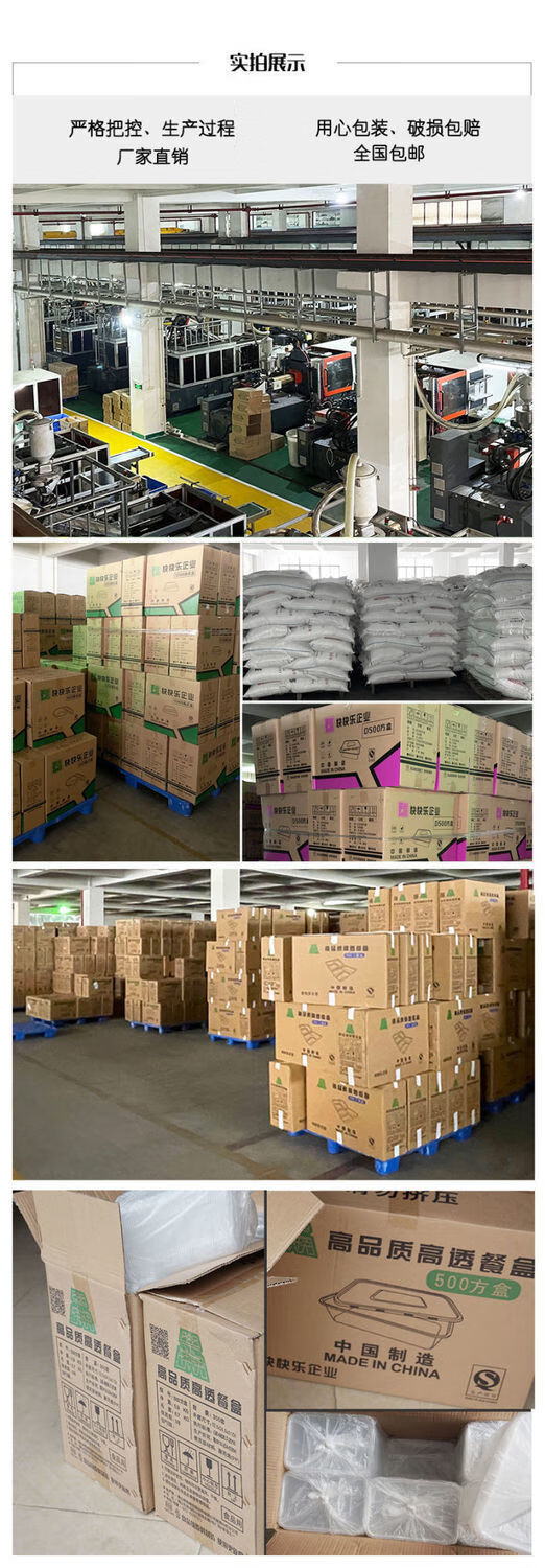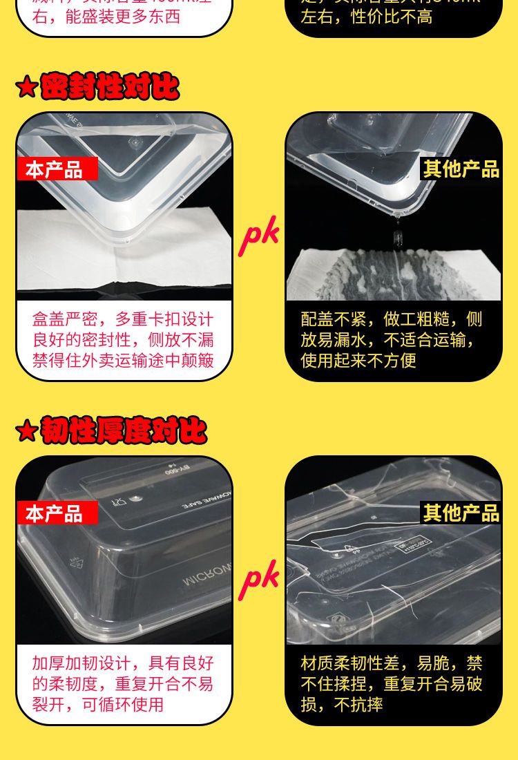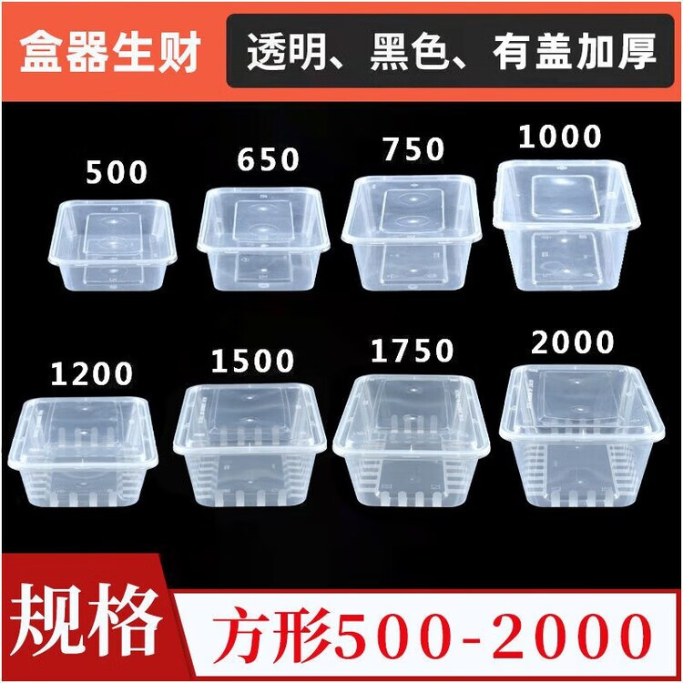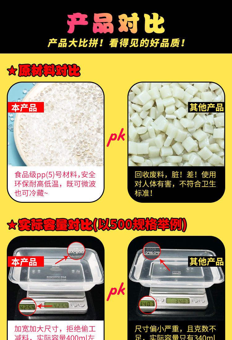 DEATKN一次性长方形餐盒透明带盖加厚塑料黑色外卖快餐打包盒饭盒便当碗 张略500方透明300套400ml