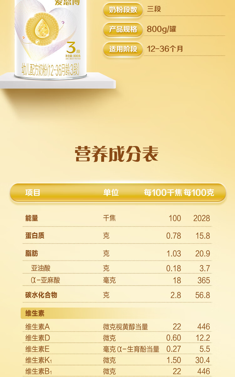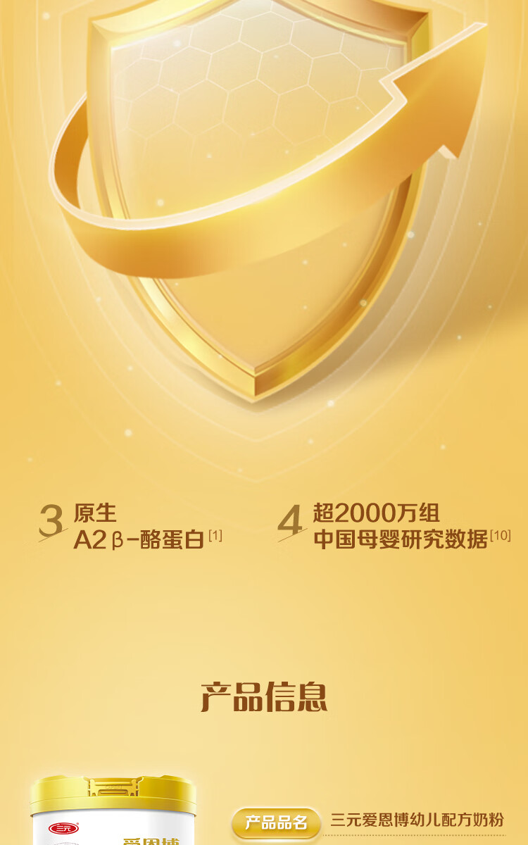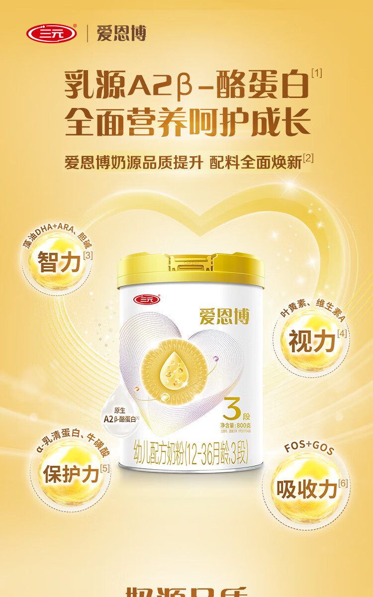 三元(SAN YUAN)【新国标】爱恩博幼儿配方奶粉3段(12-36月)800g/罐*2礼盒
