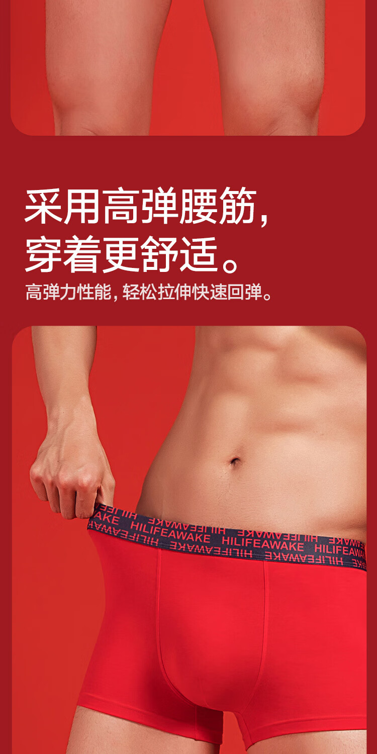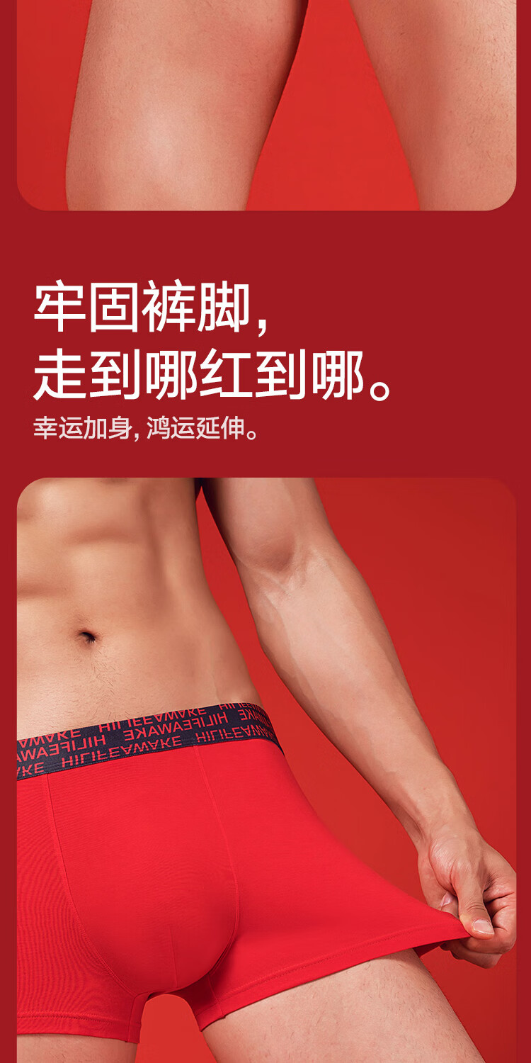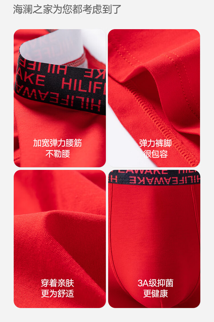 海澜之家【鸿运】红内裤男士马年纯棉10A抗菌结婚喜庆平角四角短裤衩3条