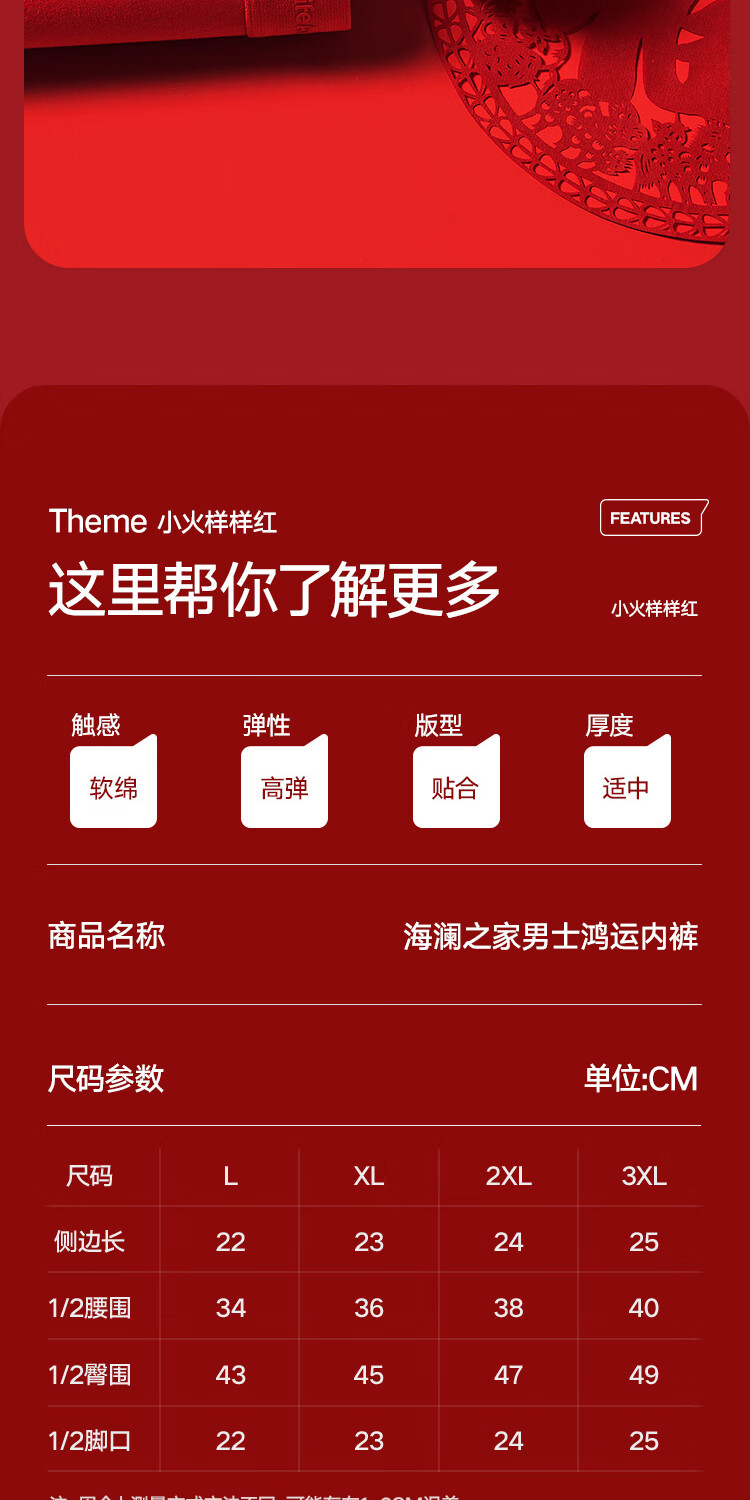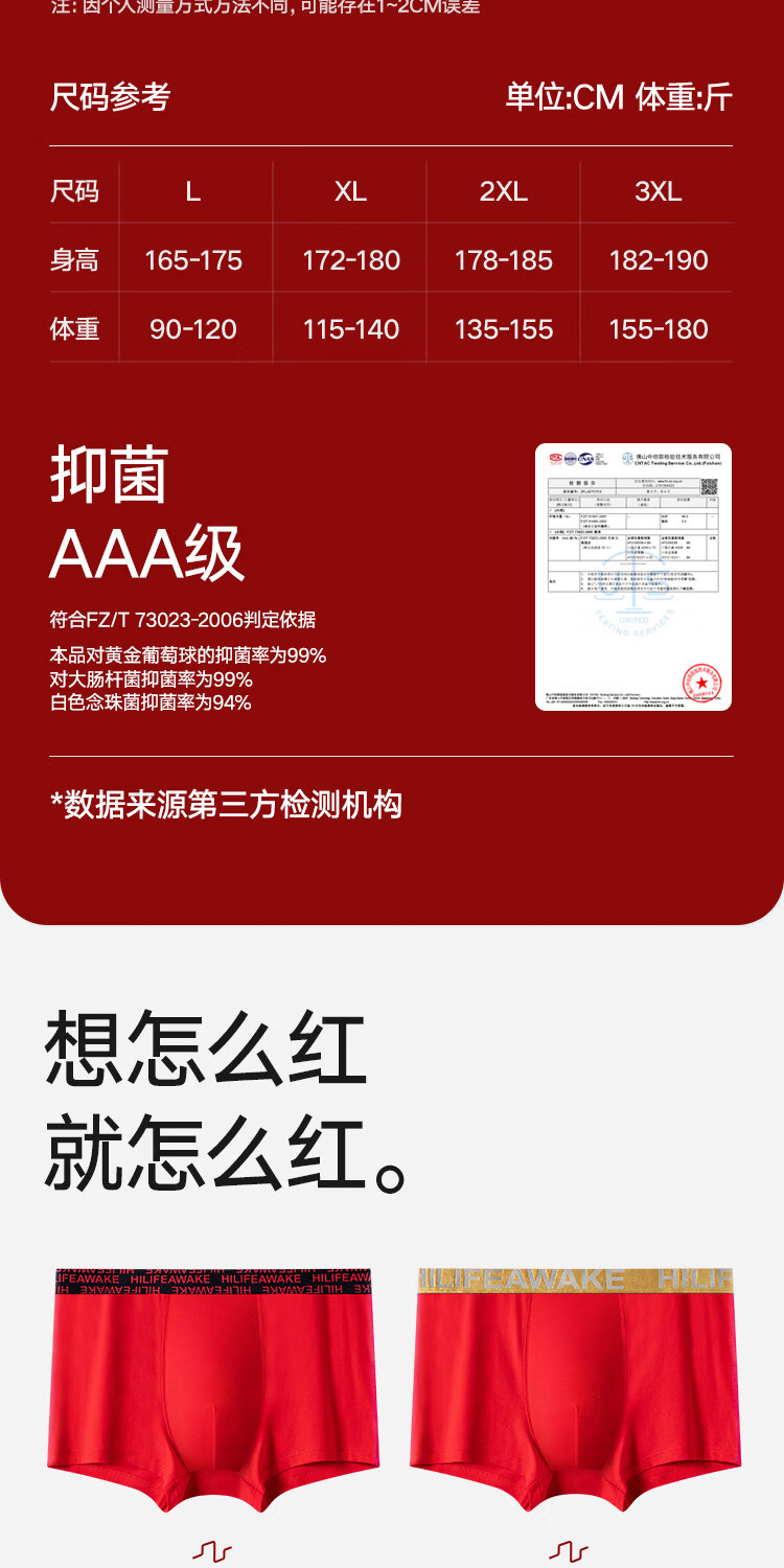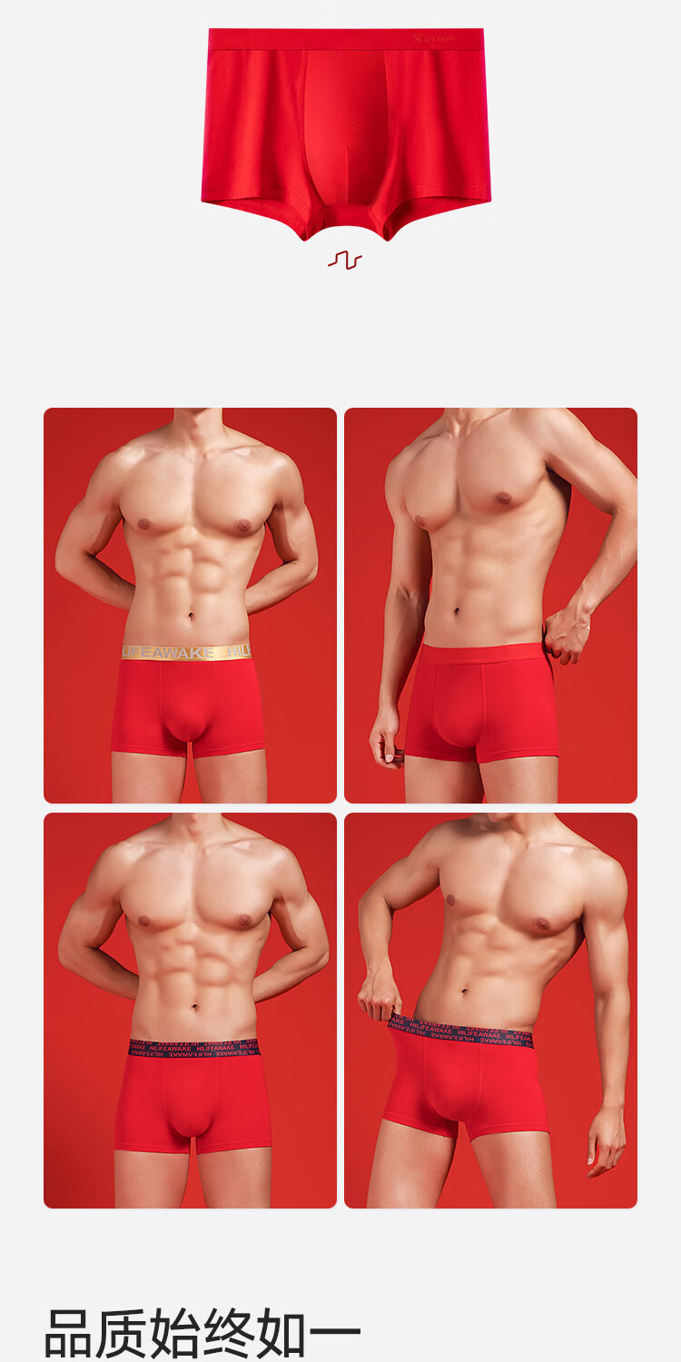 海澜之家【鸿运】红内裤男士马年纯棉10A抗菌结婚喜庆平角四角短裤衩3条