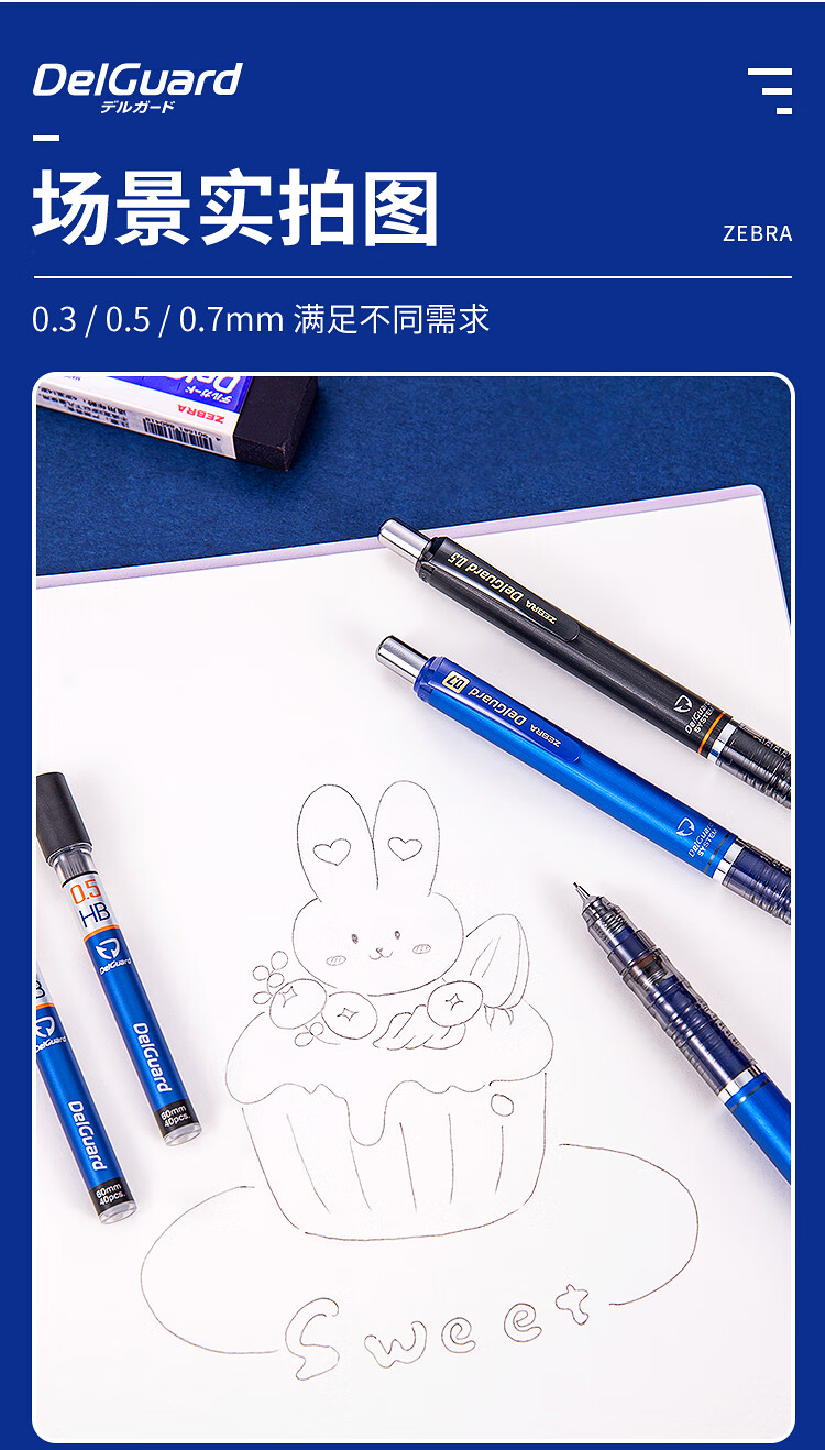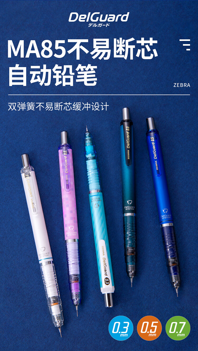 斑马牌 (ZEBRA)0.7mm自动铅笔 不易断芯绘图活动铅笔学生用 低重心双弹簧设计 MAB85 白色杆