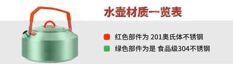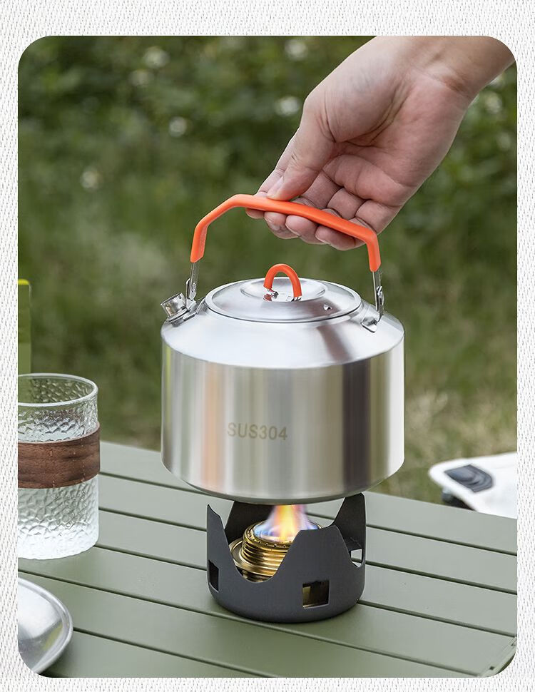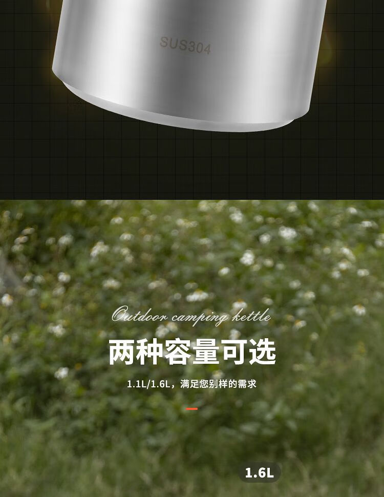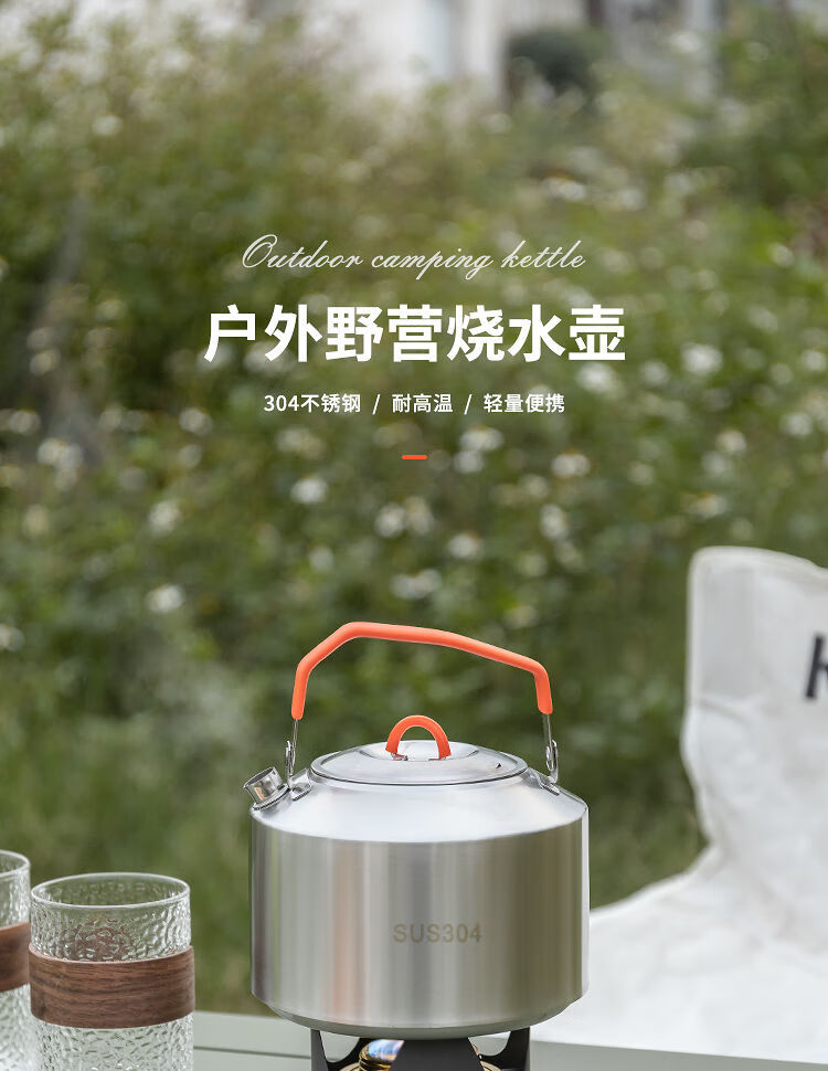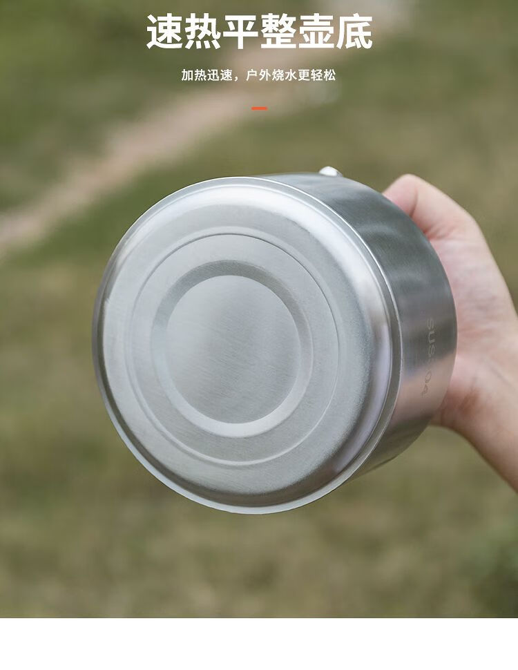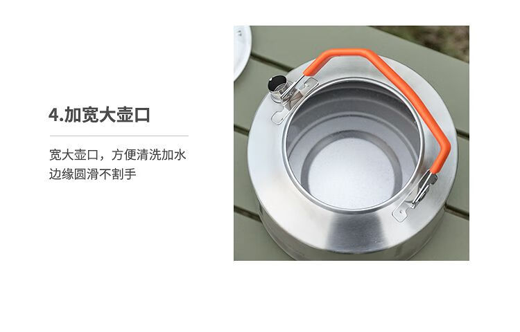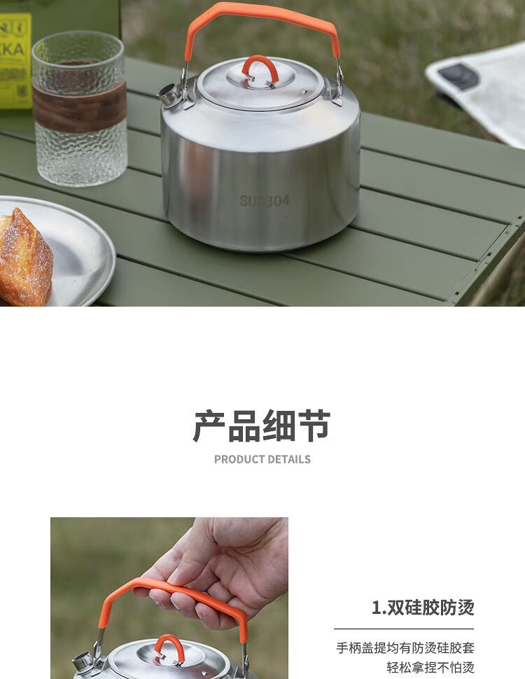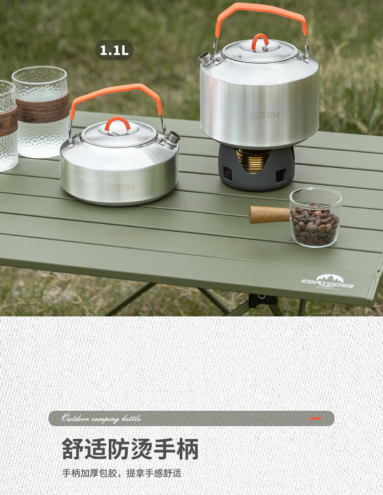 简漾户外烧水壶304不锈钢水壶露营茶壶手冲咖啡壶便携野外煮水壶 无网袋1.1升烧水壶 1ml