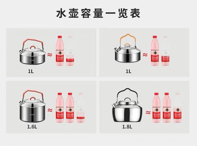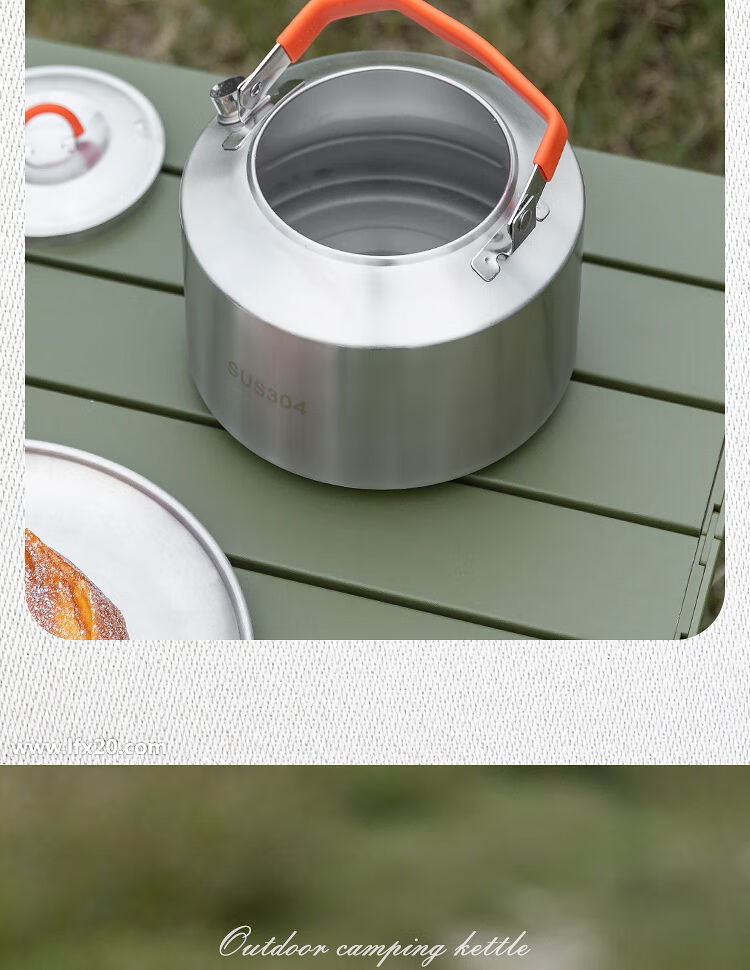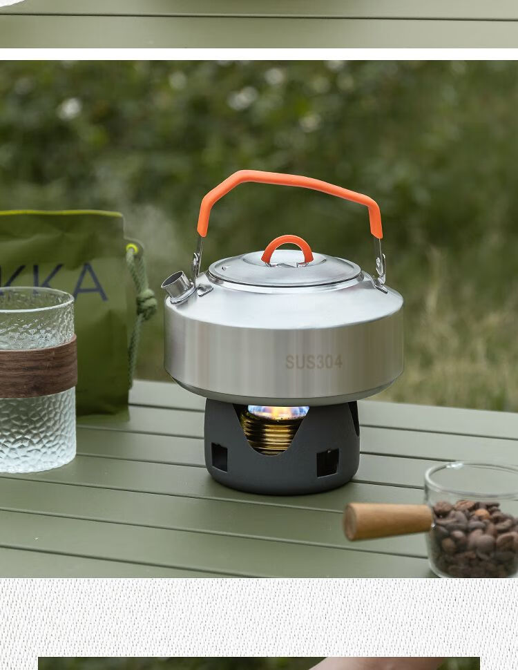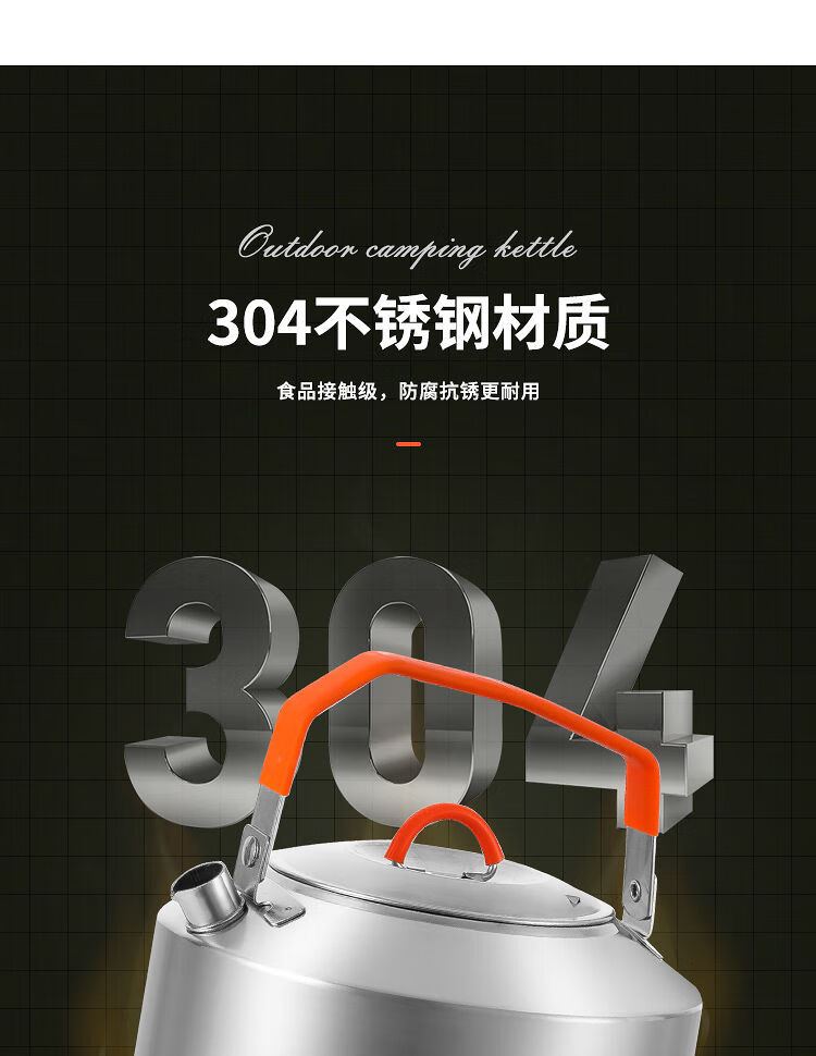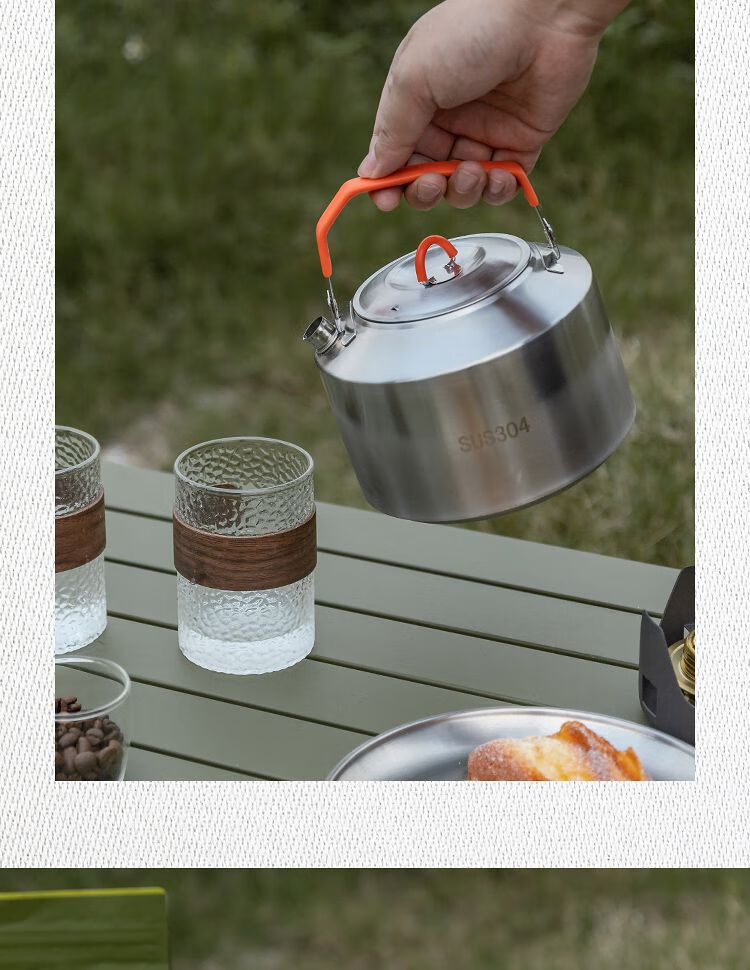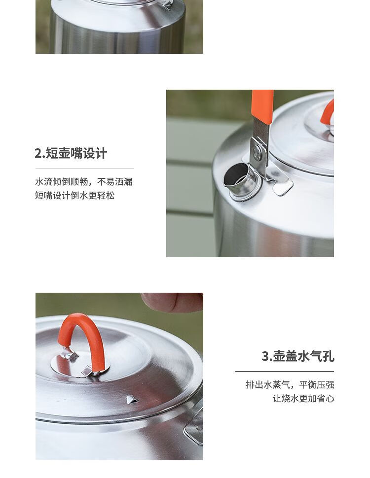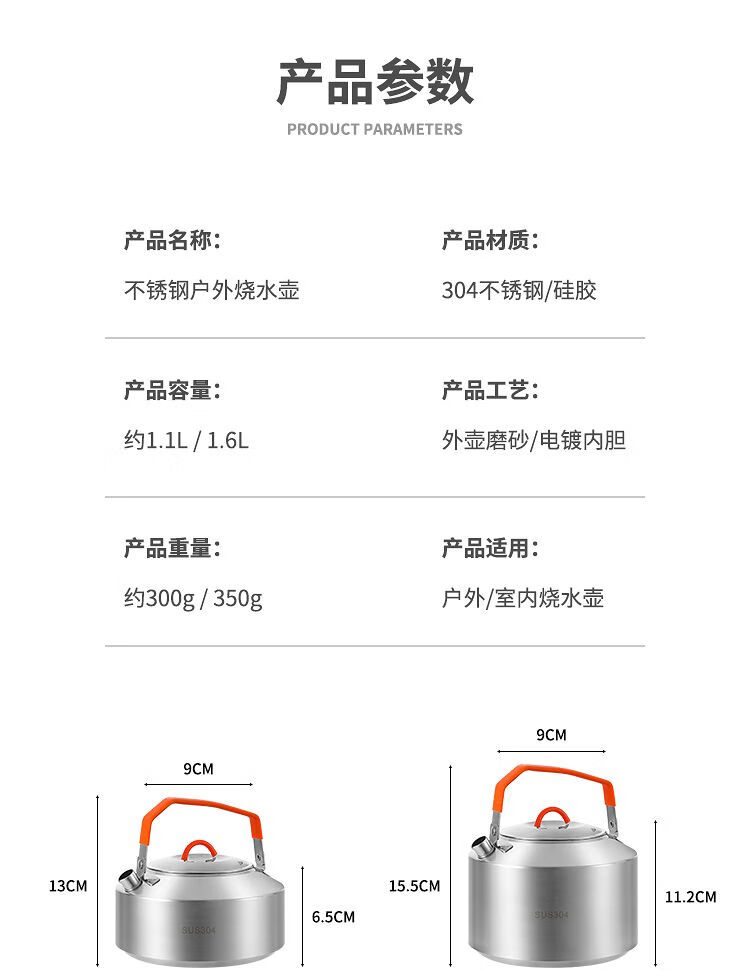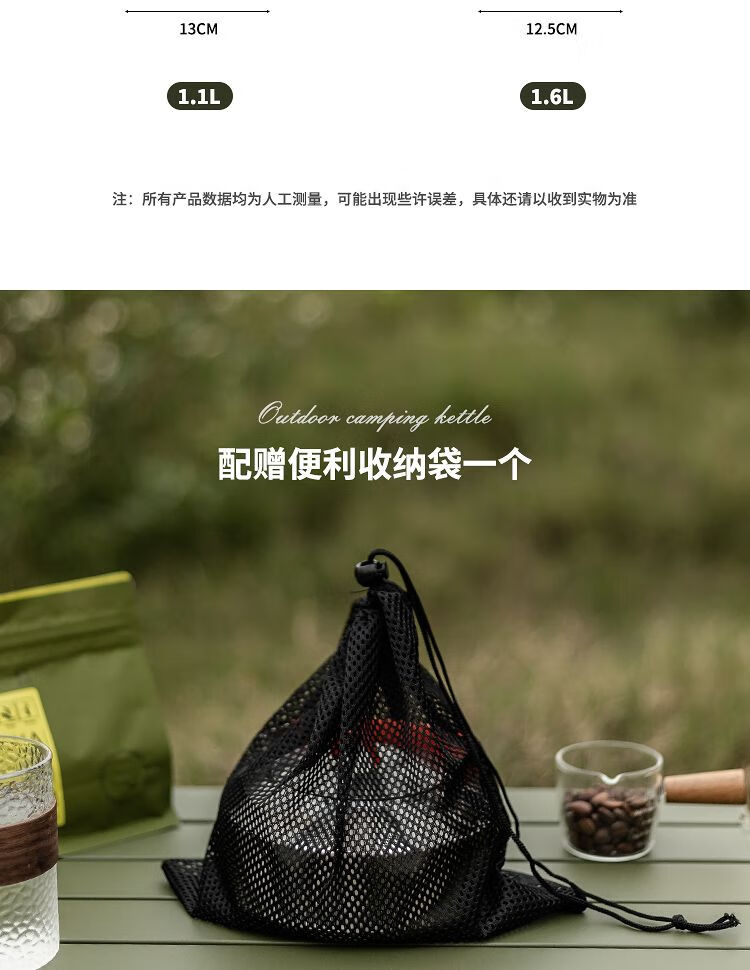 简漾户外烧水壶304不锈钢水壶露营茶壶手冲咖啡壶便携野外煮水壶 无网袋1.1升烧水壶 1ml