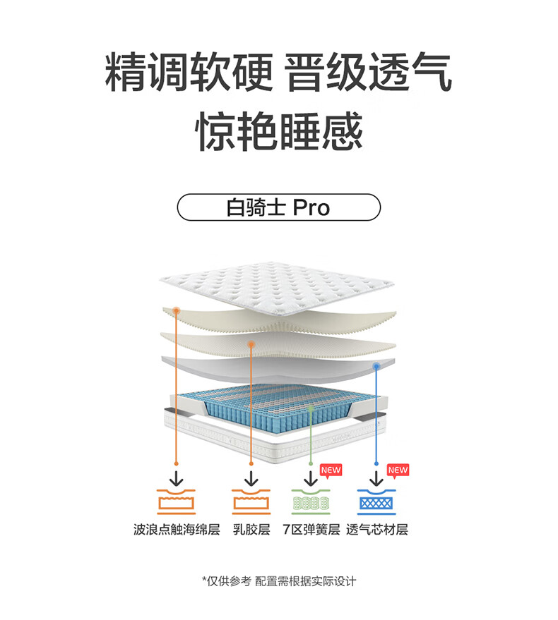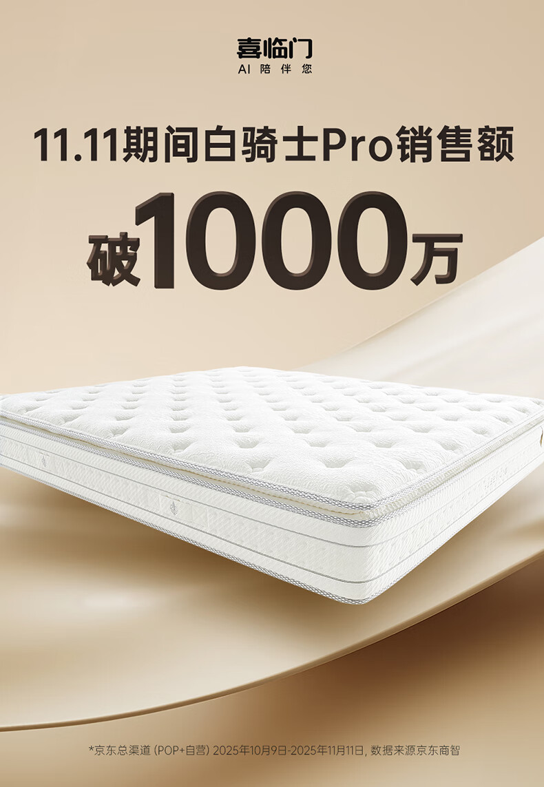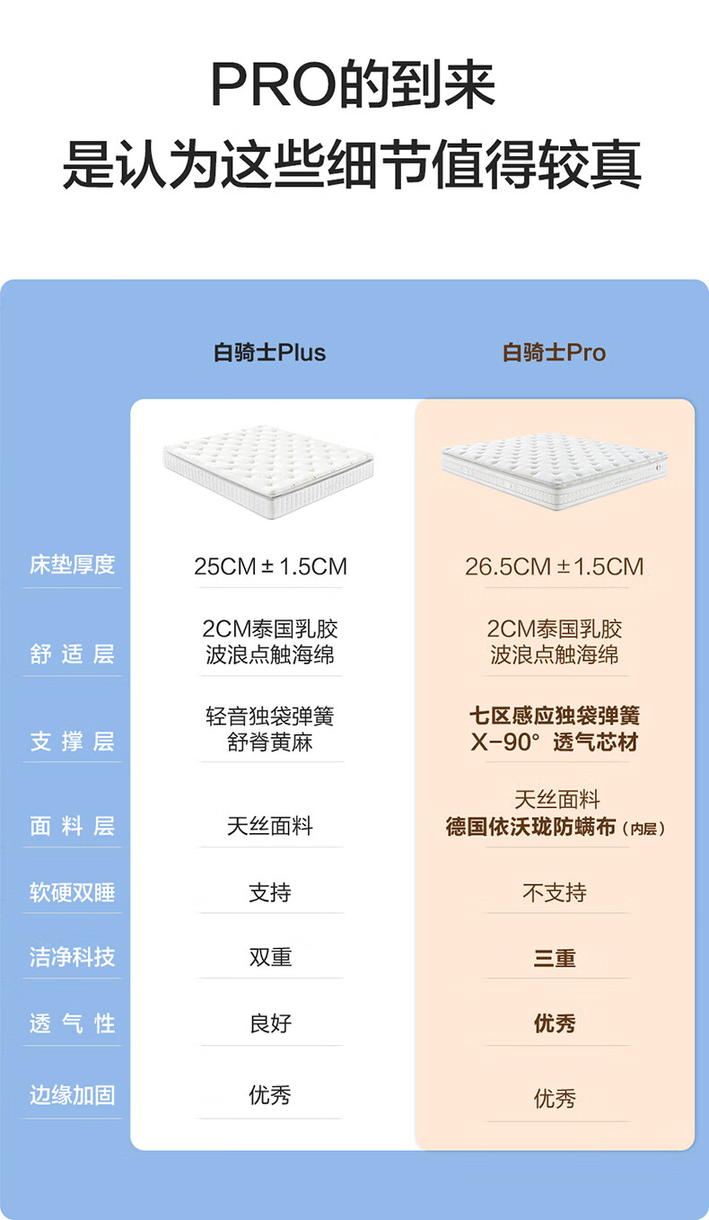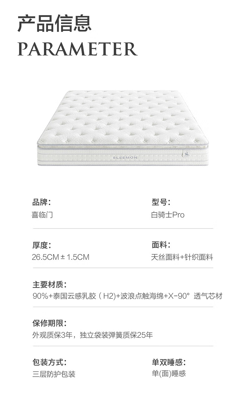 喜临门白骑士pro政府补贴席梦思独袋弹簧家用软硬适中3D芯材进口加厚 白骑士pro床垫【厚26.5cm】 1.8*2米