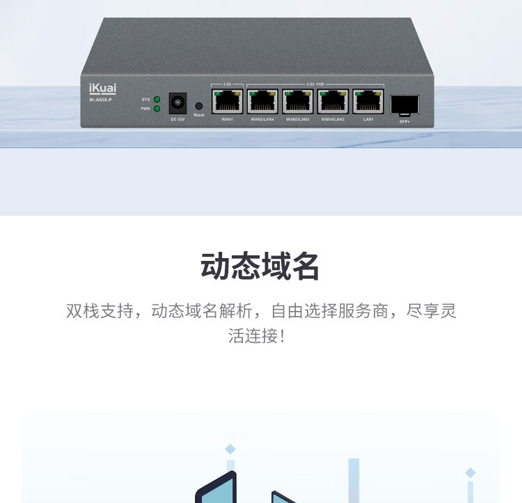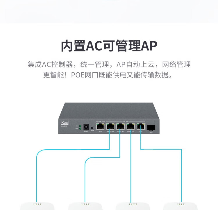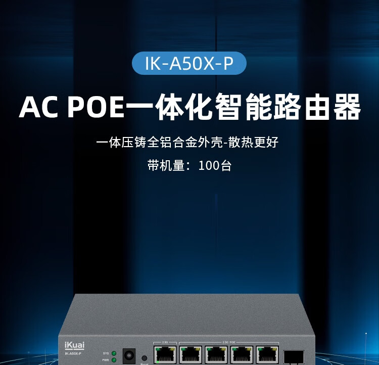 爱快(iKuai)POE路由器AC管理5口2.5G路由器 4个POE电口1个10G光口上行管理32台AP带机量100台 IK-A50X-P丨5口2.5G路由