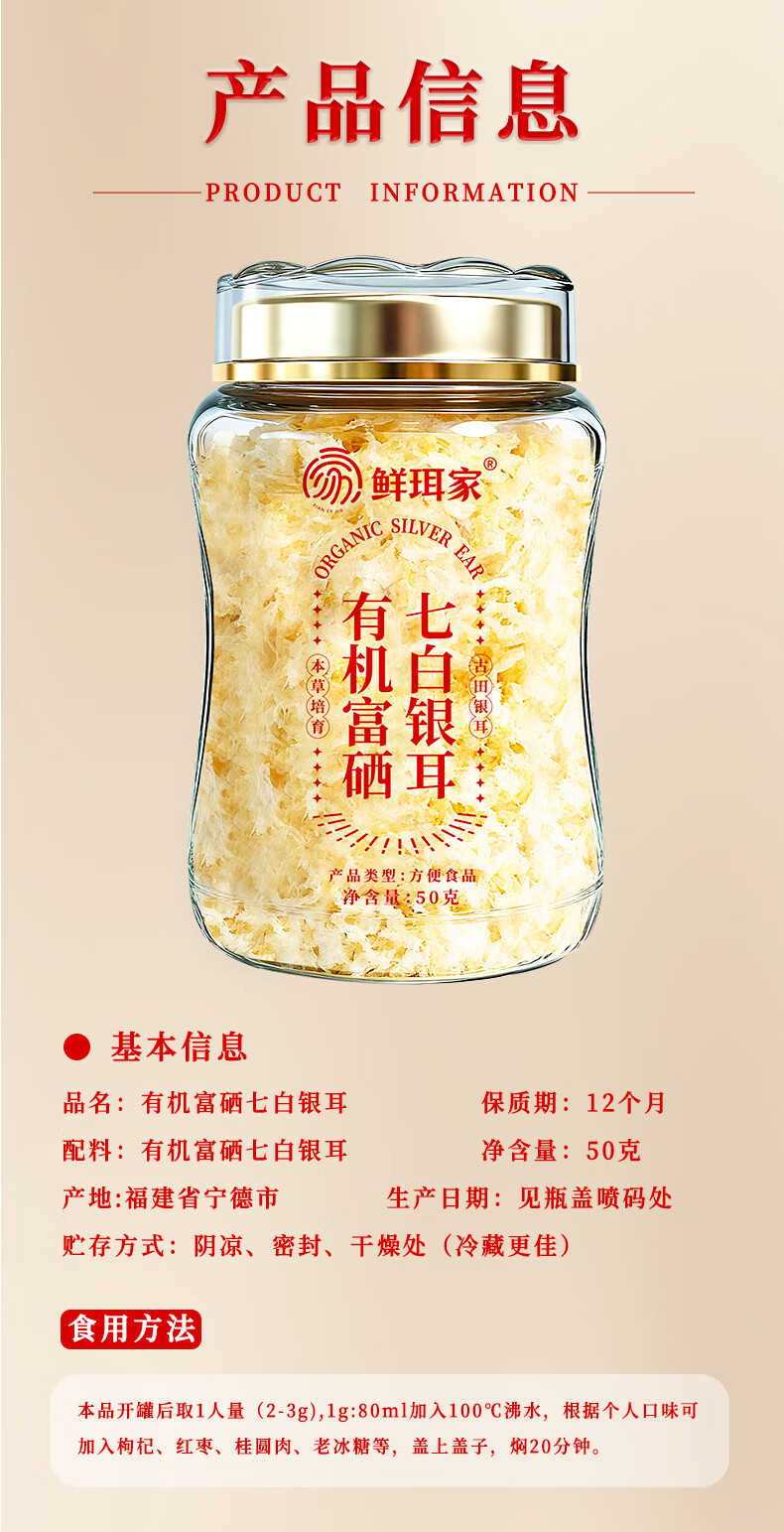 鲜珥家有机七白本草银耳羹免洗免煮焖泡即食古田高山早餐代餐礼盒装送礼 本草银耳80g*2罐