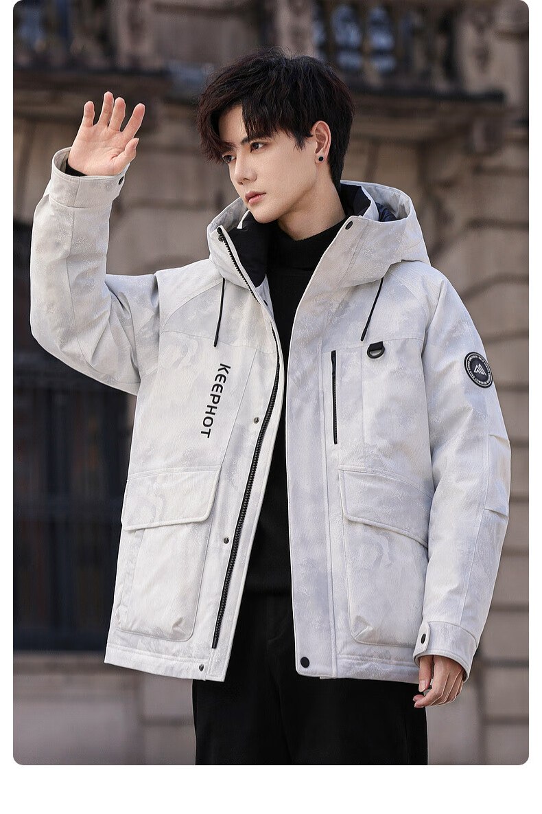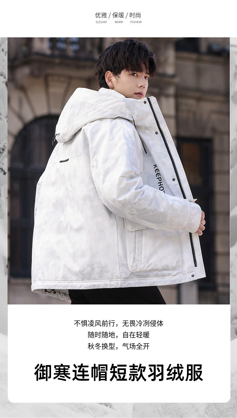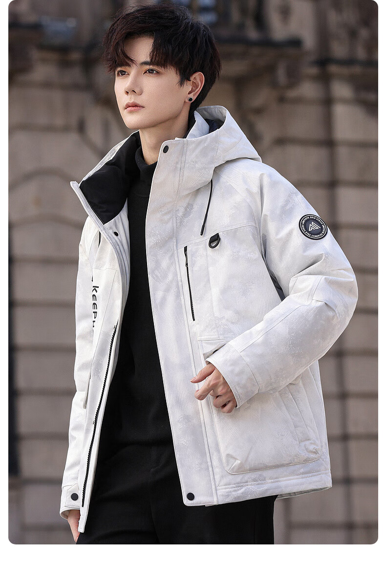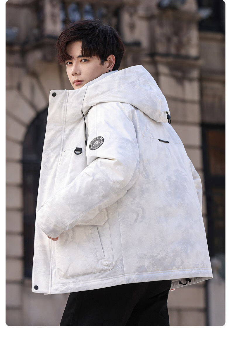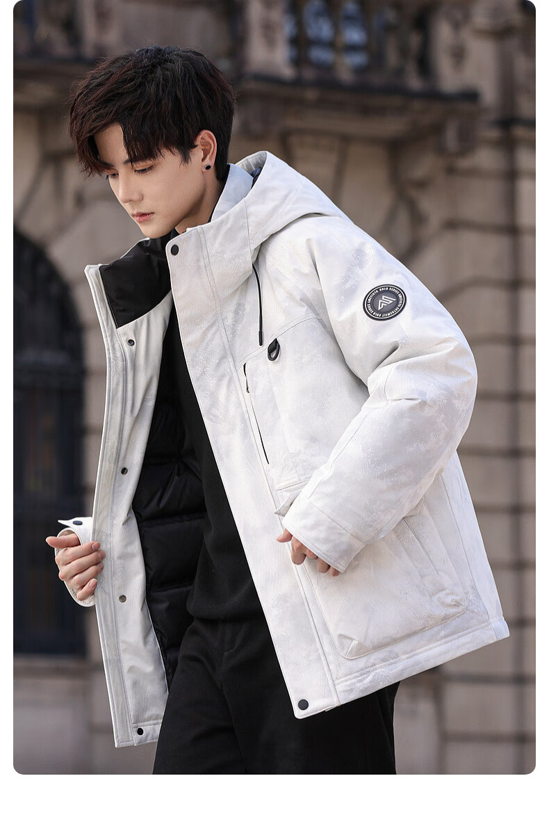 啄木鸟(TUCANO)羽绒服男款外套冬季加厚保暖防寒休闲连帽面包服上衣 灰白 XL