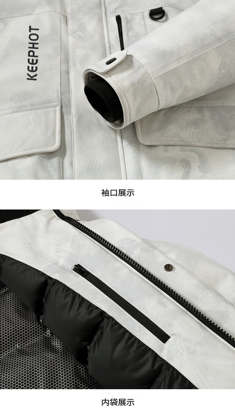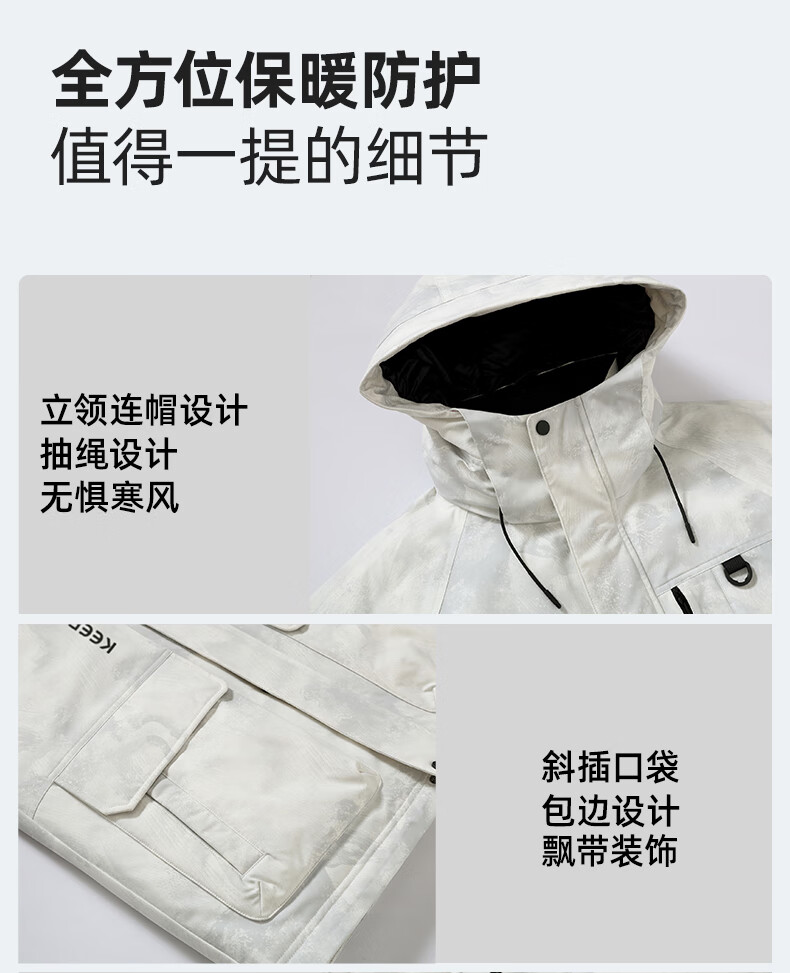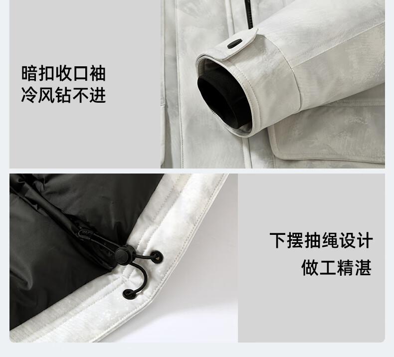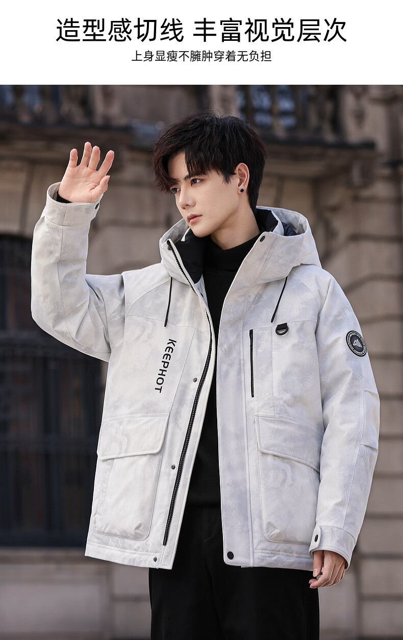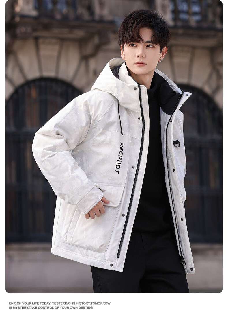 啄木鸟(TUCANO)羽绒服男款外套冬季加厚保暖防寒休闲连帽面包服上衣 灰白 XL