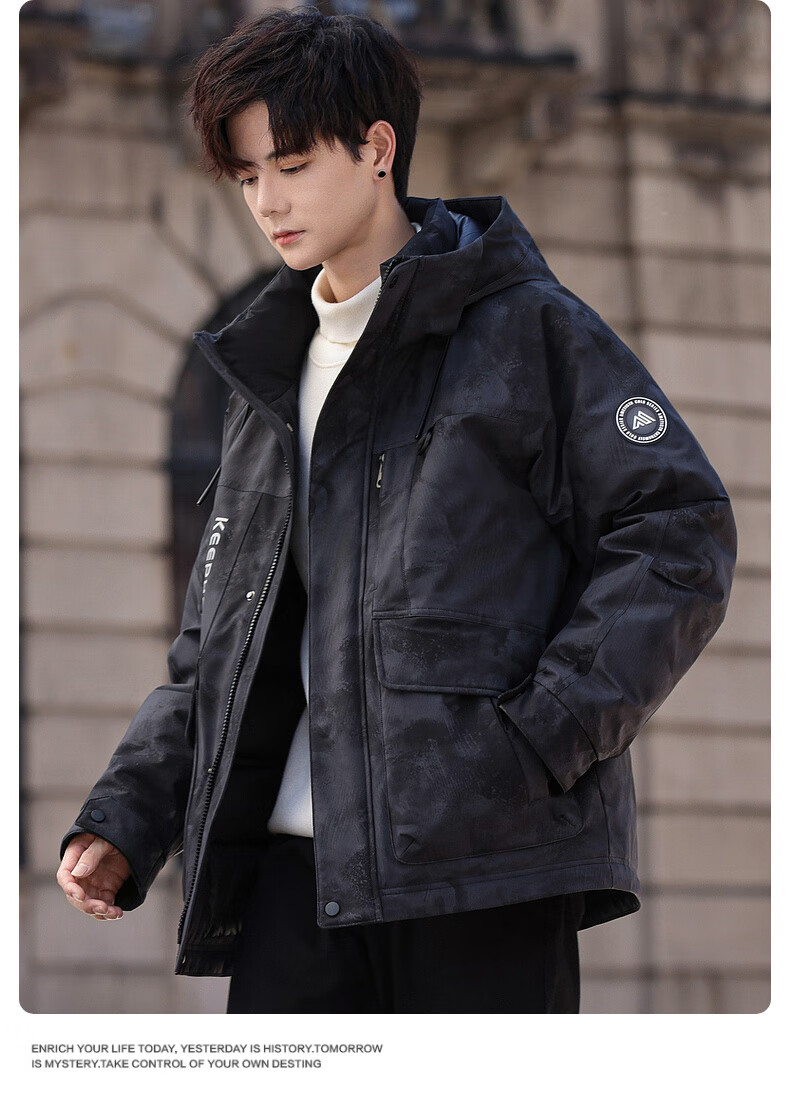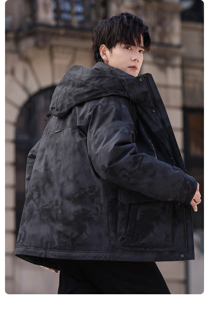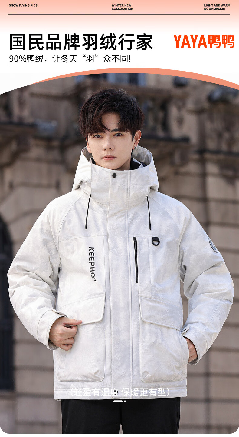 鸭鸭(YAYA)短款羽绒服男士2025年冬季最新款时尚工装保暖迷彩青少年潮流外套 黑迷彩色 L /175(建议130-150斤)