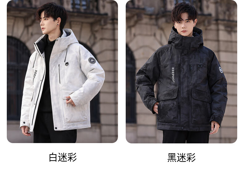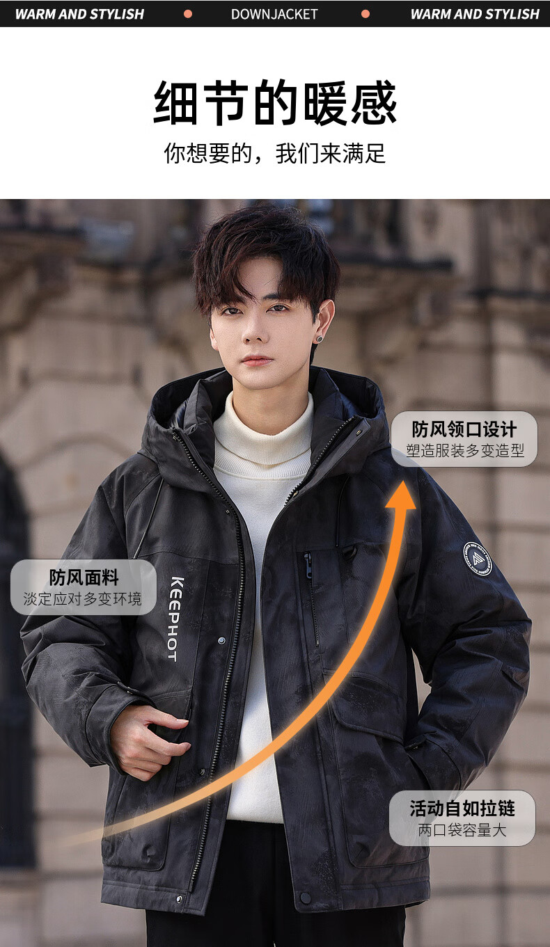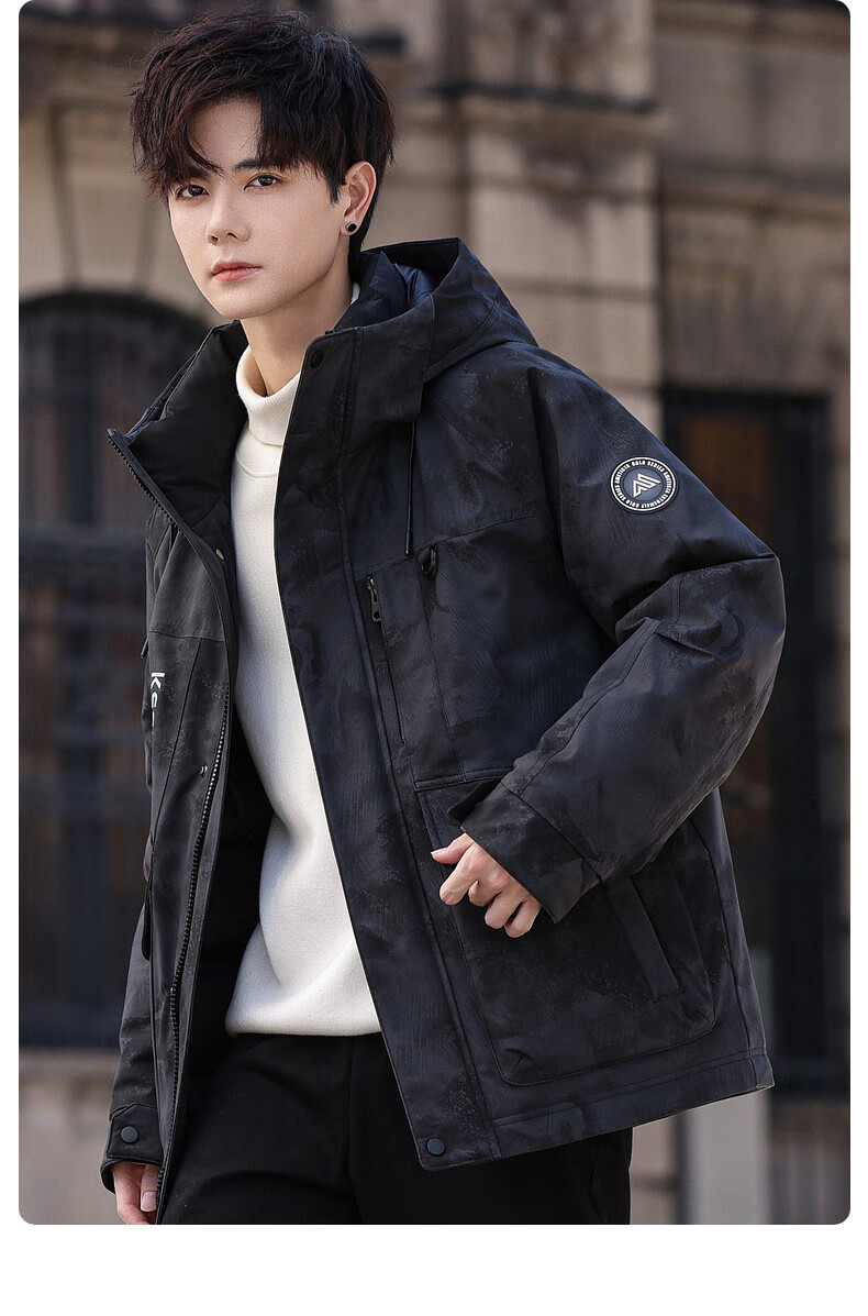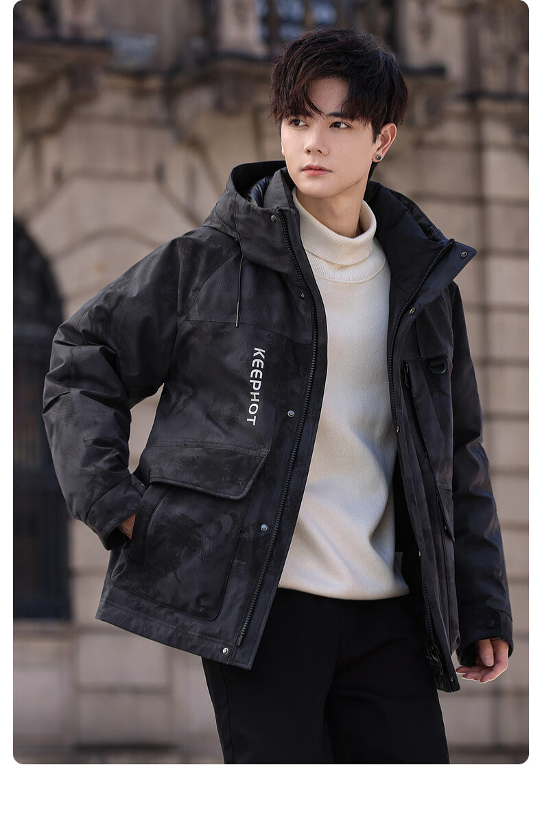 鸭鸭(YAYA)短款羽绒服男士2025年冬季最新款时尚工装保暖迷彩青少年潮流外套 黑迷彩色 L /175(建议130-150斤)