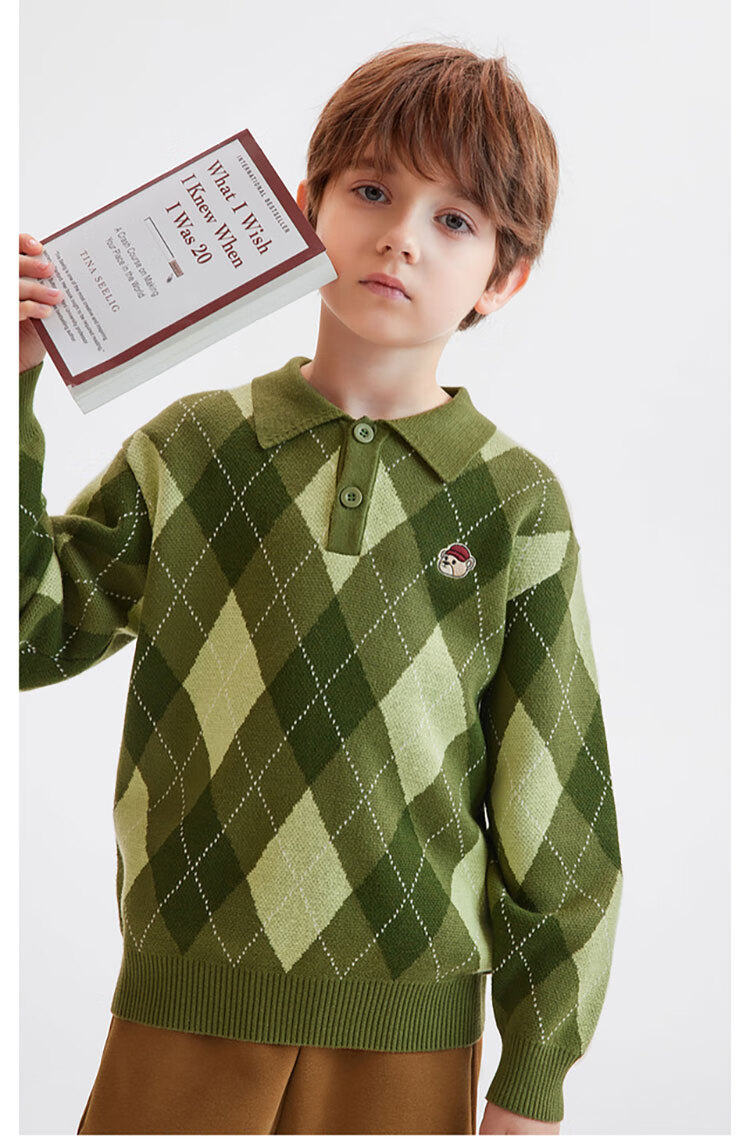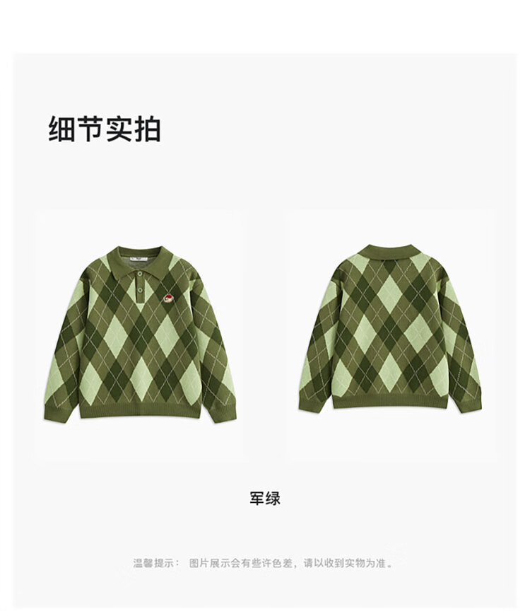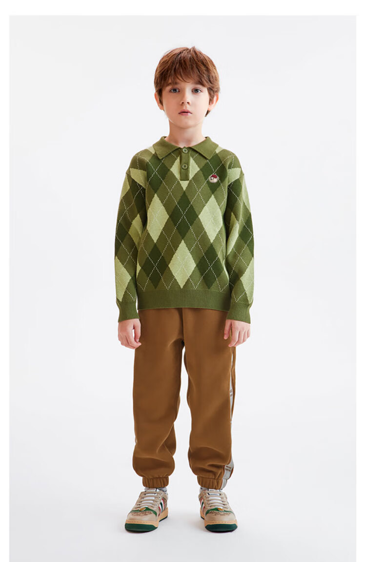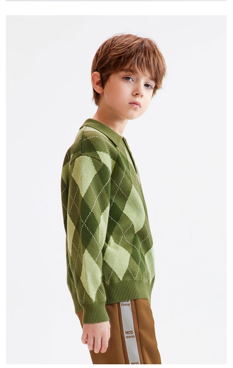 马骑顿MQD童装冬季男童款宽松潮流翻领针织衫 军绿色 110