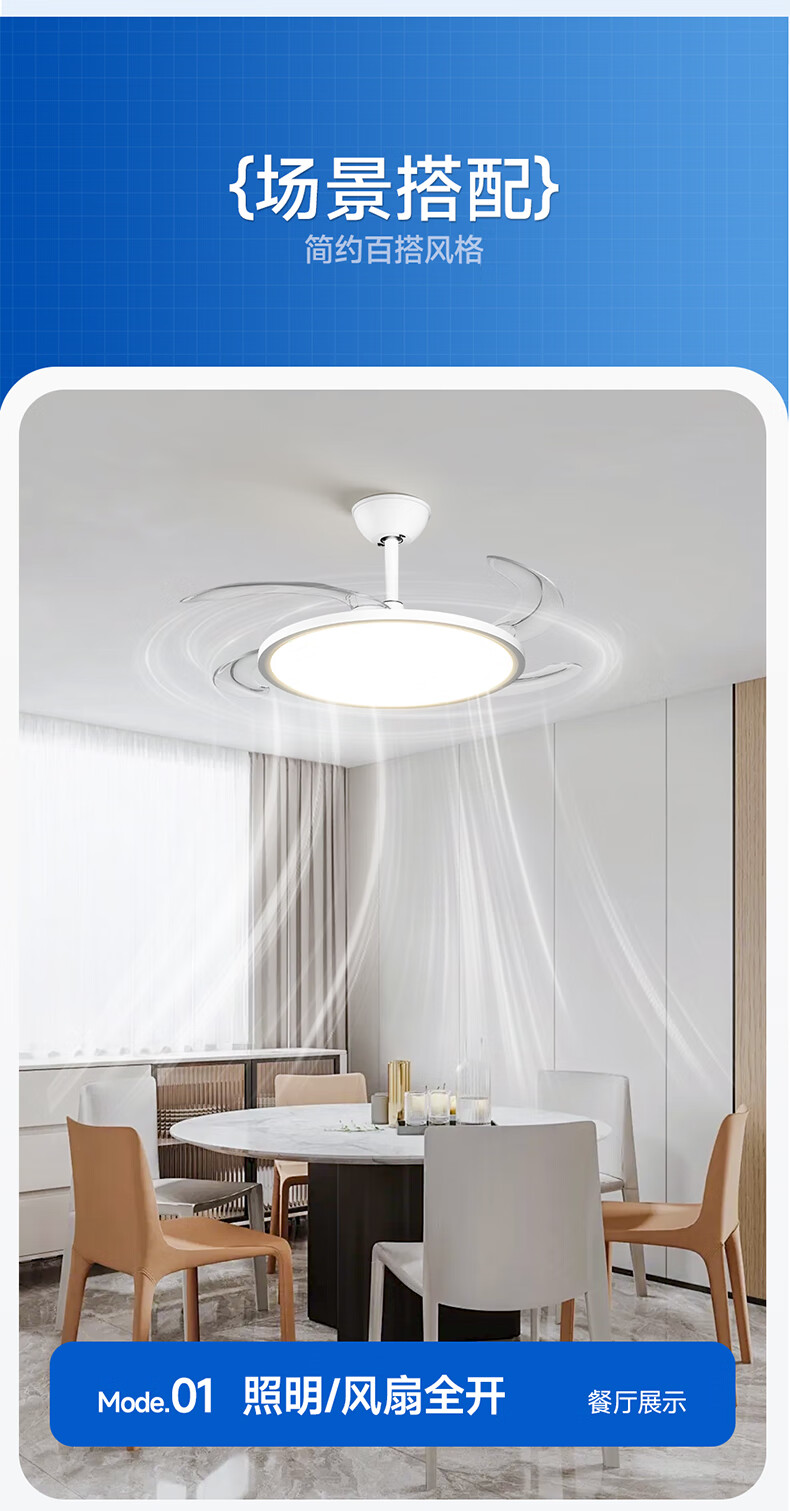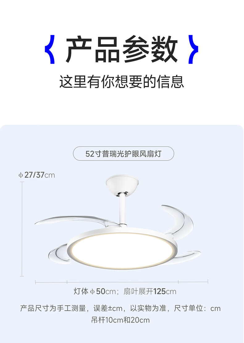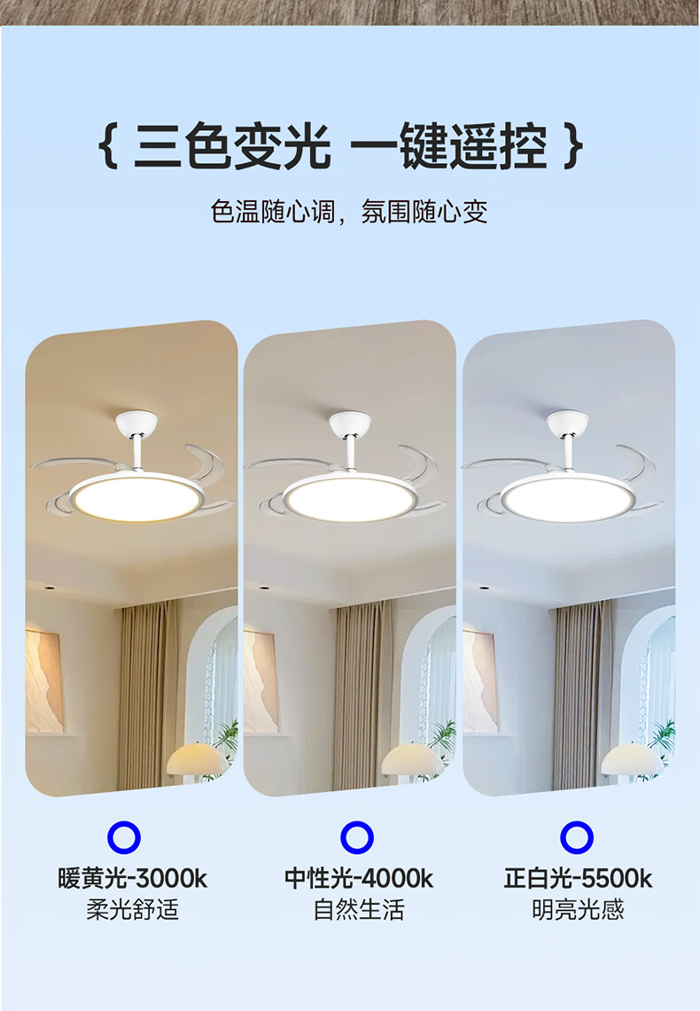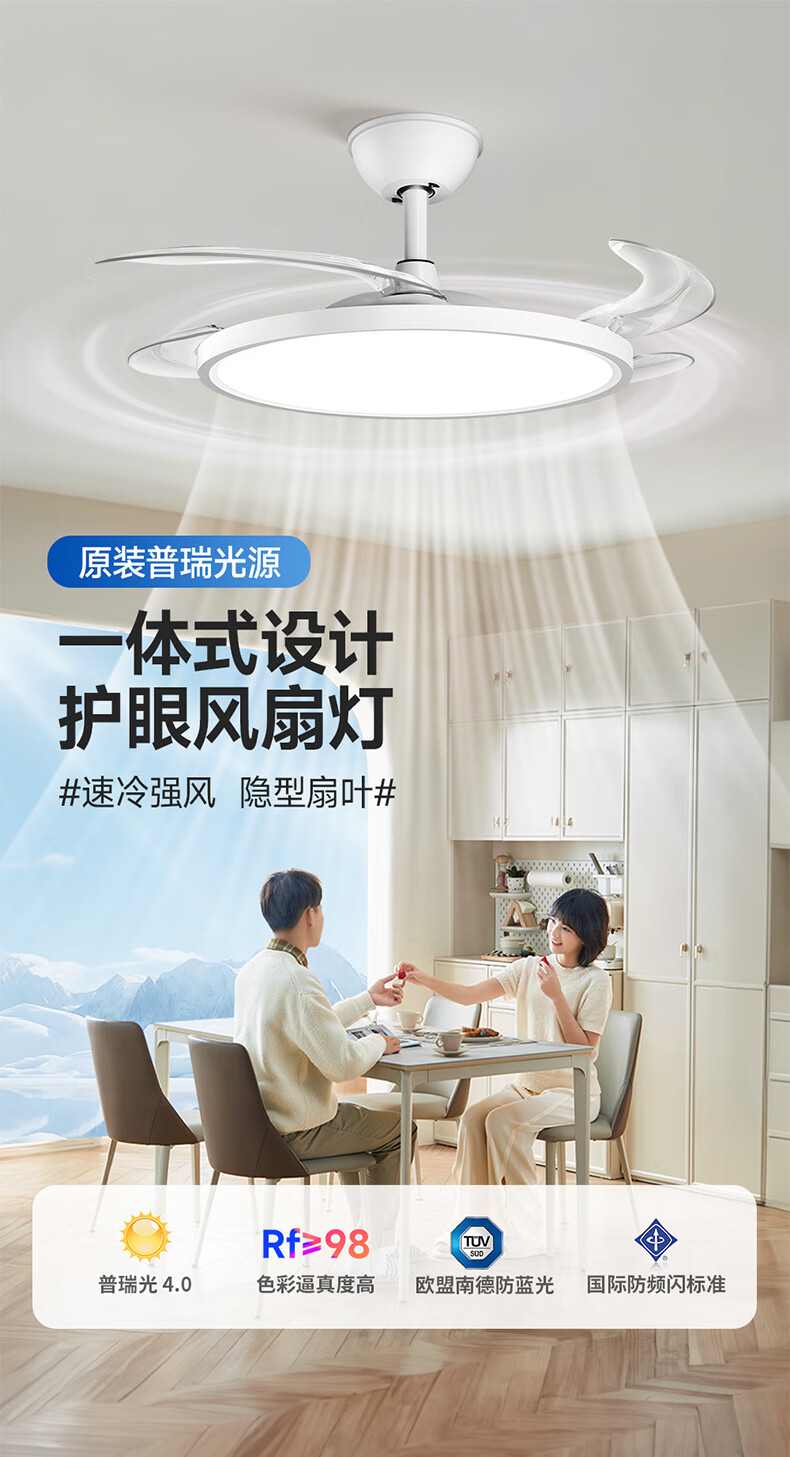 惠普普瑞护眼风扇灯LED吊扇灯隐形扇叶遥控调光灯具中山灯具包安装