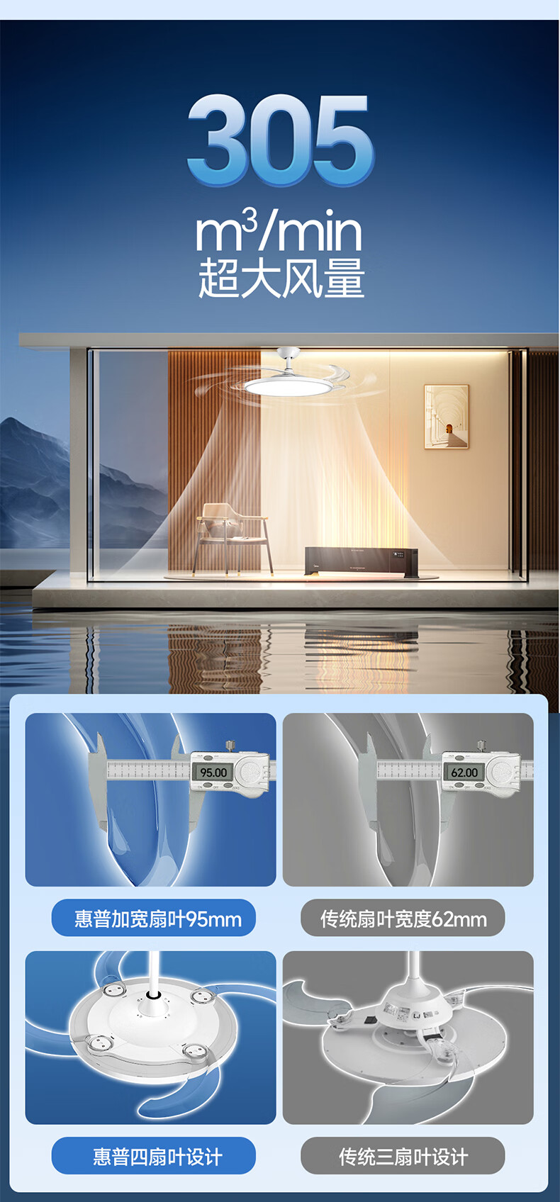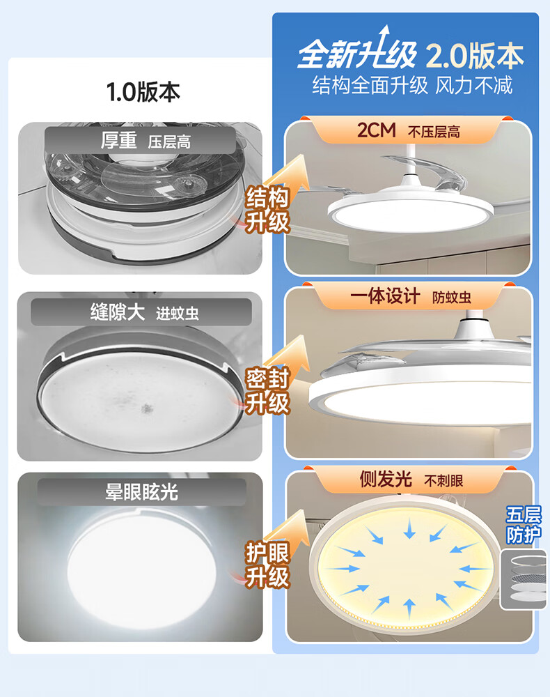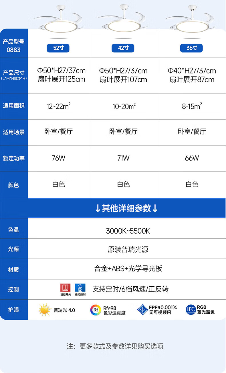 惠普普瑞护眼风扇灯LED吊扇灯隐形扇叶遥控调光灯具中山灯具包安装