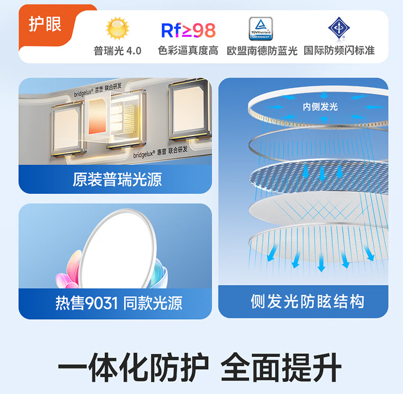 惠普普瑞护眼超薄无缝隙卧室吸顶灯智能儿童房灯中山灯具晨之光包安装