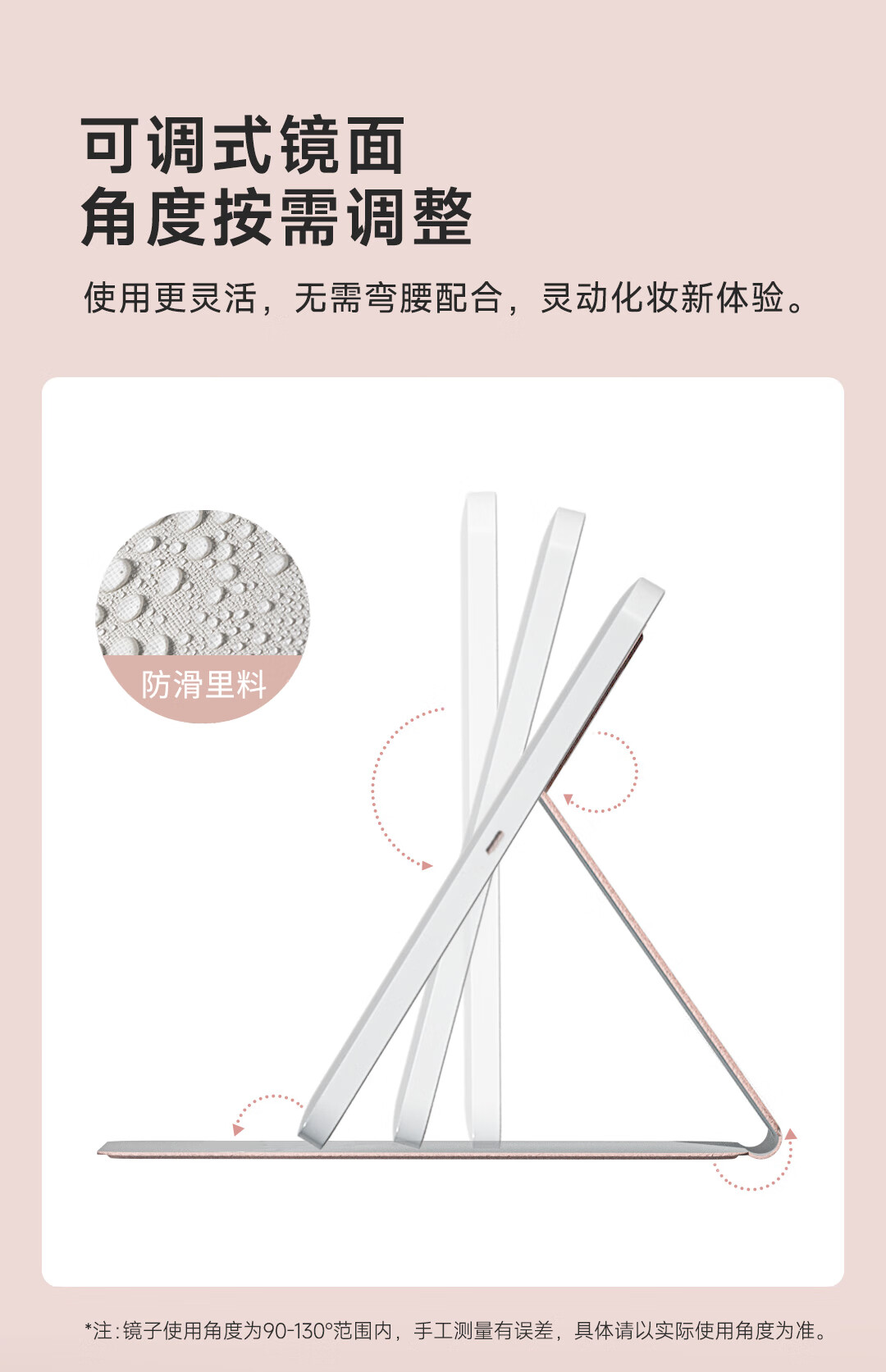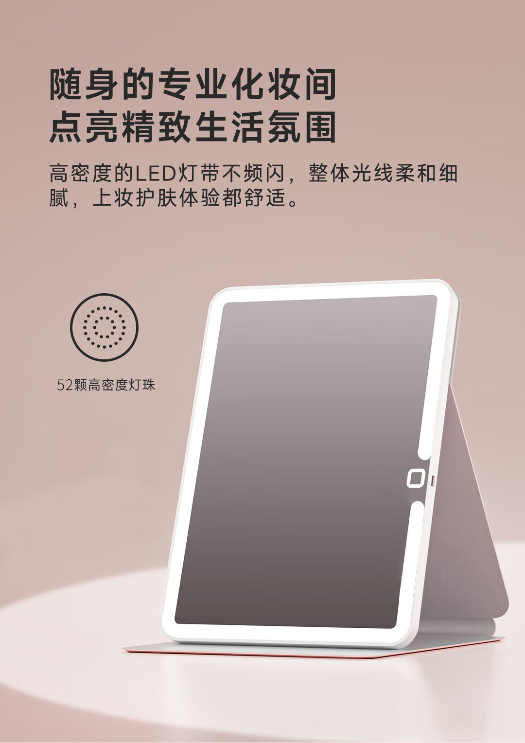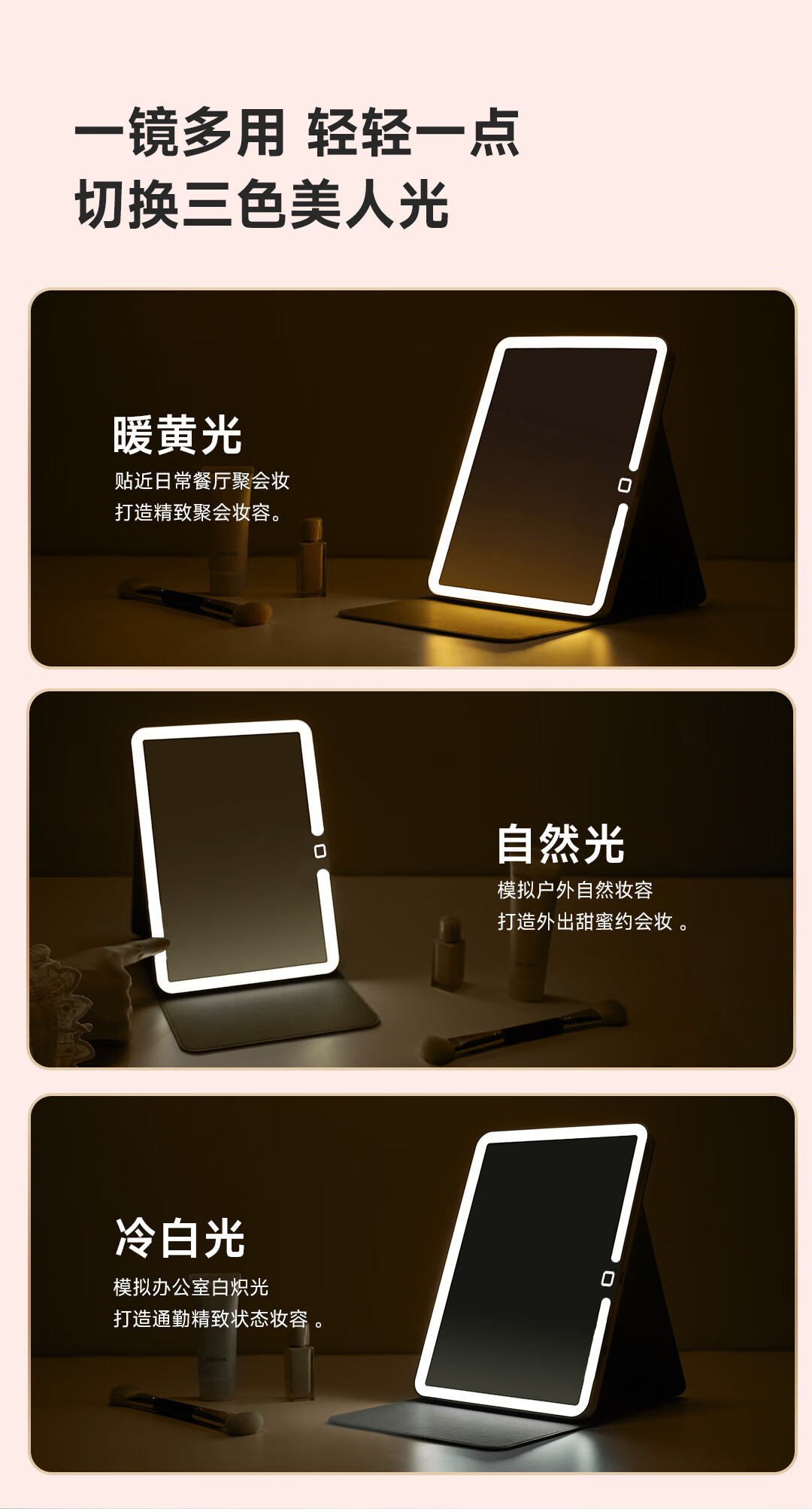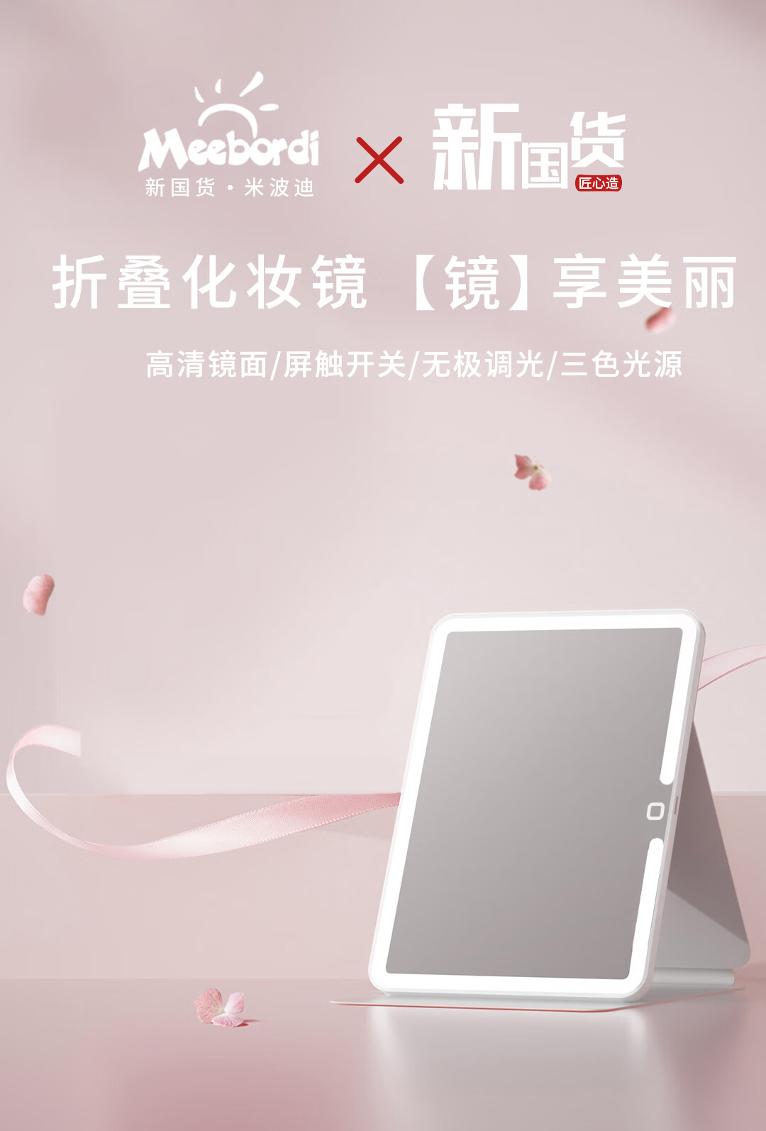 米波迪(Meebordi)【保价】化妆镜带灯LED镜子美妆镜皮革折叠梳妆镜三色无极调光便携桌面宿舍美容仪生日礼物女生 白