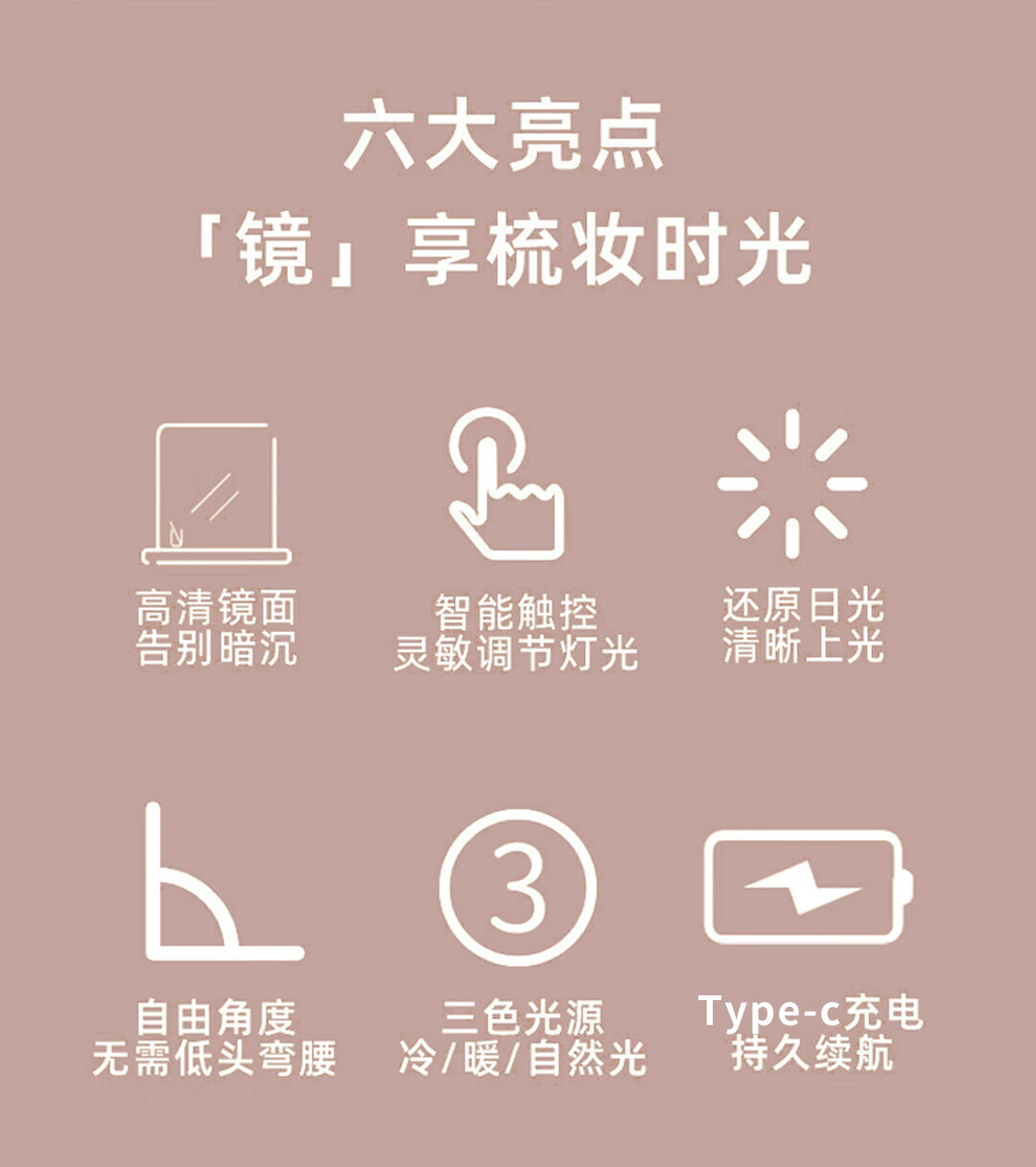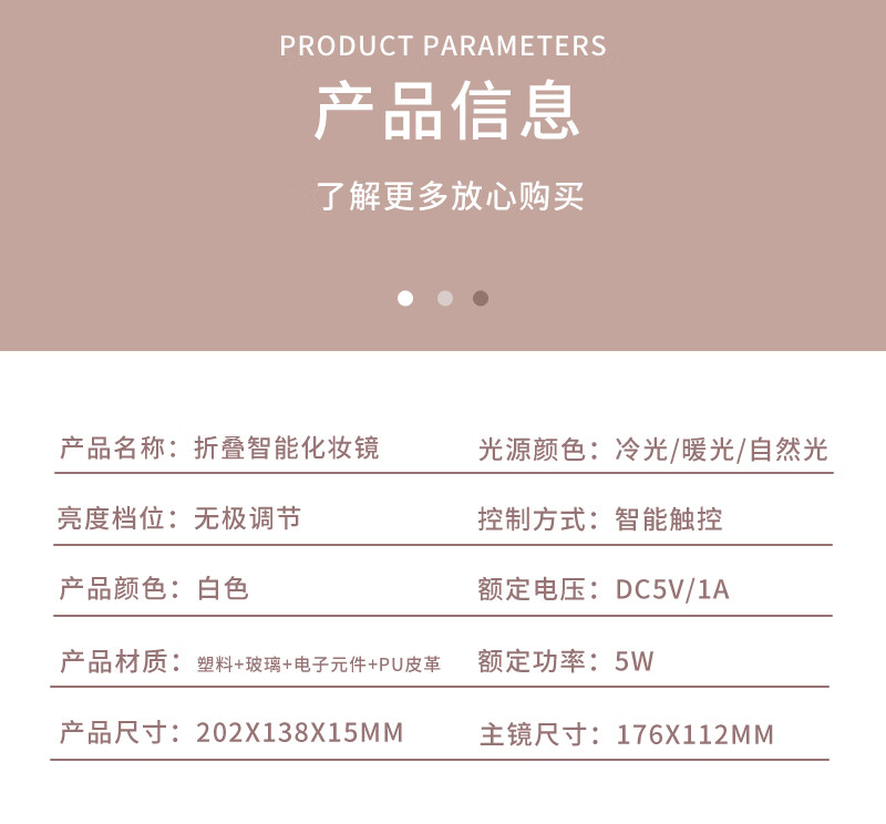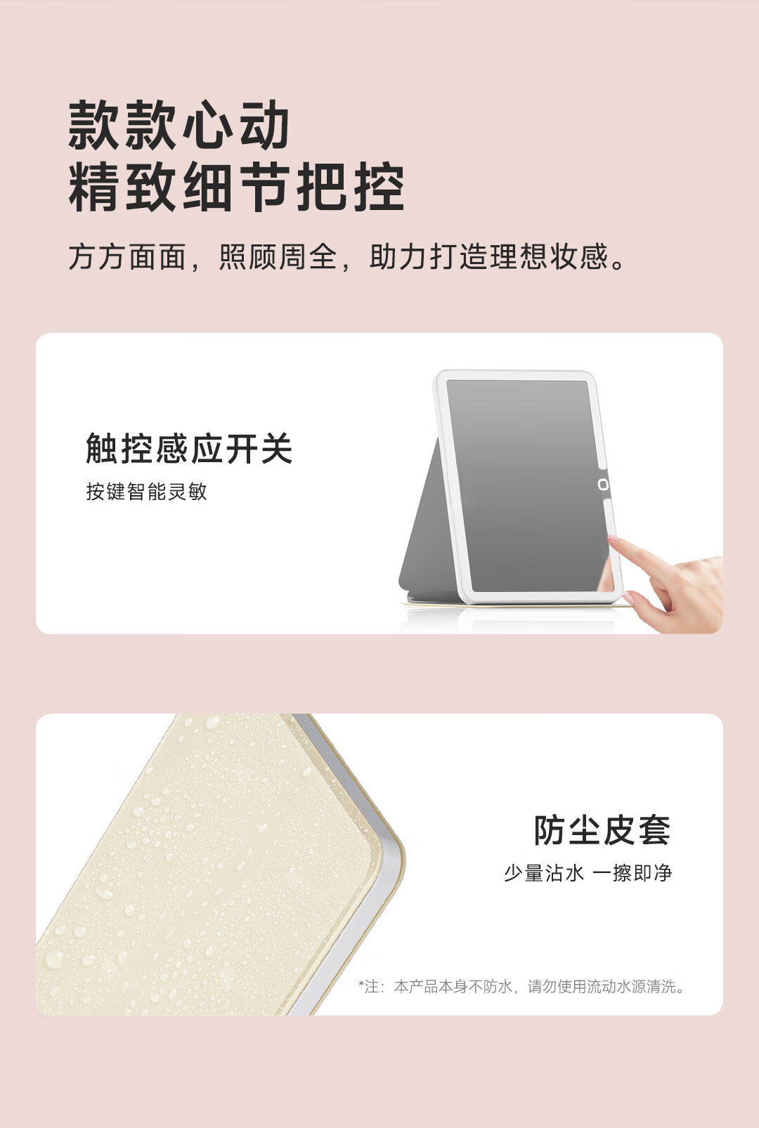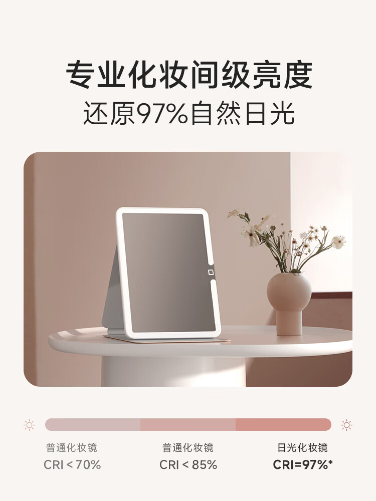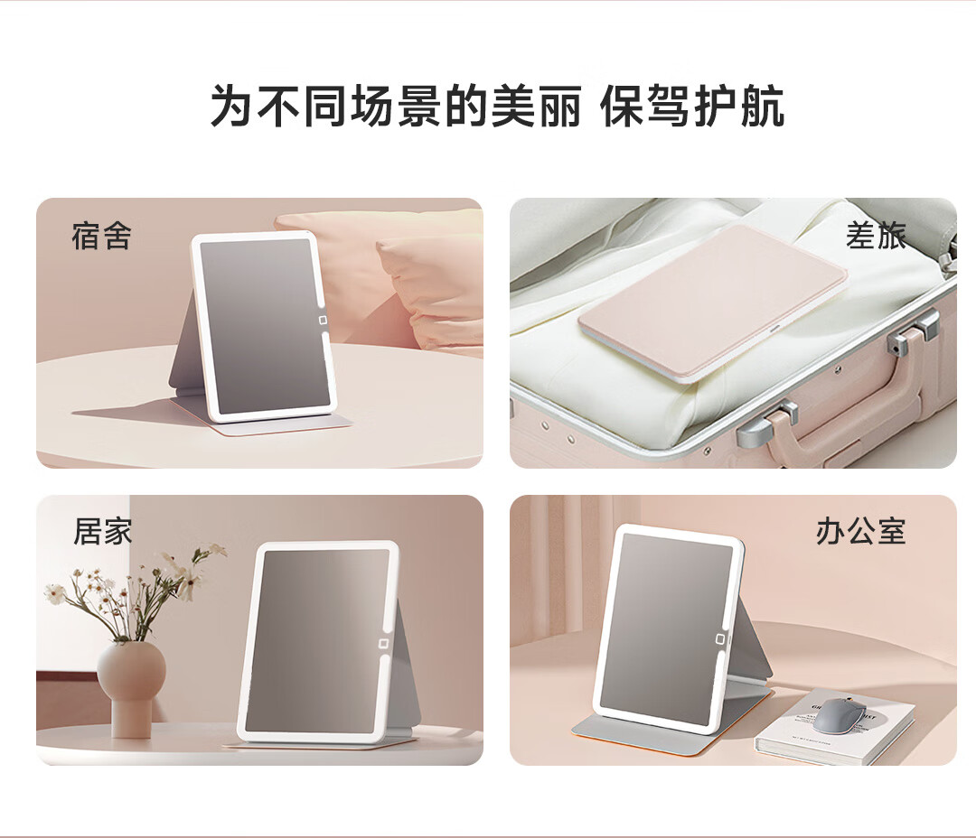 米波迪(Meebordi)【保价】化妆镜带灯LED镜子美妆镜皮革折叠梳妆镜三色无极调光便携桌面宿舍美容仪生日礼物女生 白