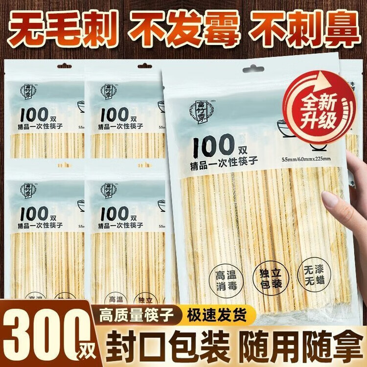 DEATKN一次性竹筷子100双装独立包装家用外出野炊野营快餐方便装 【98%人选择】升级加厚款 】店长推荐(高端品质)三包300双【