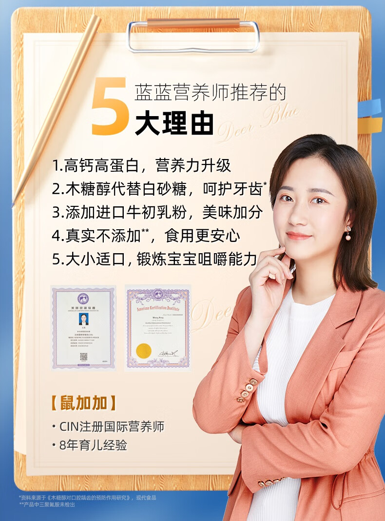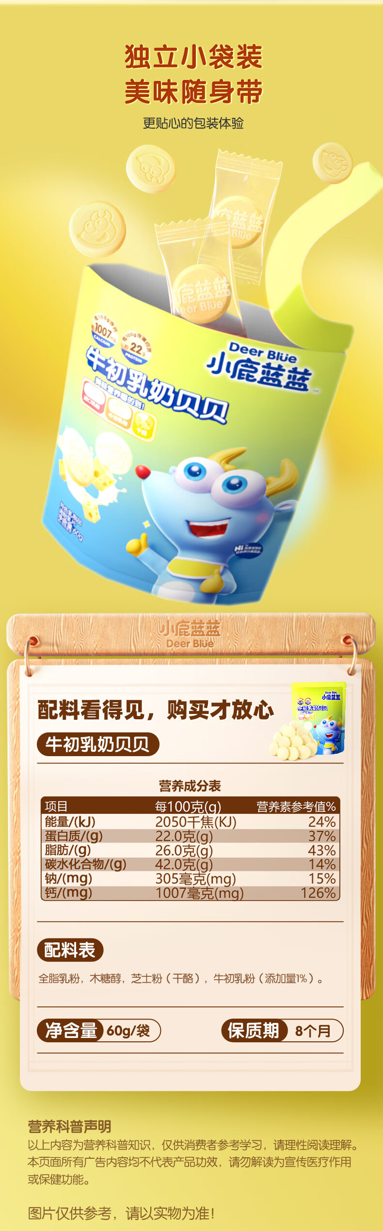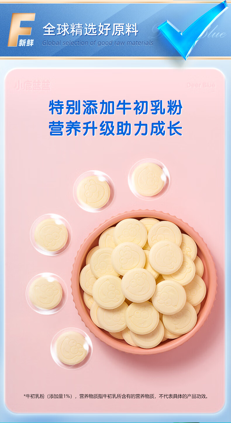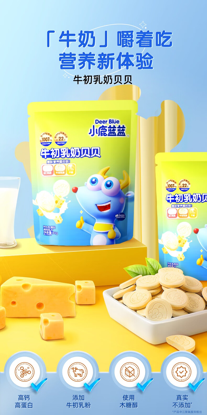 小鹿蓝蓝 牛初乳奶贝贝 儿童宝宝零食宝宝奶片含牛初乳酥脆易咀嚼60g