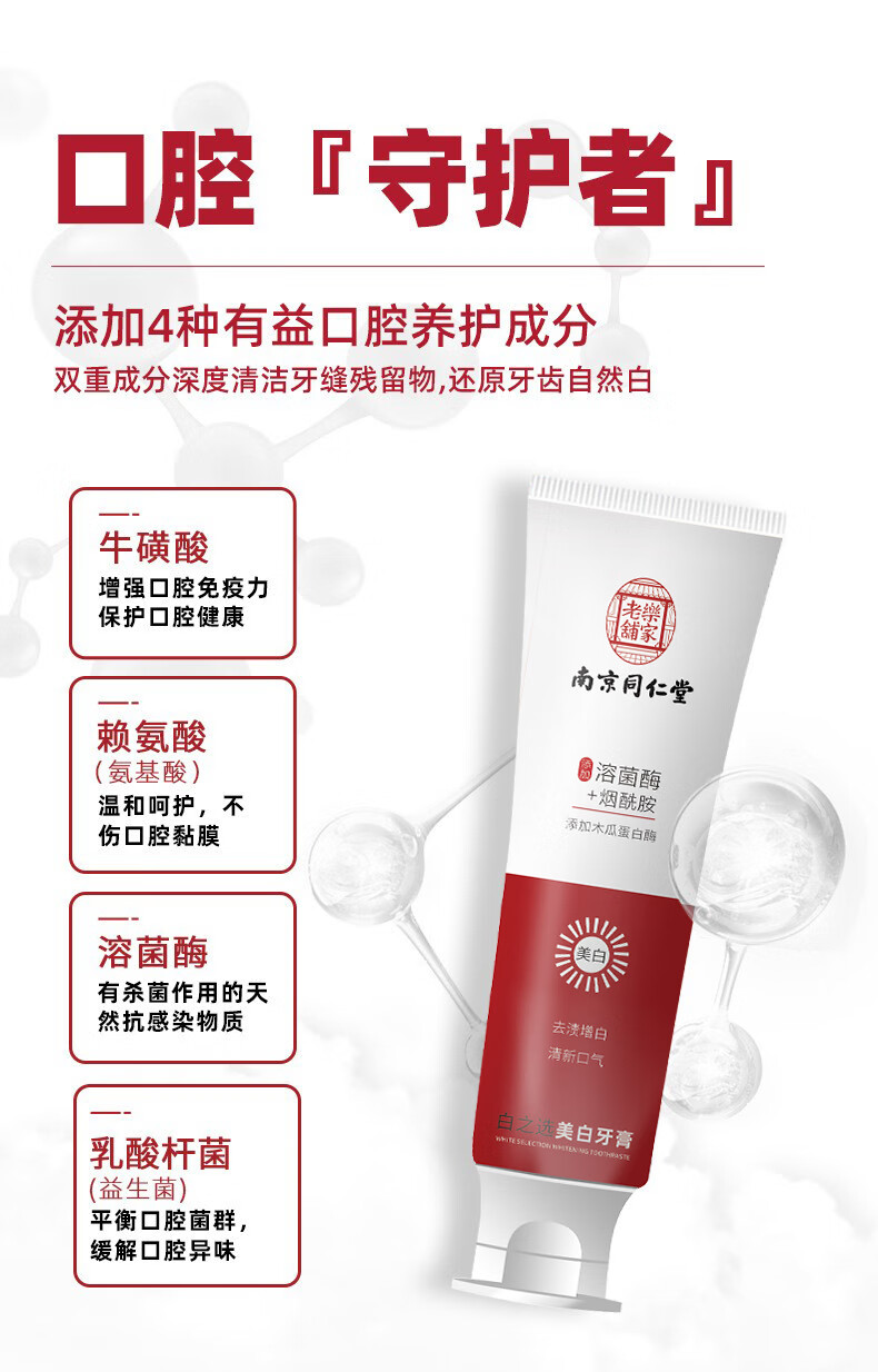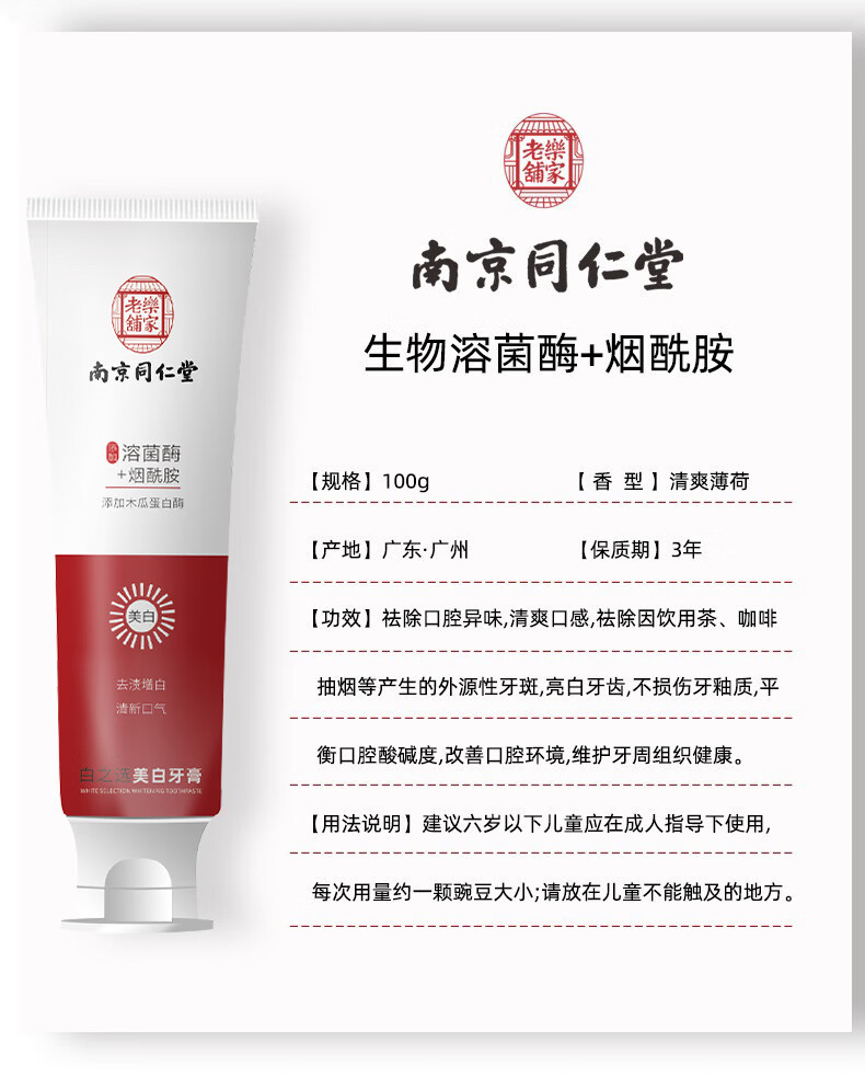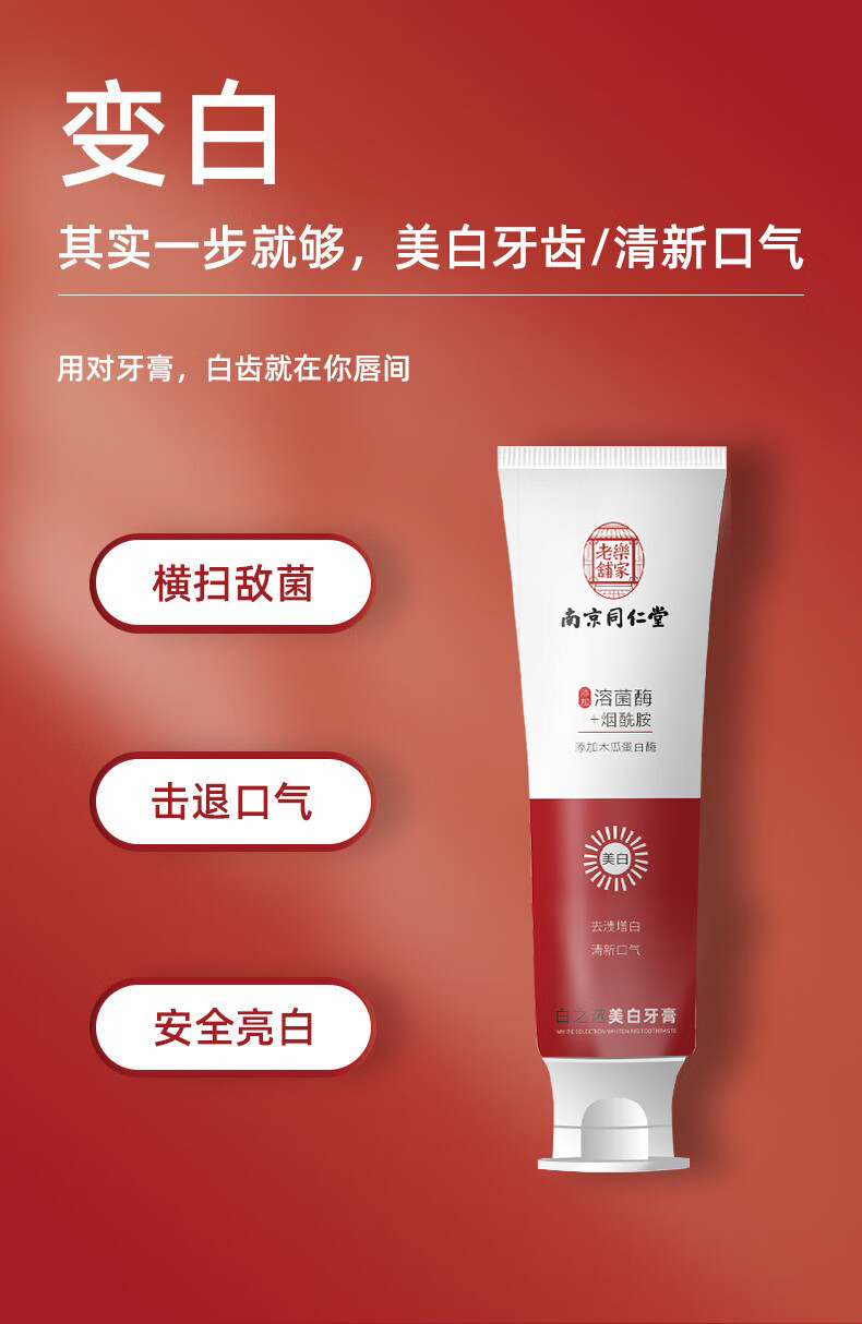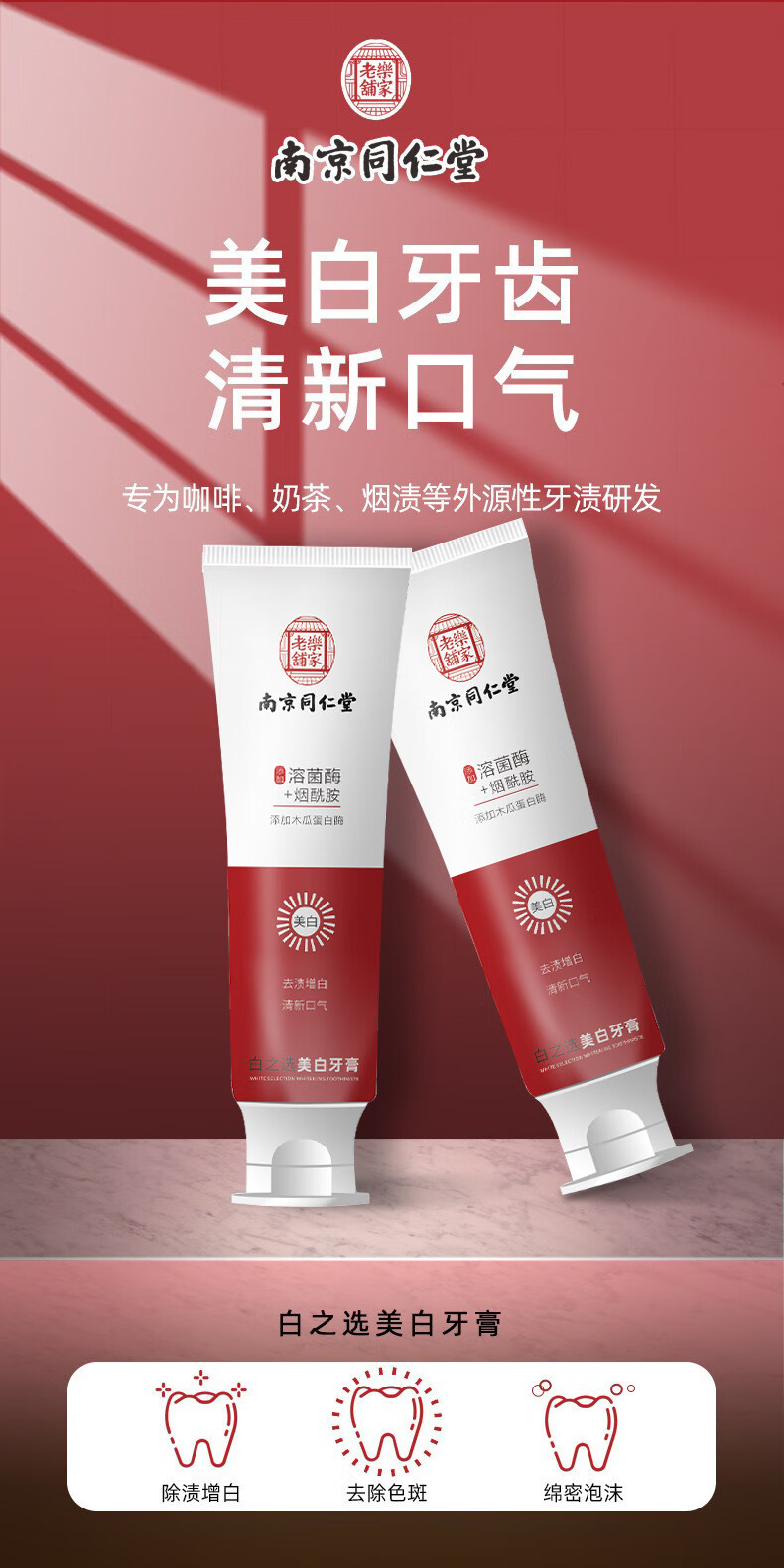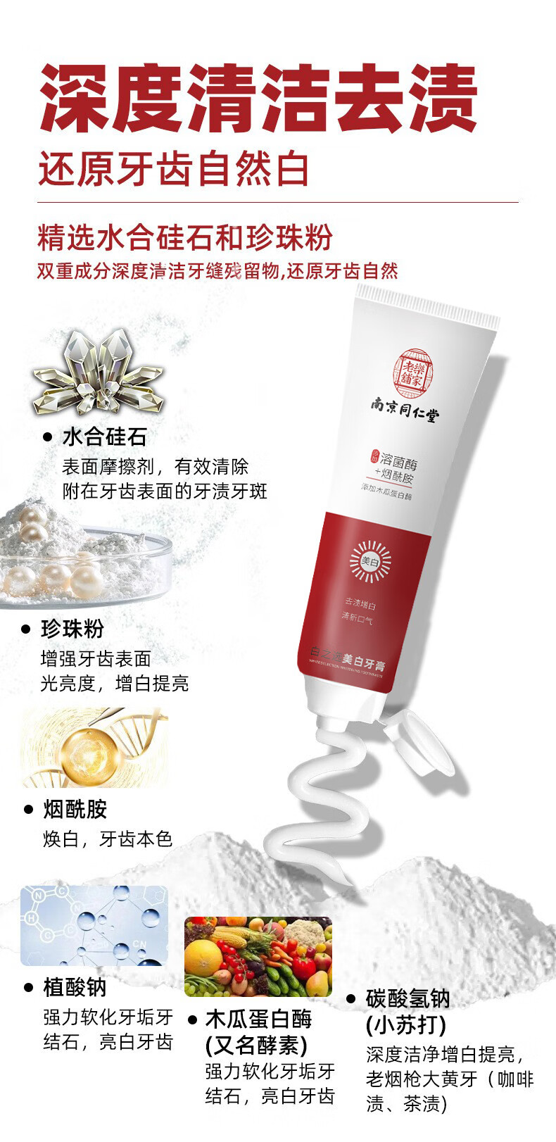 南京同仁堂美白牙膏口臭黄牙渍烟渍茶牙垢清洁美洁白牙齿口腔护龈清理神器 1支装【美白除牙石口腔异味】
