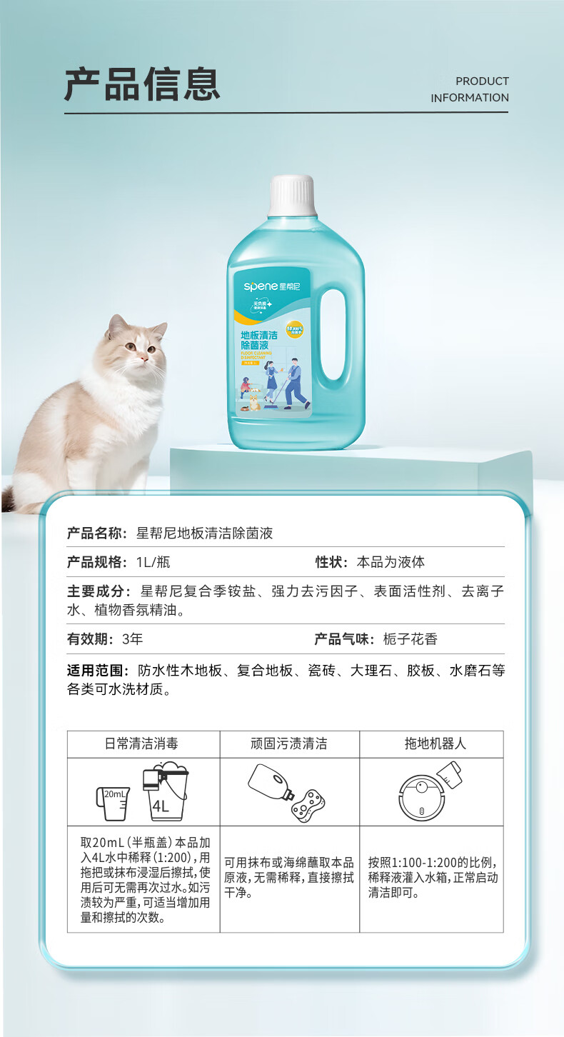 星帮尼(Spene)宠物地板清洁消毒液狗狗除味狗尿去尿味猫咪除臭剂杀菌拖地专用水