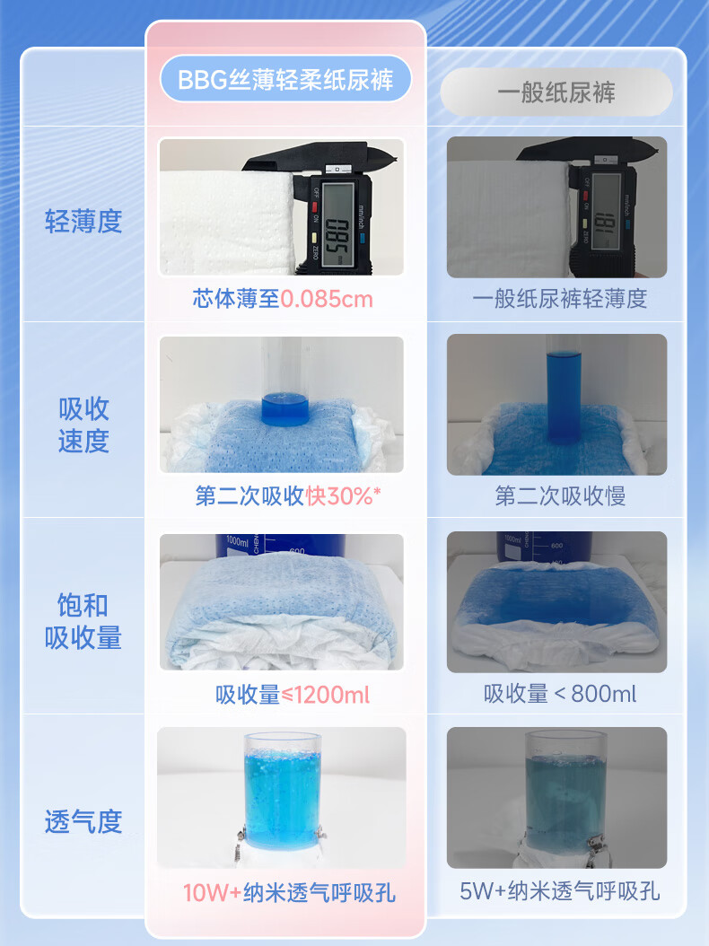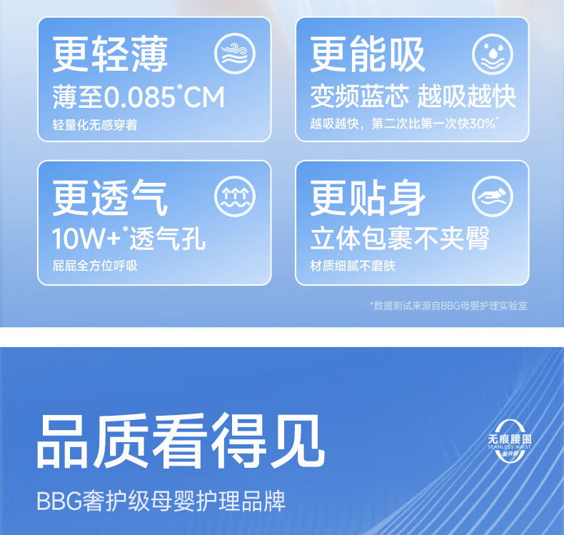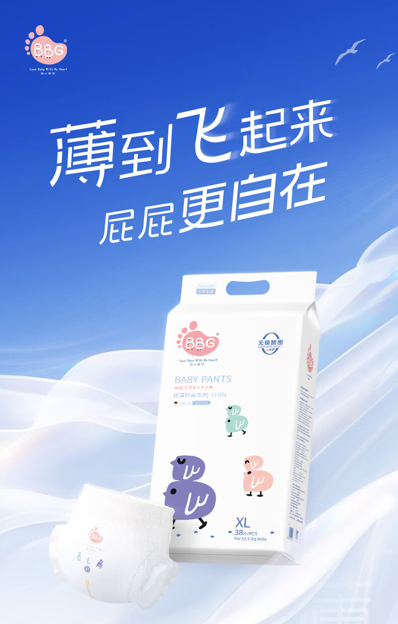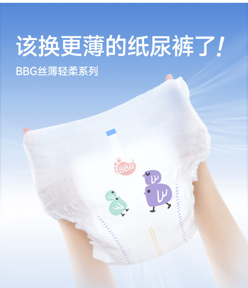 BBG蓝芯丝薄轻柔bbg纸尿裤L码42片(9-12kg)尿不湿超薄透气裸感亲肤
