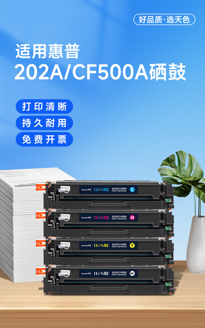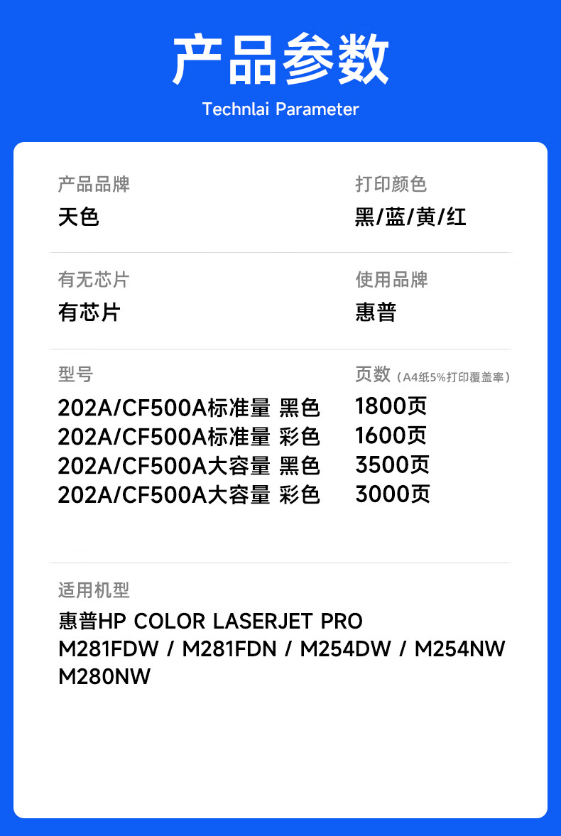 天色CF500A硒鼓适用惠普m281fdw硒鼓m254dw m254nw m281fdn m280nw打印机粉盒墨盒202A四色套装带芯片