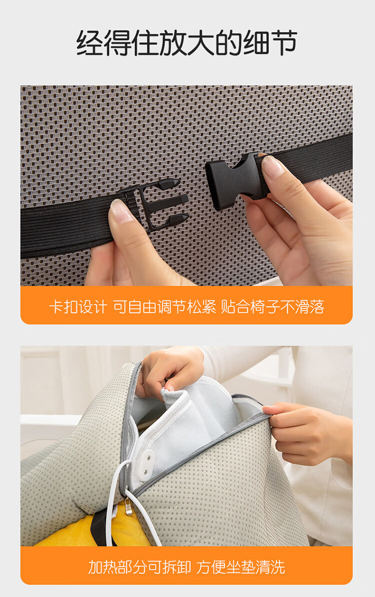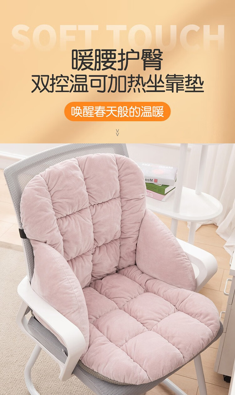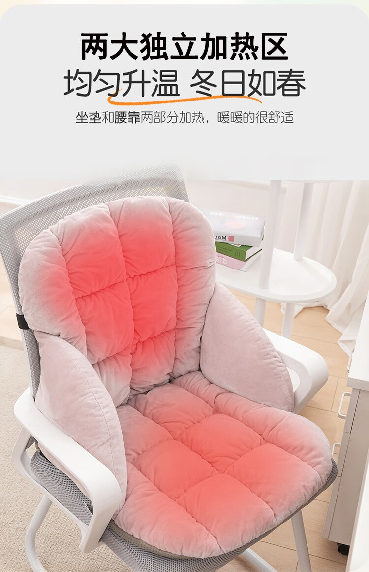 萱诗贝加热坐垫办公室靠背一体座椅加热垫可拆洗冬季学生加厚保暖电热垫 暗粉(九档加热/智能数显)
