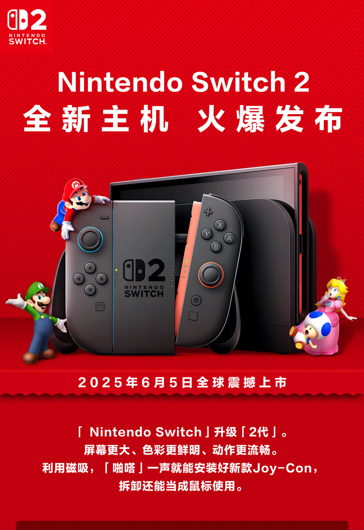 Nintendo Switch便携NS2体感掌机港版 任天堂Switch2游戏机 磁吸Joy-con 2025款【单机 尝鲜版】不含游戏-现货速发
