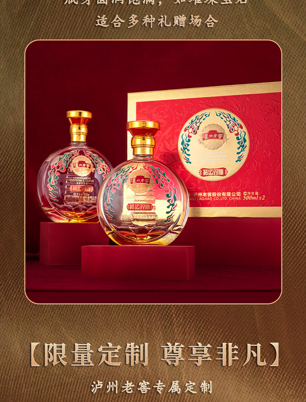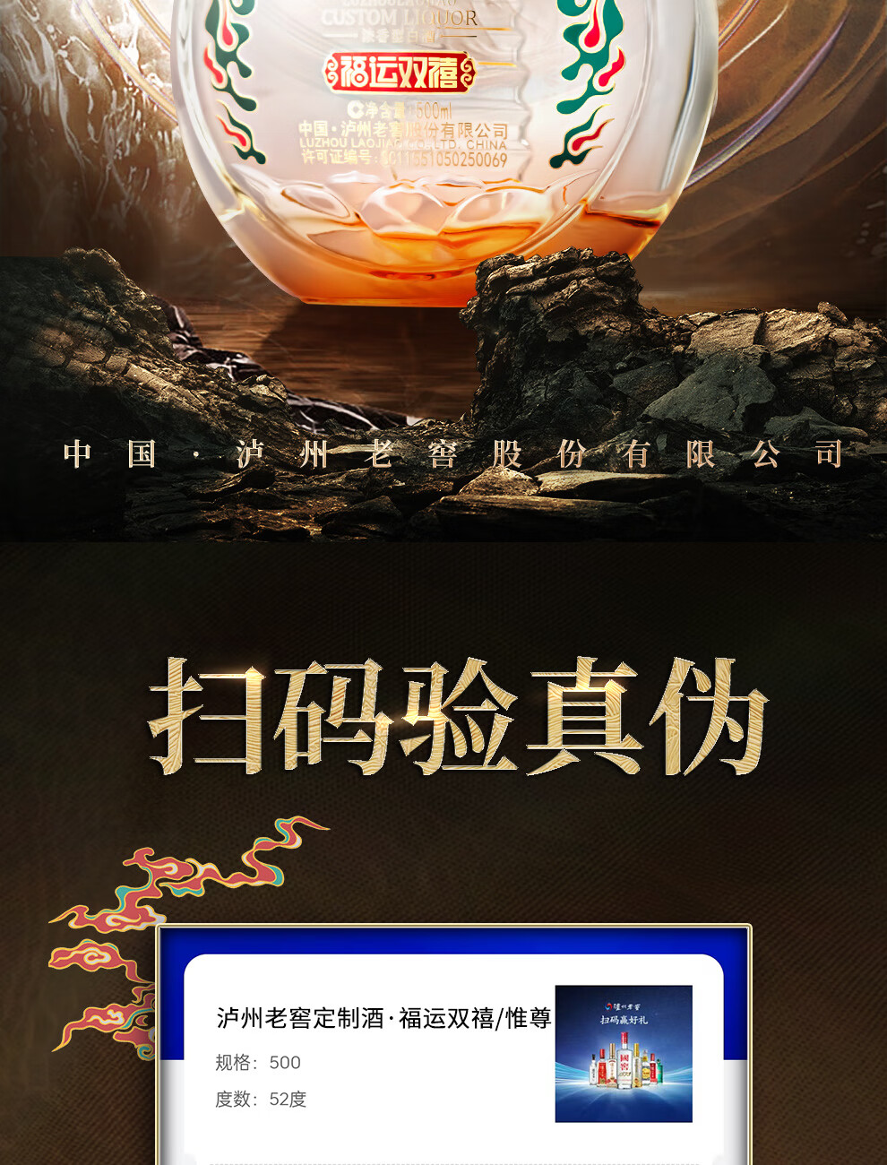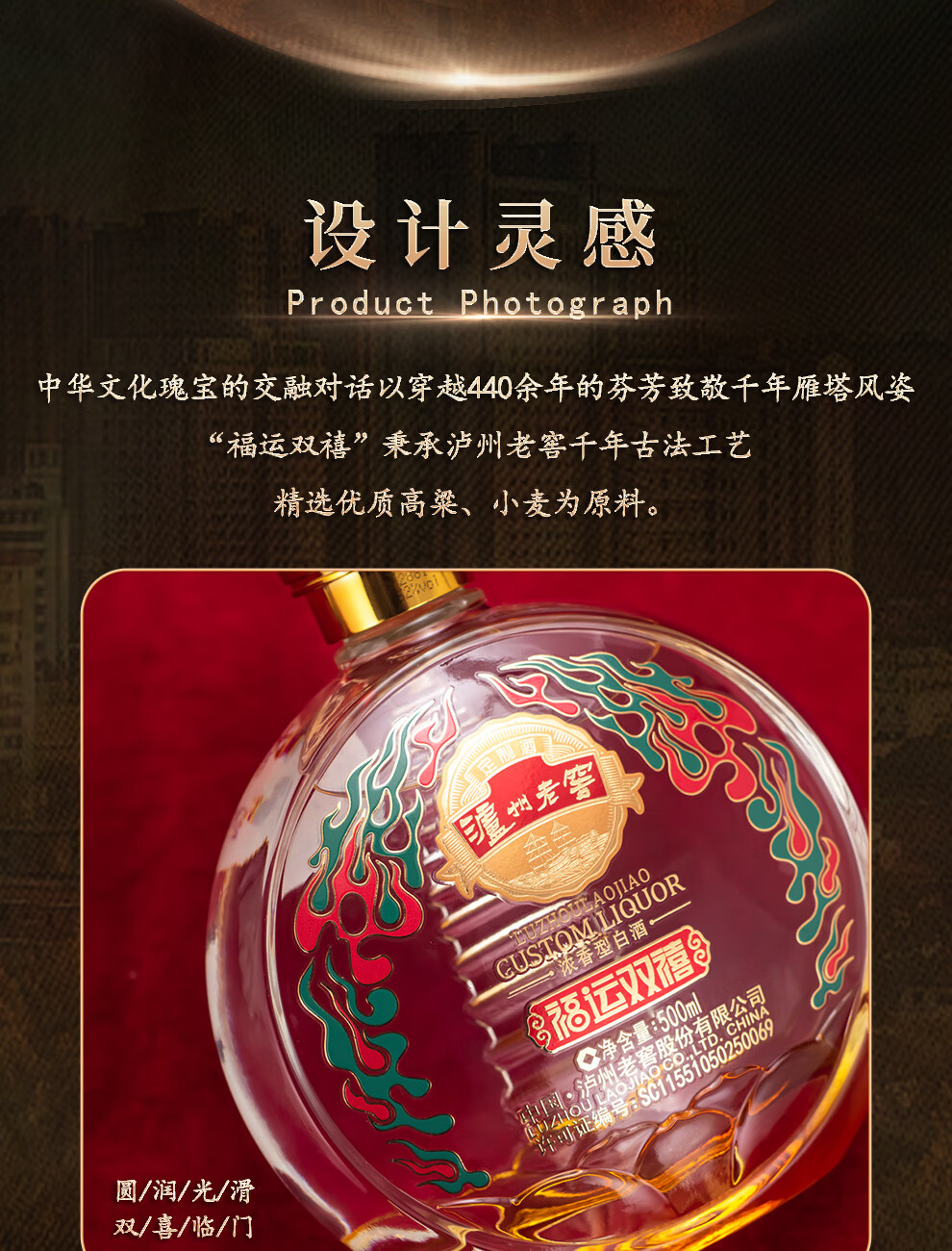 泸州老窖定制酒 雁塔祈福 礼盒白酒 福运双禧 浓香型白酒【每盒配手提袋】 52度 500mL 2瓶 礼盒装