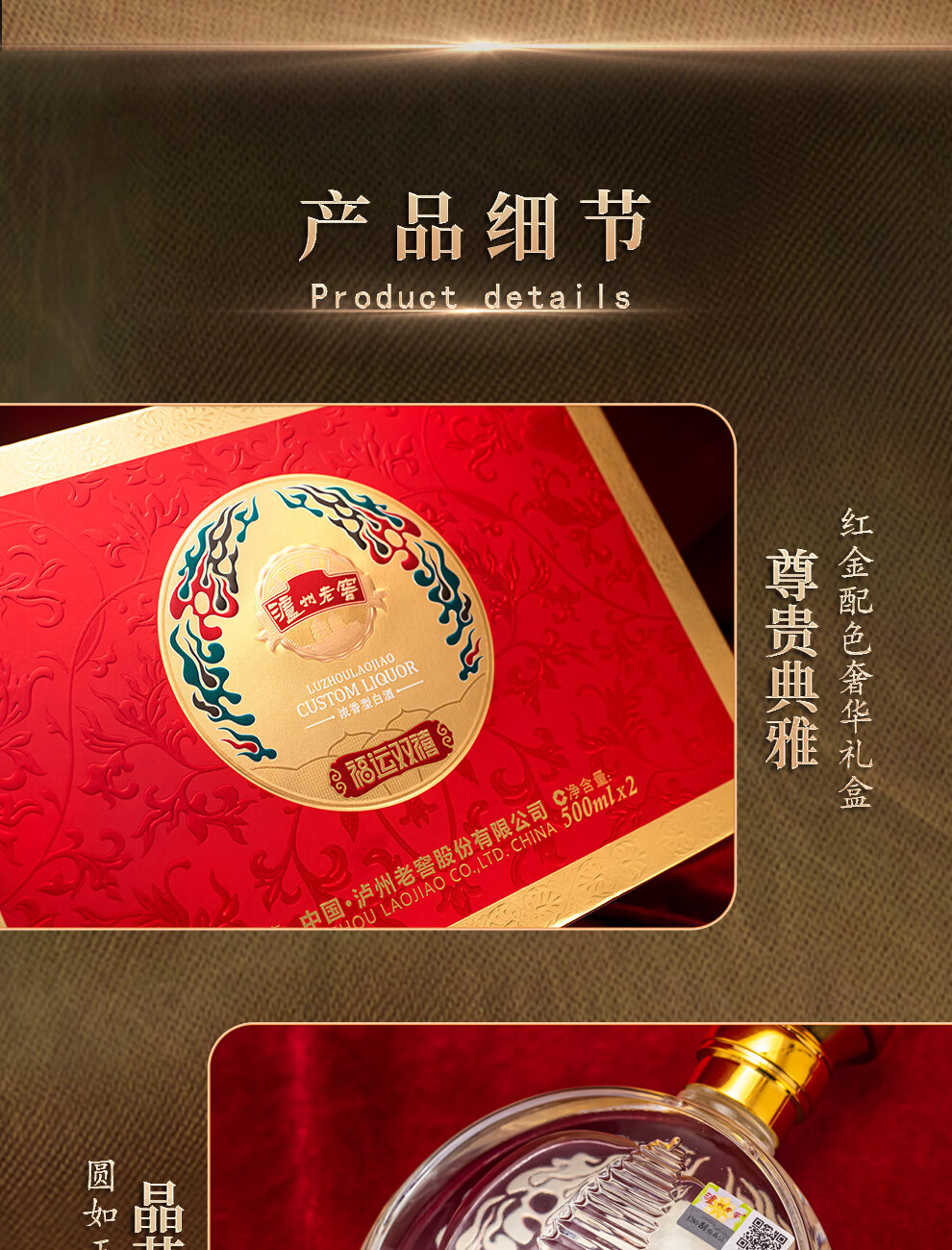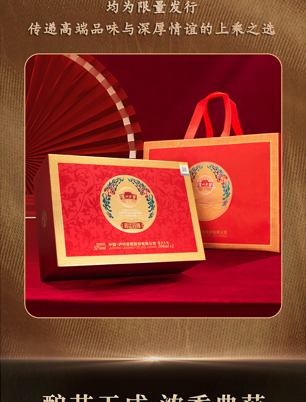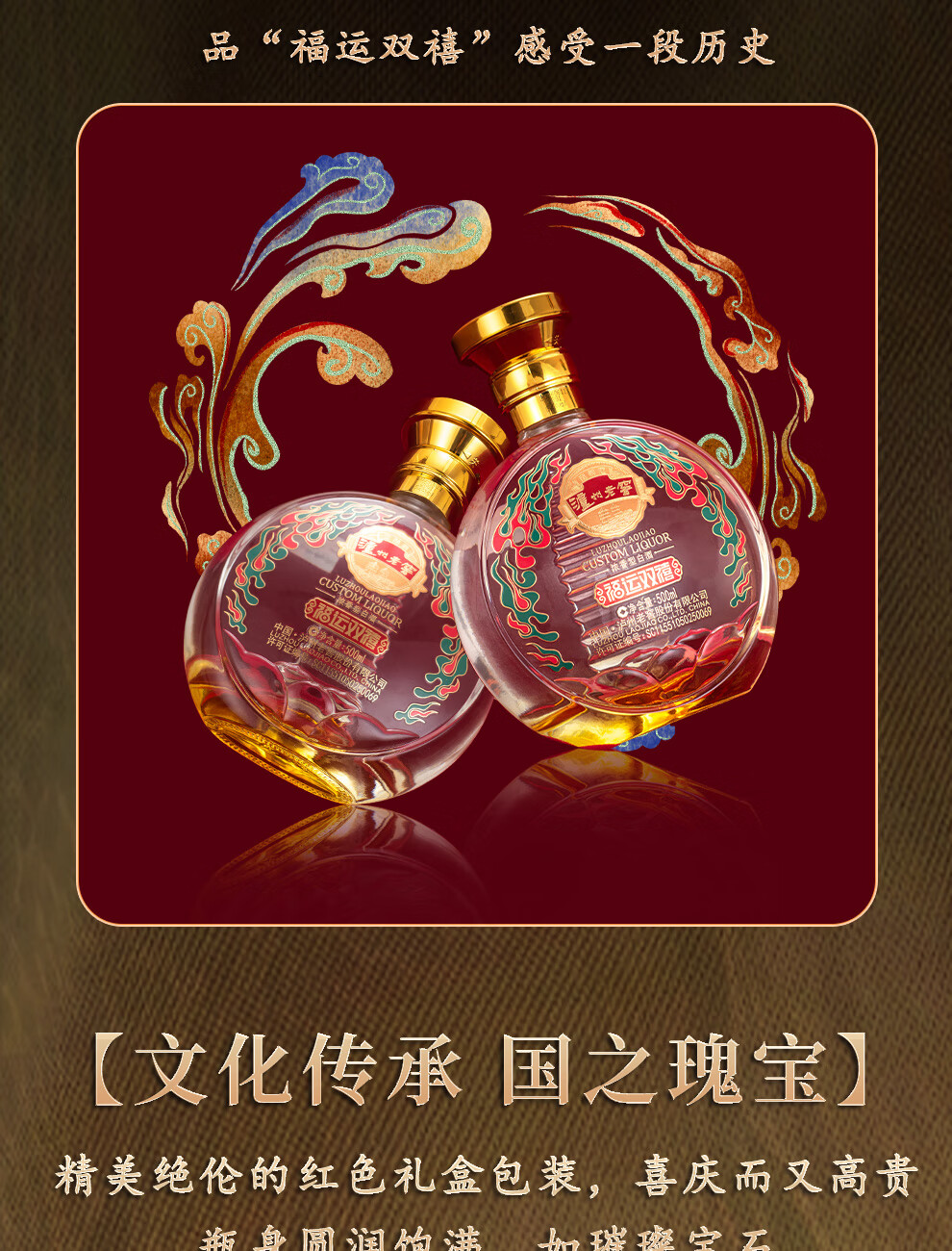 泸州老窖定制酒 雁塔祈福 礼盒白酒 福运双禧 浓香型白酒【每盒配手提袋】 52度 500mL 2瓶 礼盒装