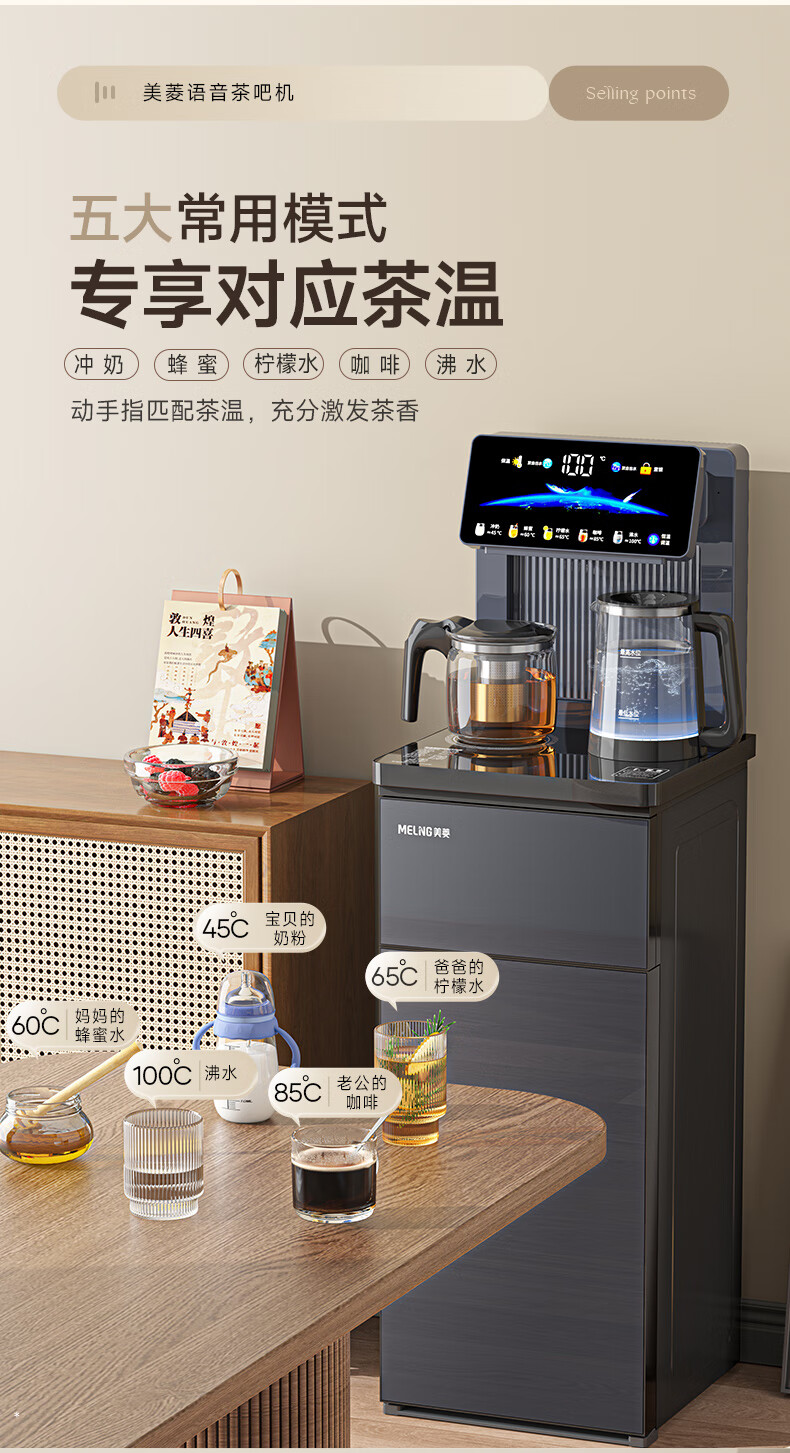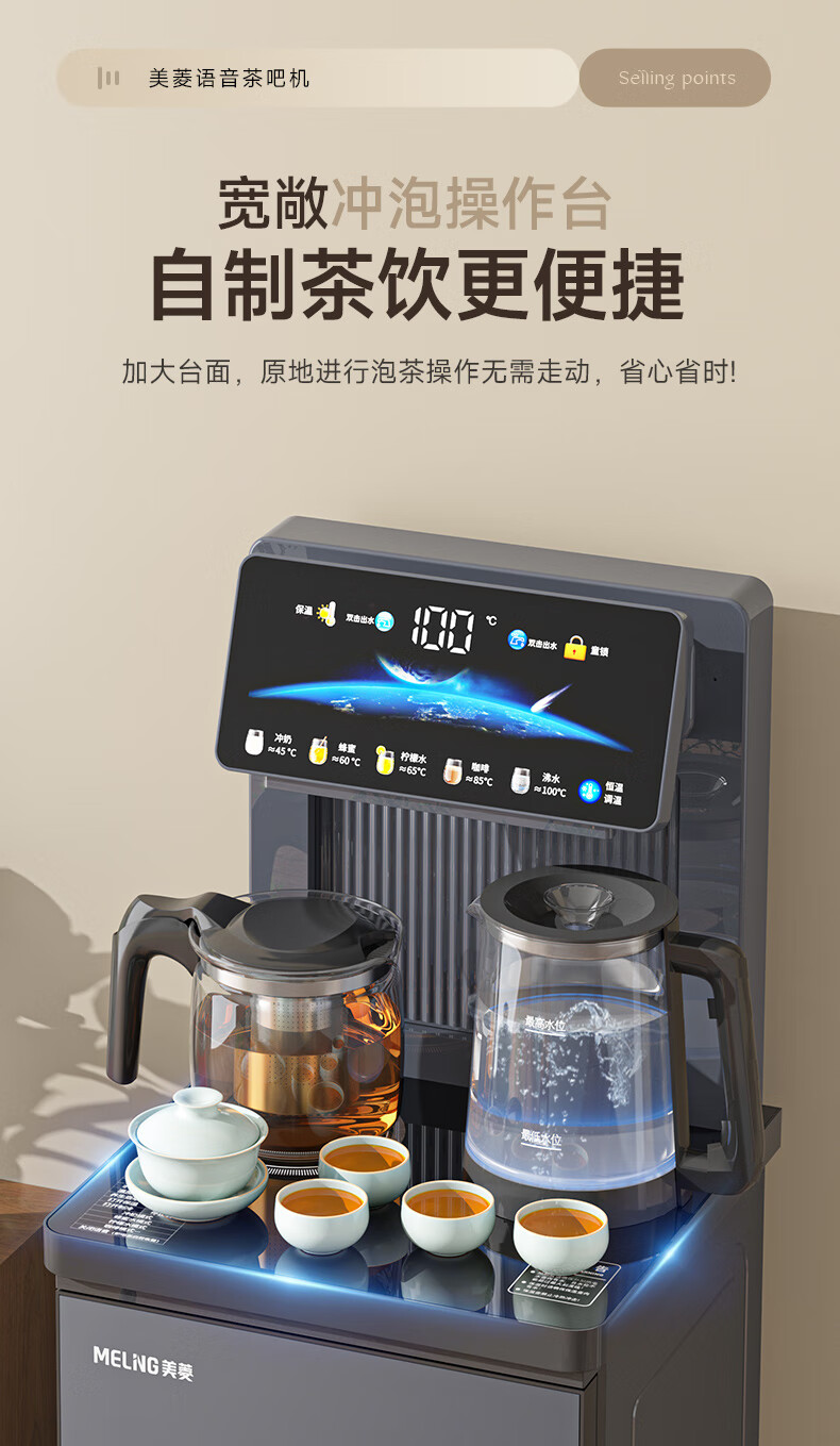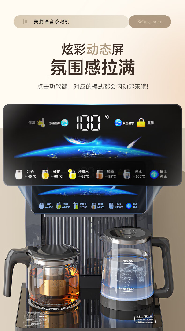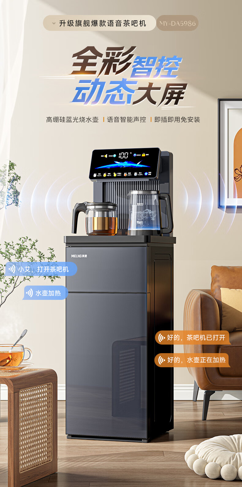 美菱(MeiLing)智能语音茶吧机家用饮水机高端客厅多功能遥控下置式炫彩大屏一键选温温热型MY-DA5986(语音款)
