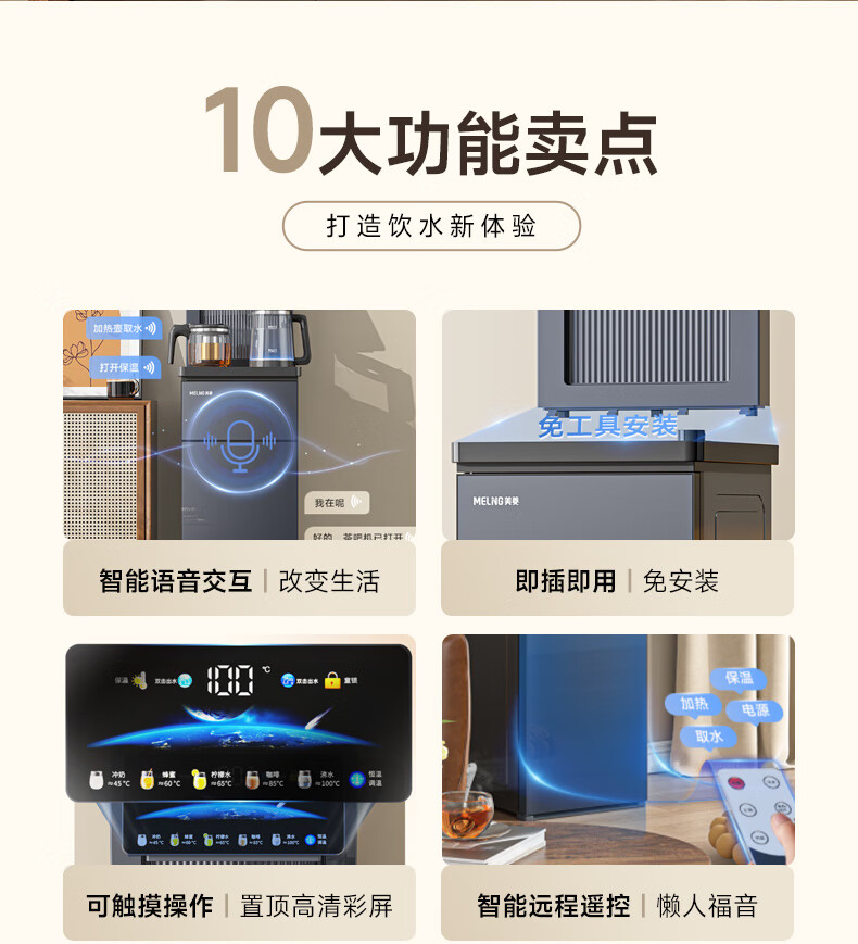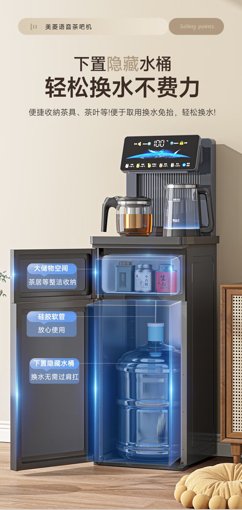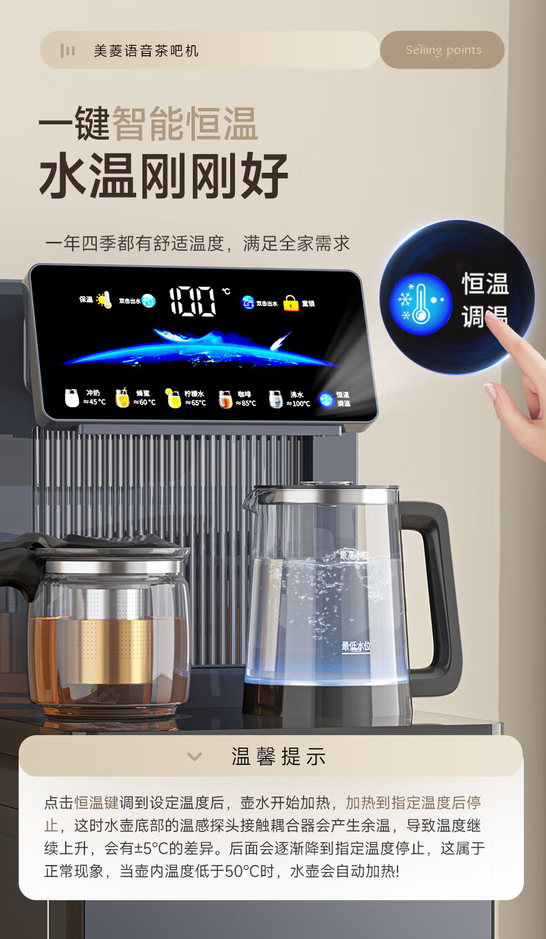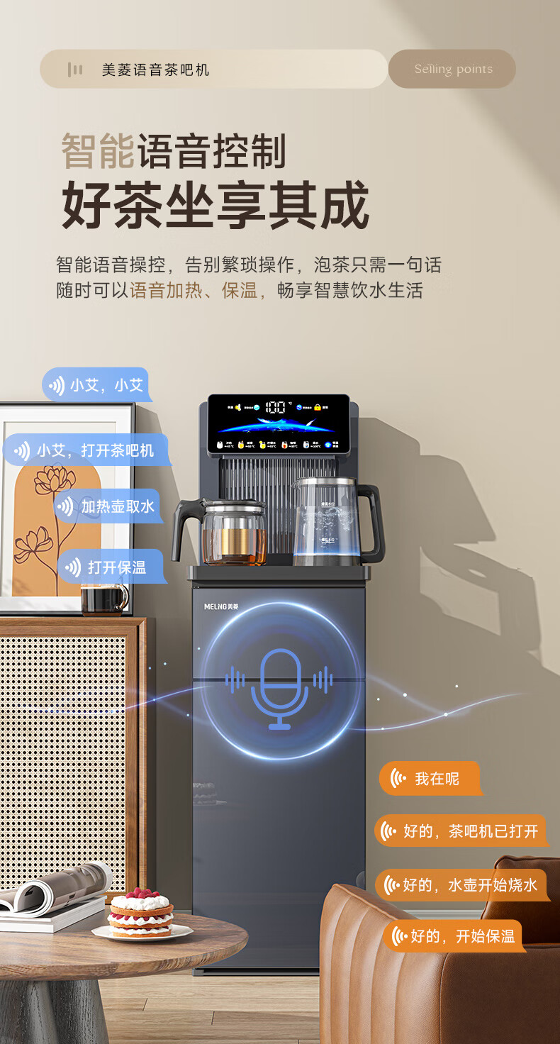 美菱(MeiLing)智能语音茶吧机家用饮水机高端客厅多功能遥控下置式炫彩大屏一键选温温热型MY-DA5986(语音款)