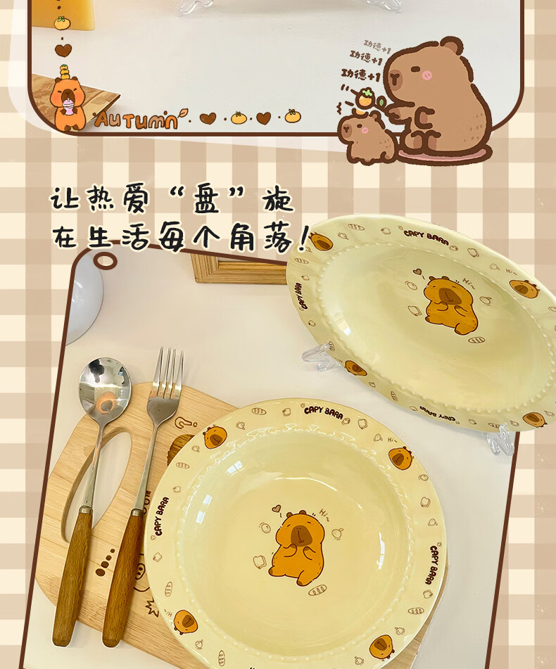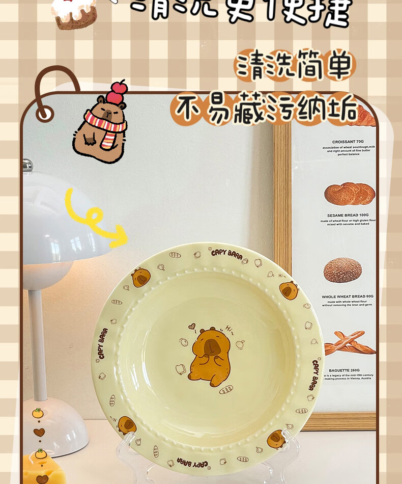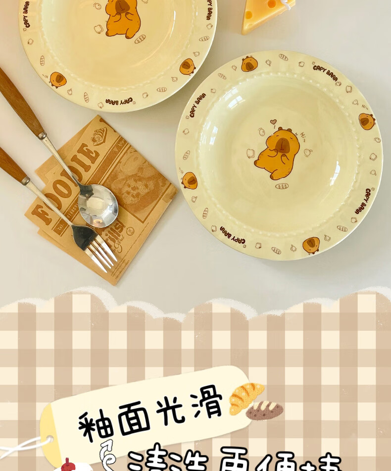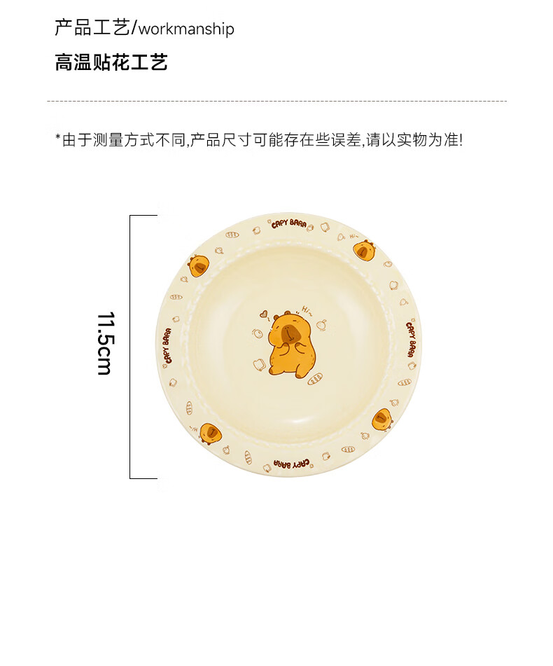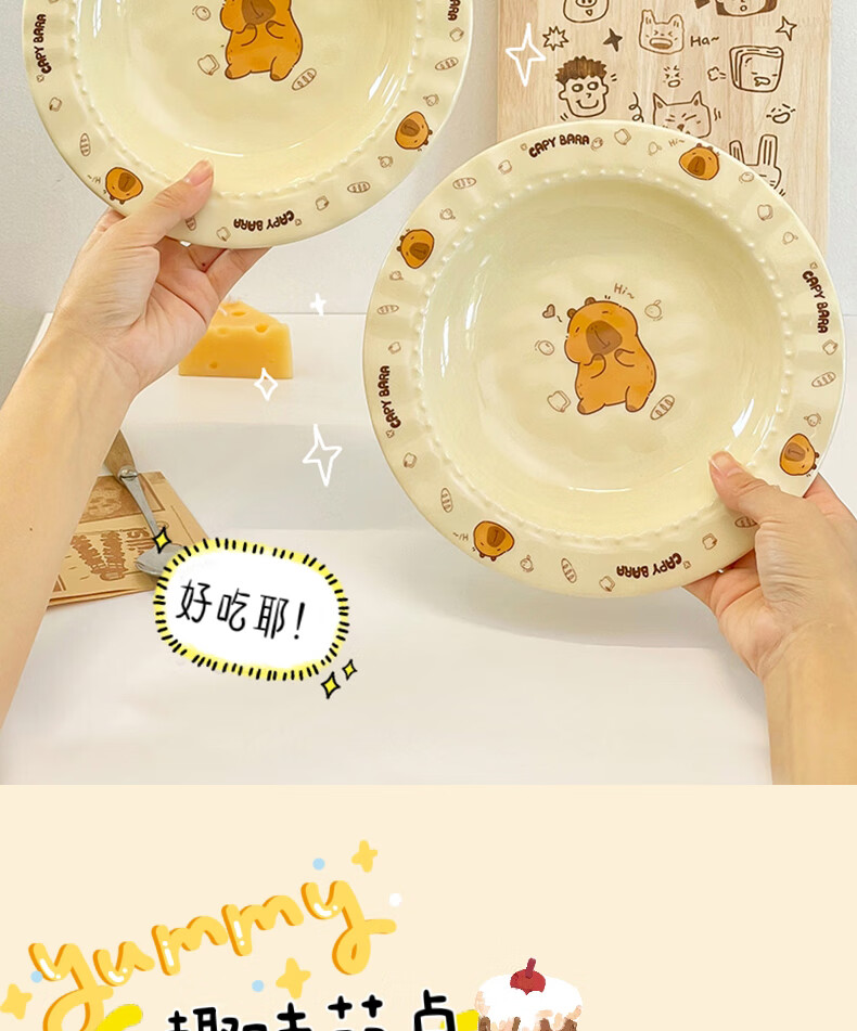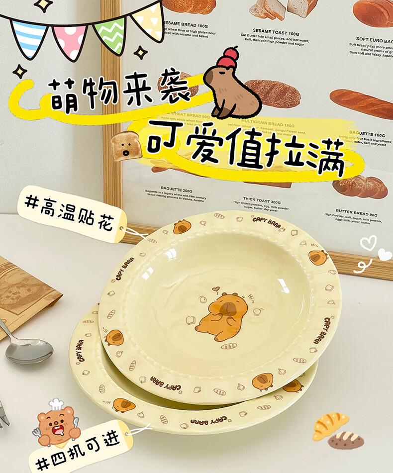 卡皮巴拉陶瓷餐盘可爱家用宿舍草帽盘蛋糕盘高颜值精致餐具碗盘 卡迪巴拉【4个装】4.5英寸碗