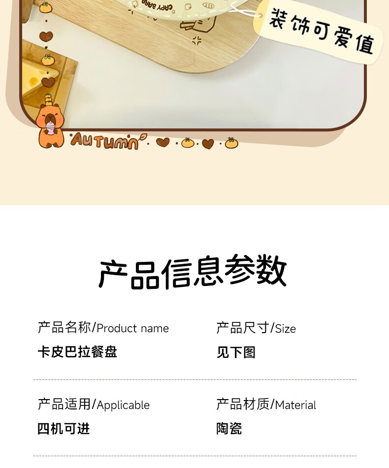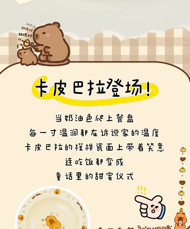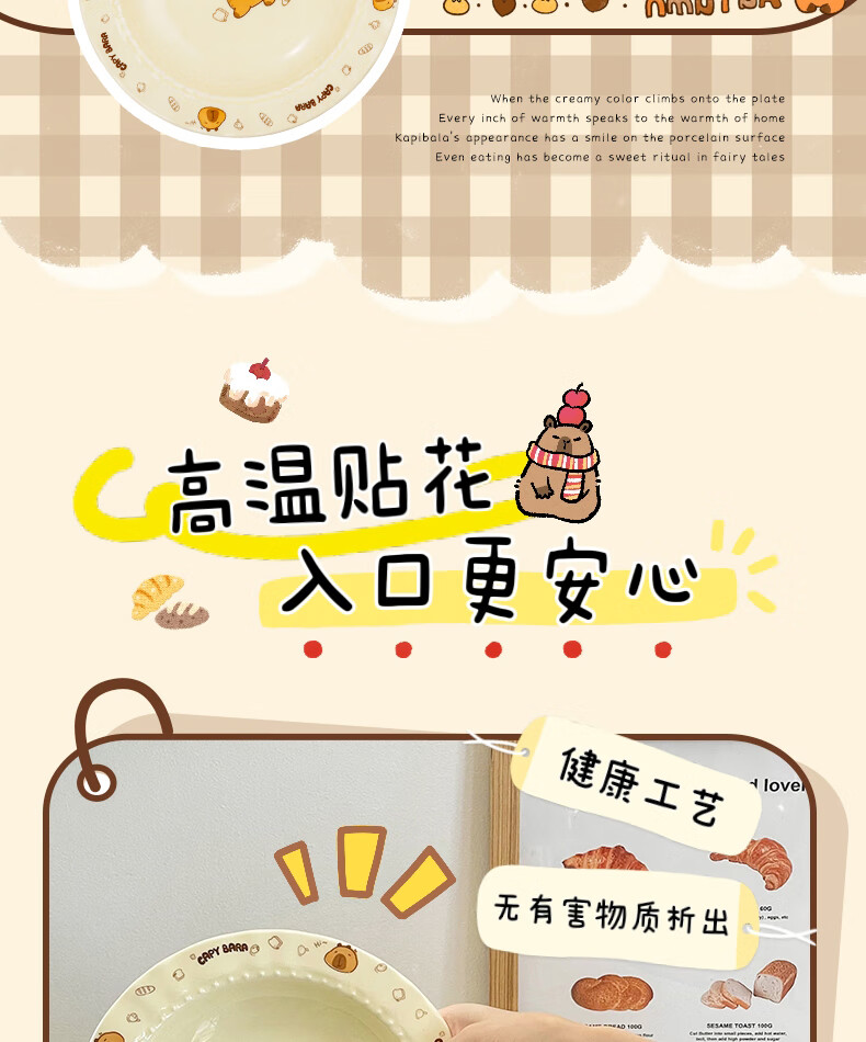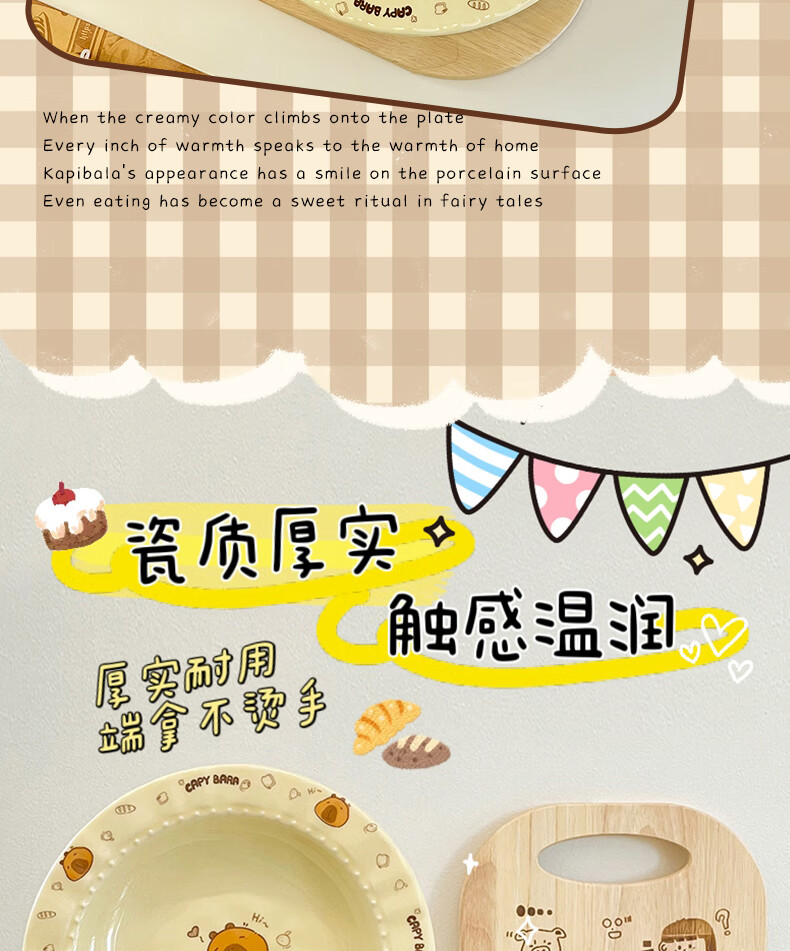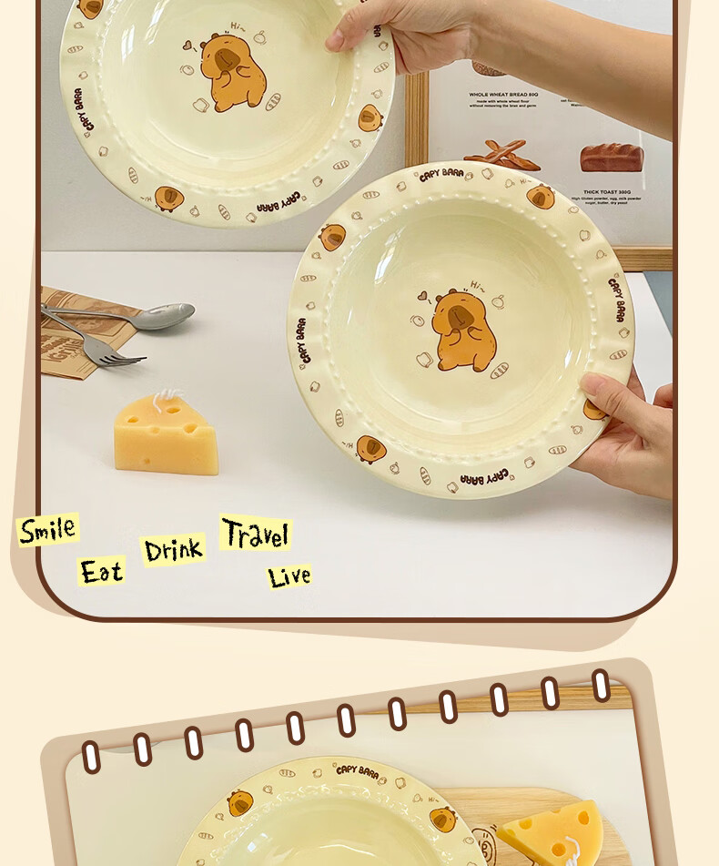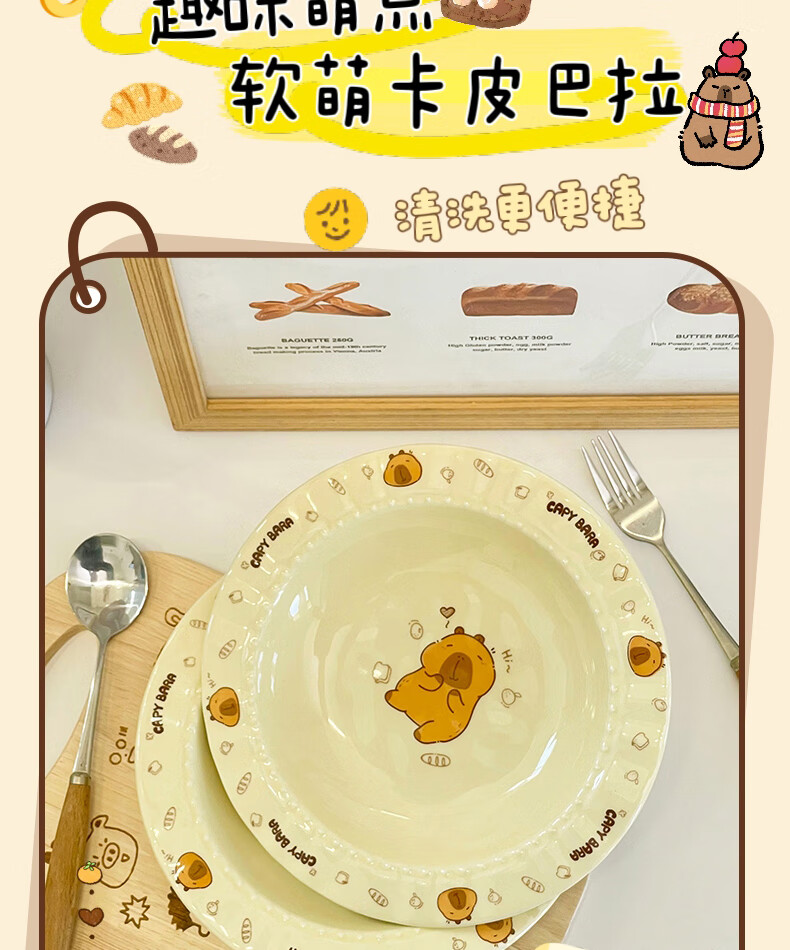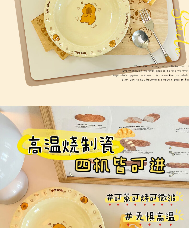 卡皮巴拉陶瓷餐盘可爱家用宿舍草帽盘蛋糕盘高颜值精致餐具碗盘 卡迪巴拉【4个装】4.5英寸碗