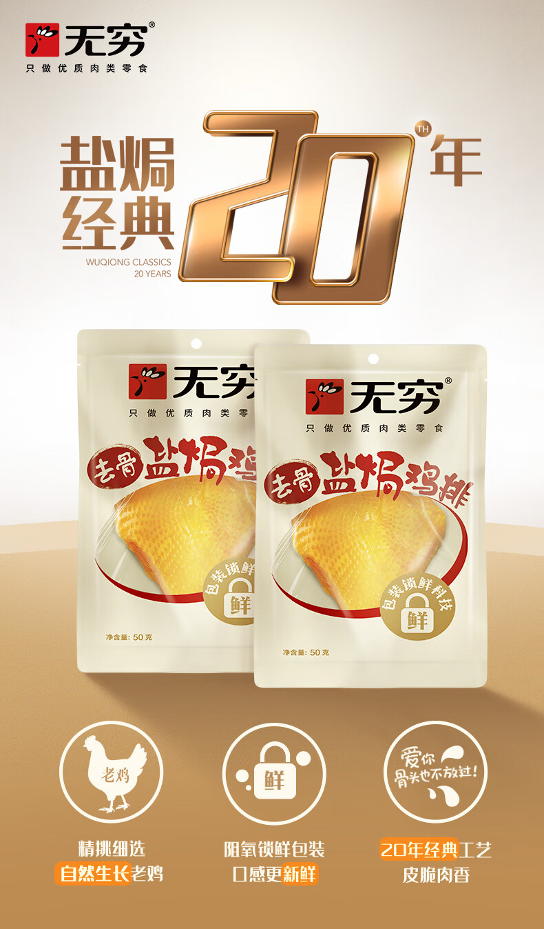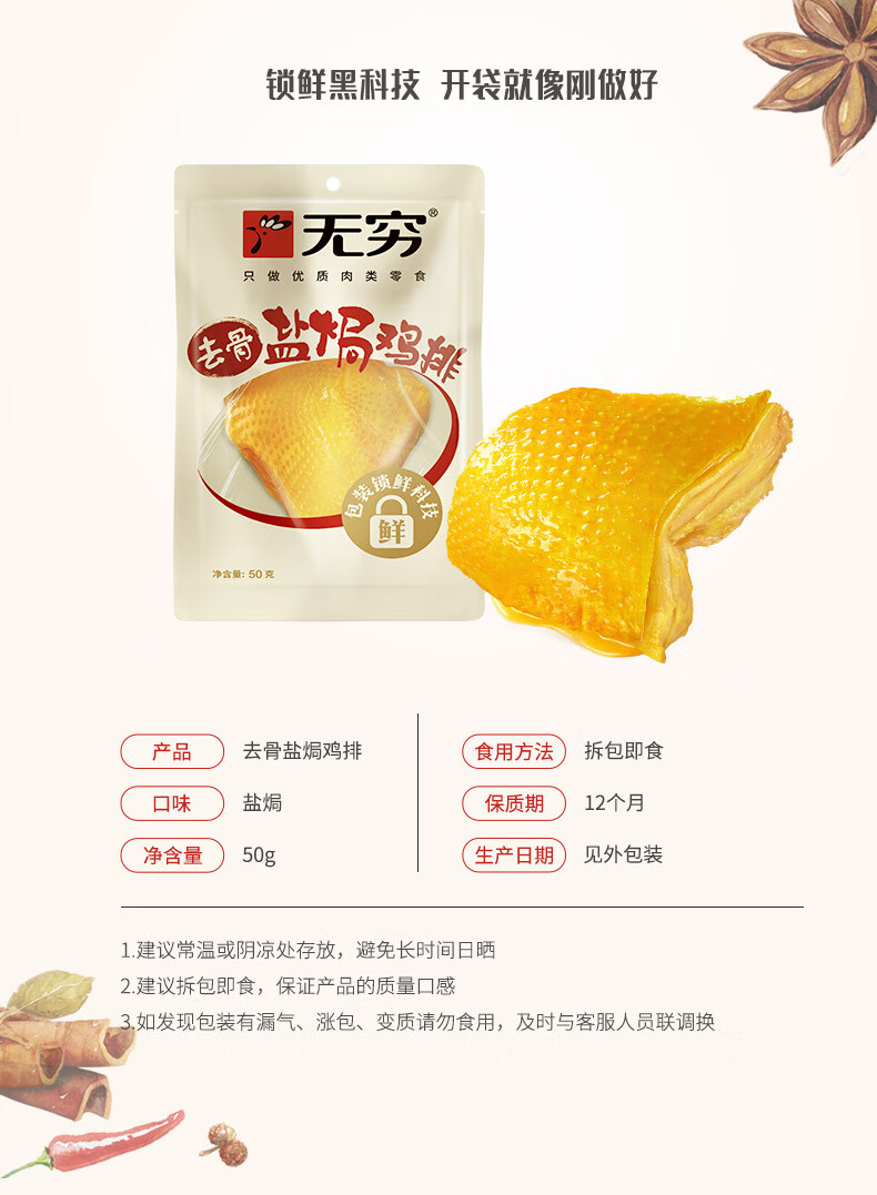 无穷 鸡胸肉盐焗肉类零食去骨盐焗鸡排50g袋装带皮鸡肉
