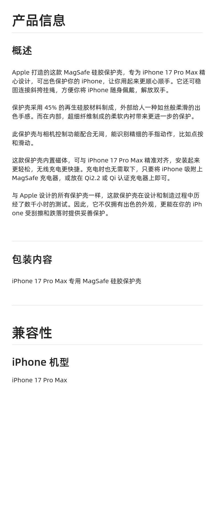 Apple/苹果 iPhone 17ProMax硅胶手机壳-黑色 磁吸手机壳苹果17promax手机壳苹果手机壳全包
