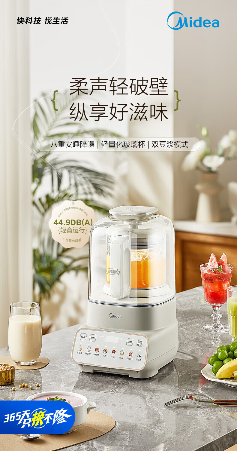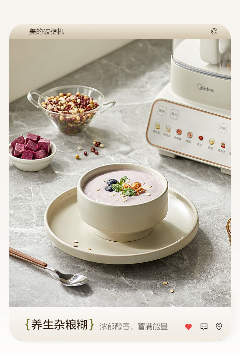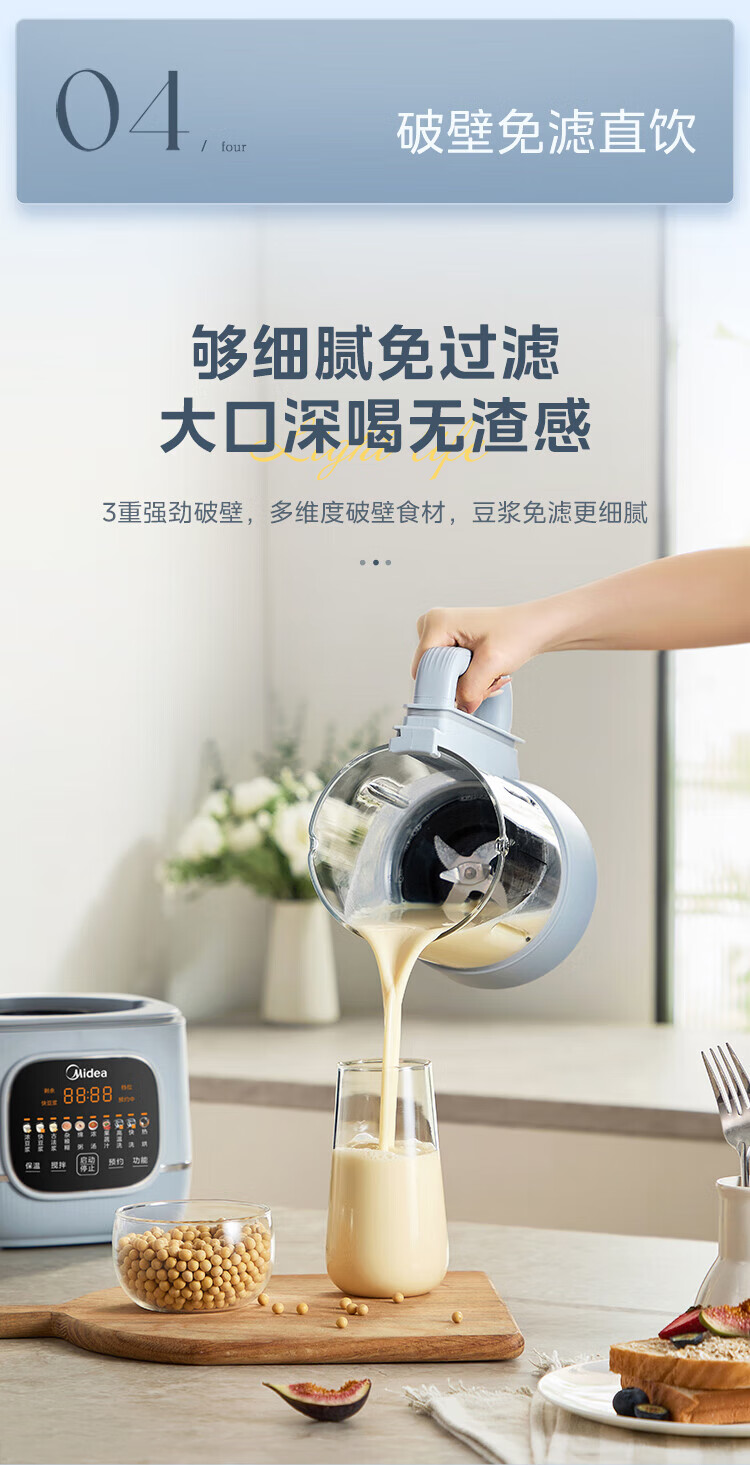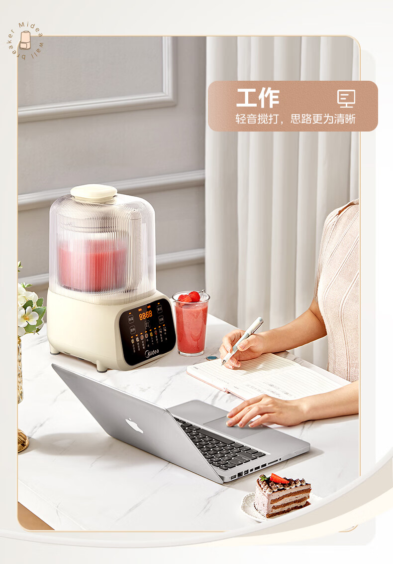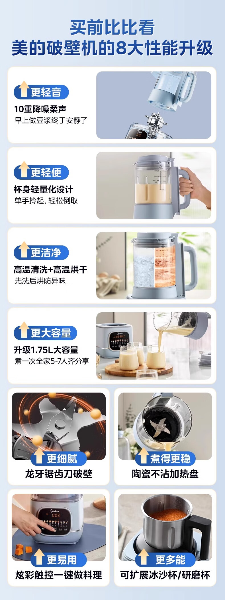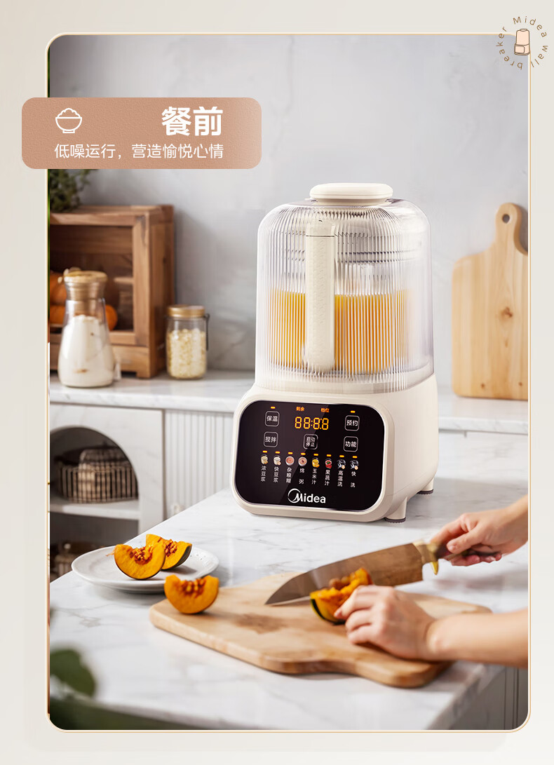 美的(Midea)大容量低音降噪破壁机 家用小米豆浆机料理辅食机全自动免过滤五谷杂粮榨汁机智能预约料理果汁机 【德国进口刀头 】-1.75L