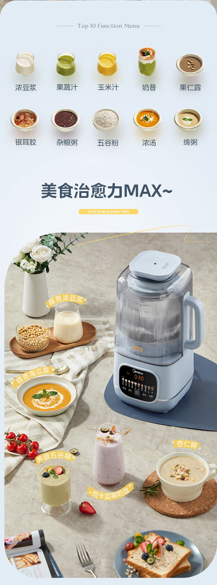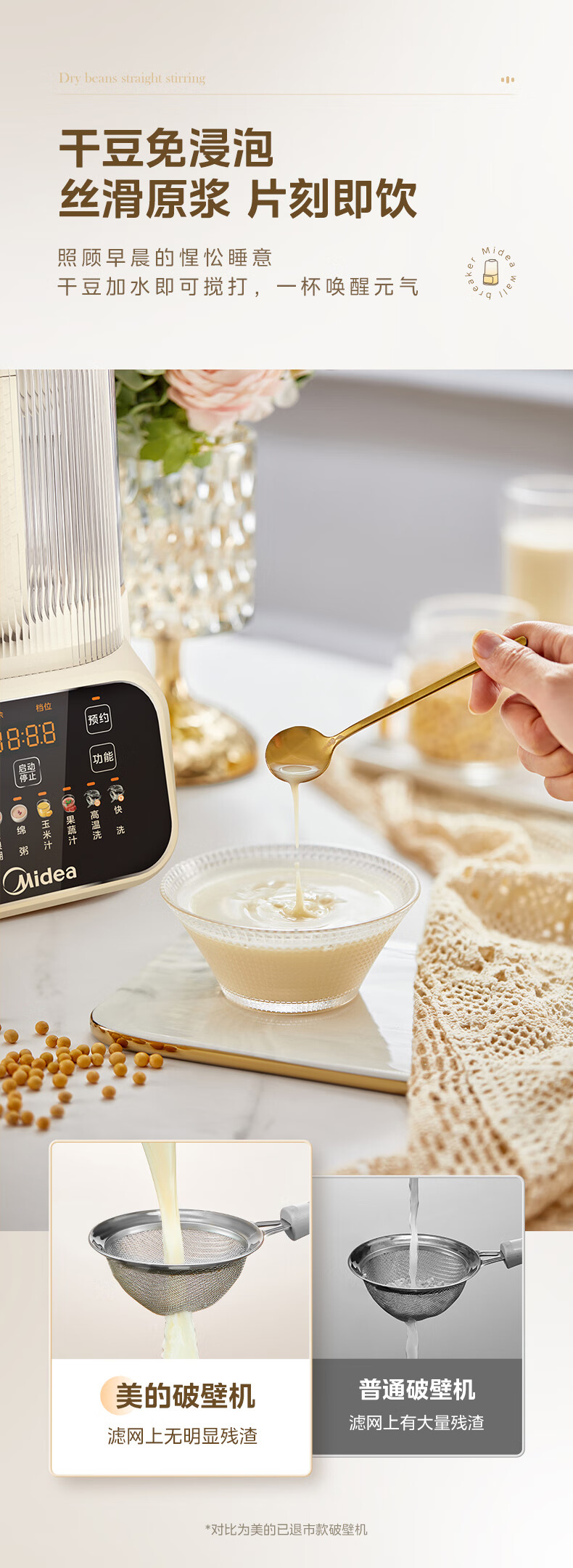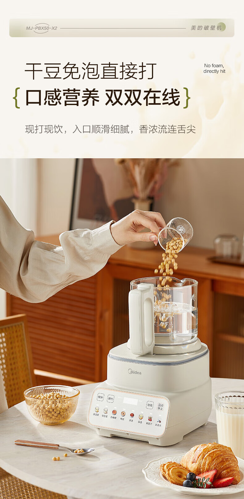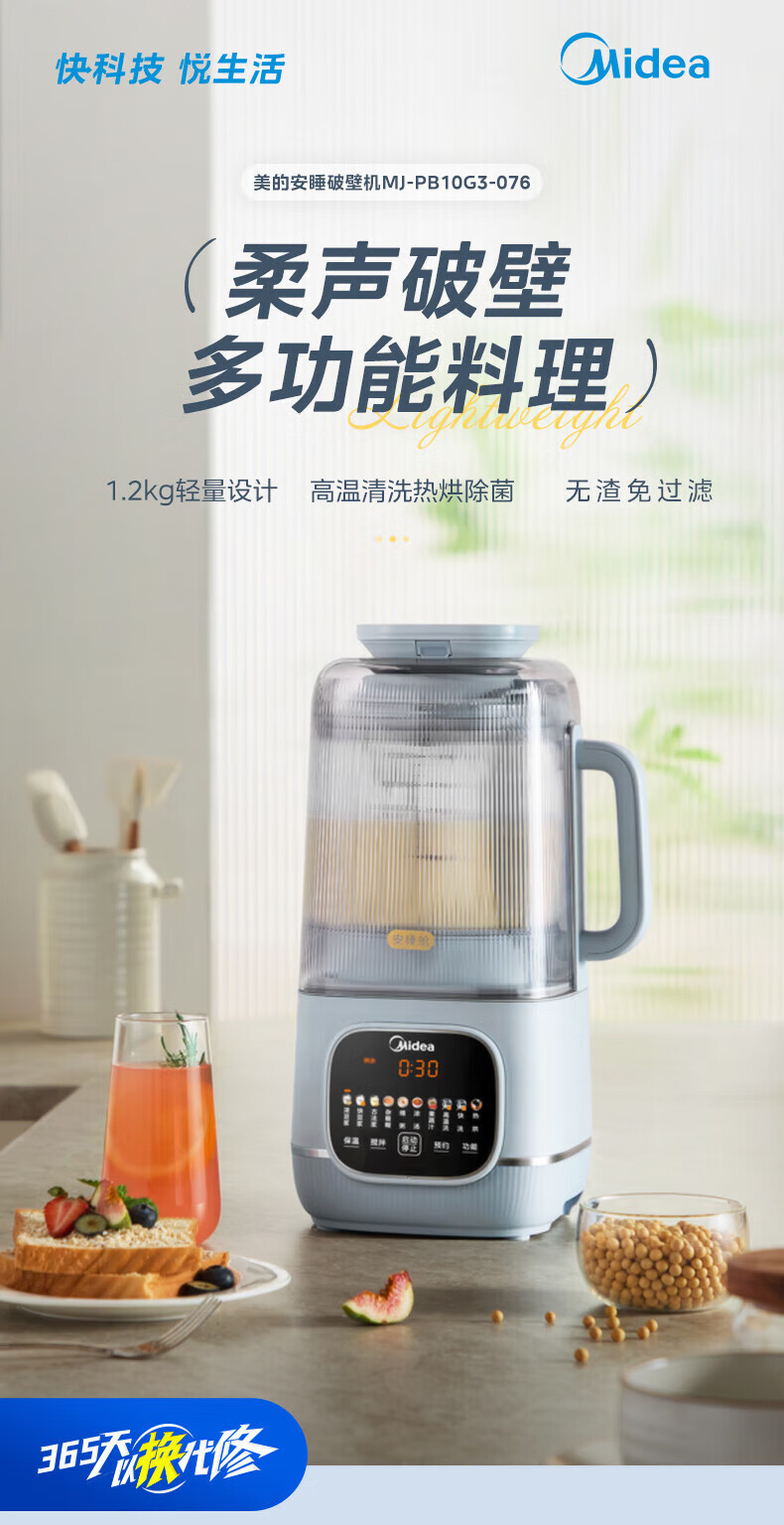 美的(Midea)大容量低音降噪破壁机 家用小米豆浆机料理辅食机全自动免过滤五谷杂粮榨汁机智能预约料理果汁机 【德国进口刀头 】-1.75L