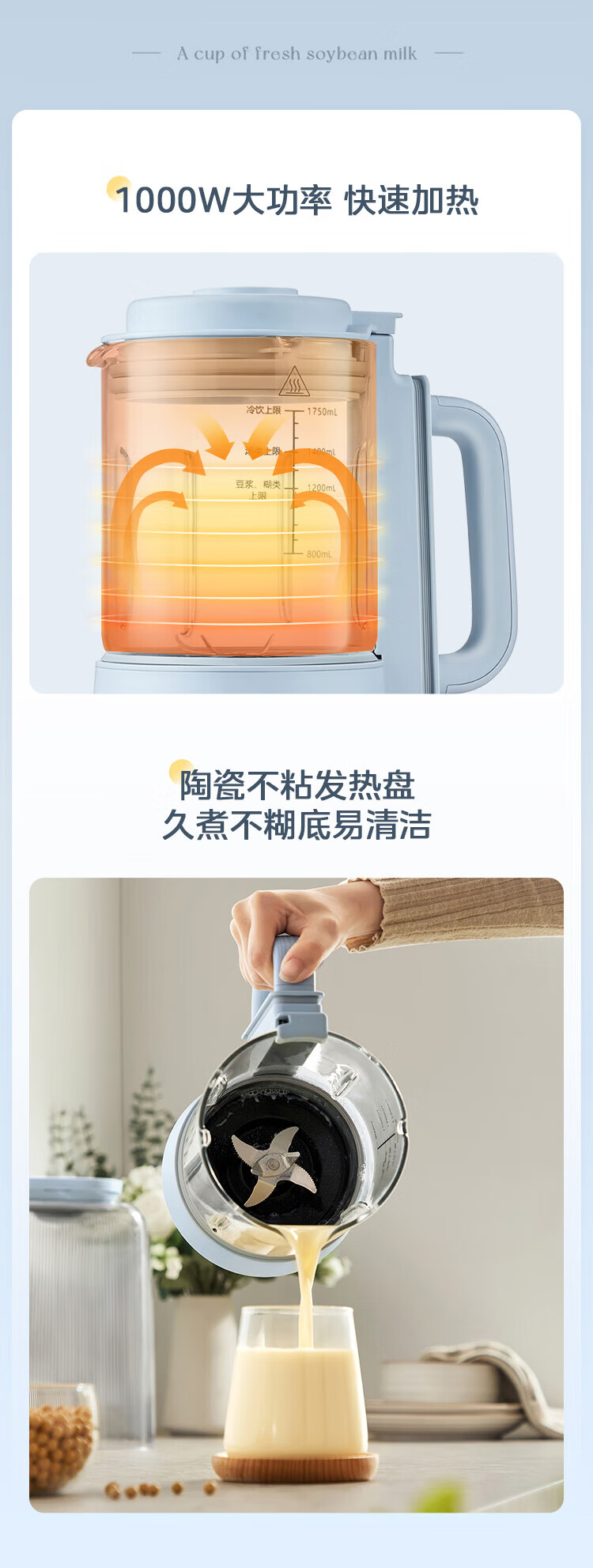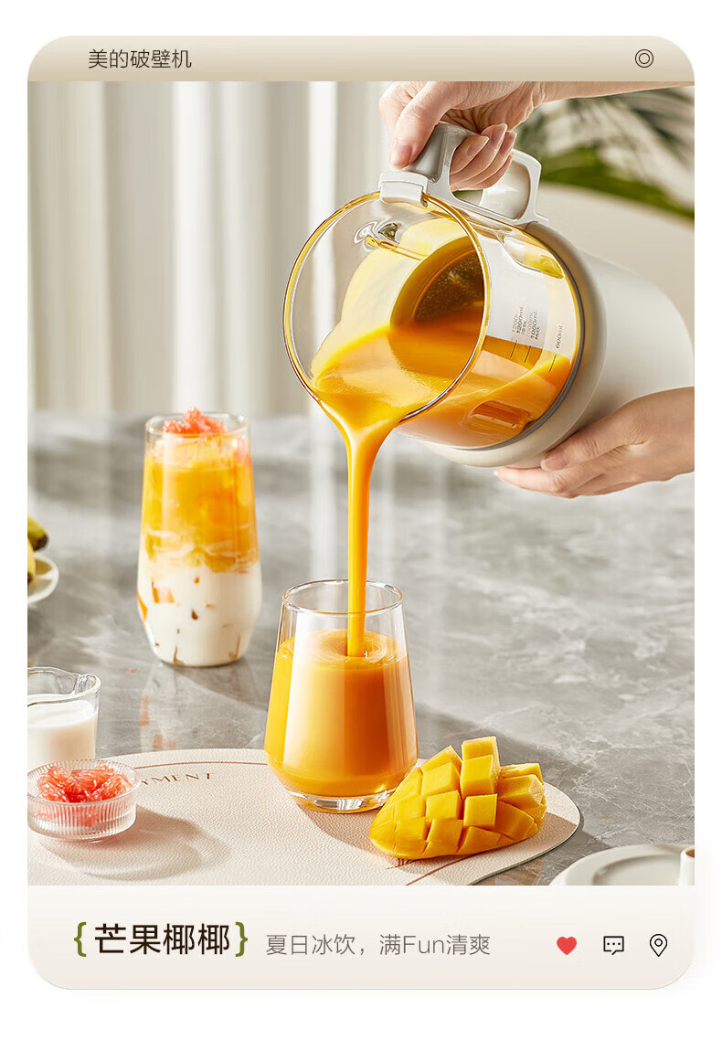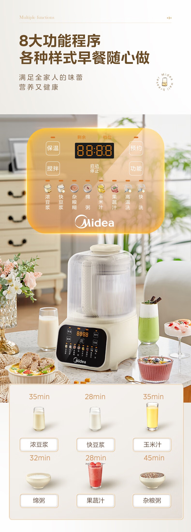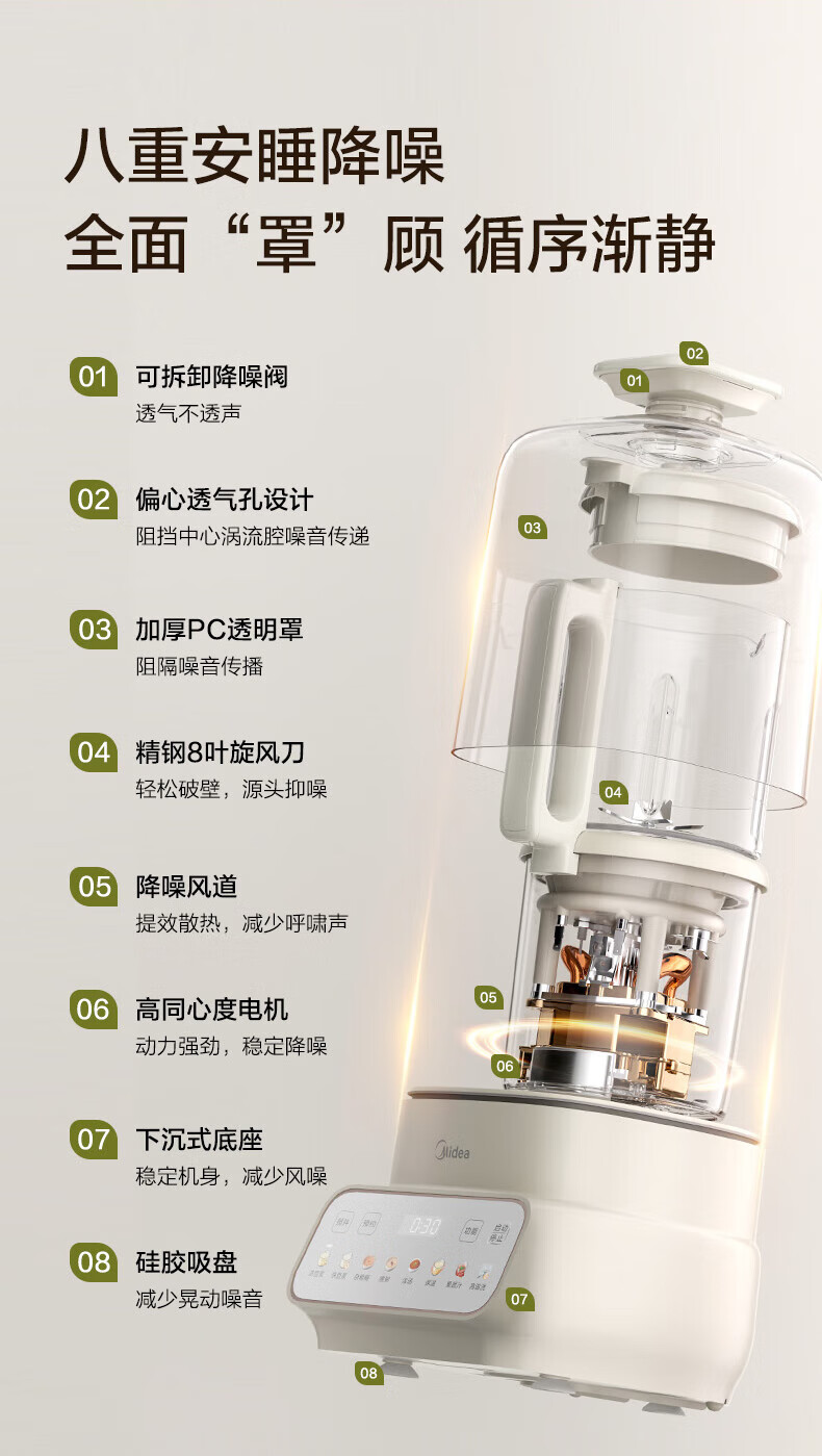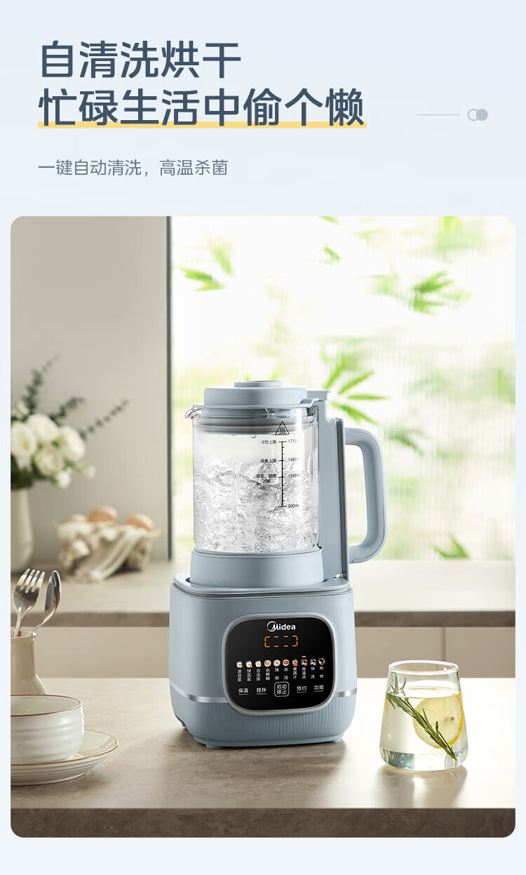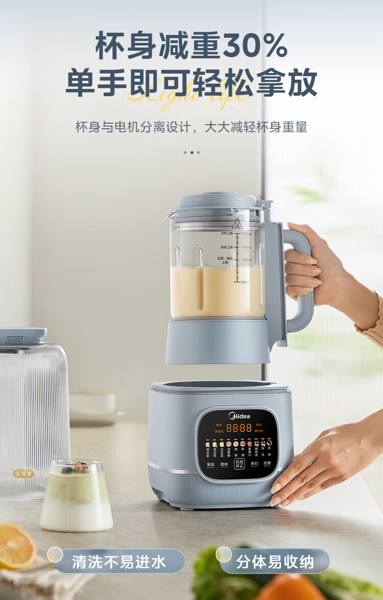 美的(Midea)大容量低音降噪破壁机 家用小米豆浆机料理辅食机全自动免过滤五谷杂粮榨汁机智能预约料理果汁机 【德国进口刀头 】-1.75L