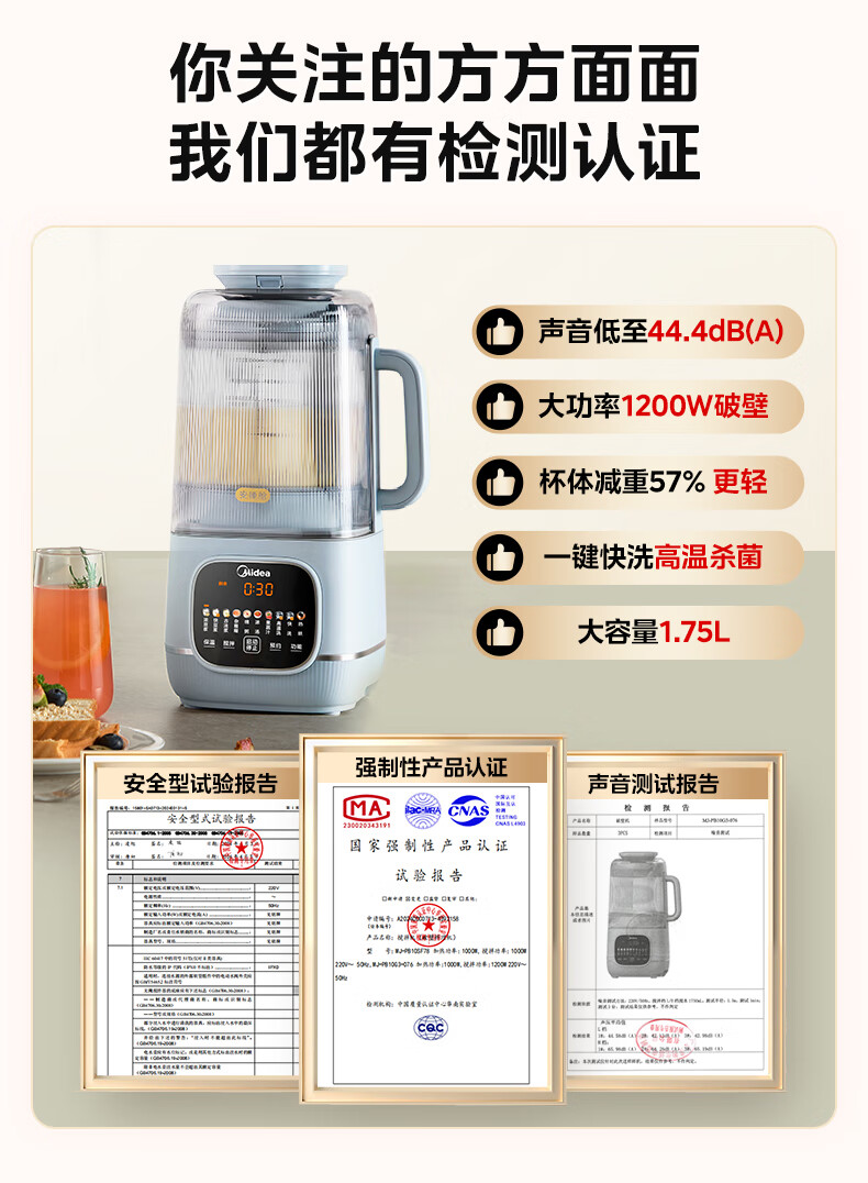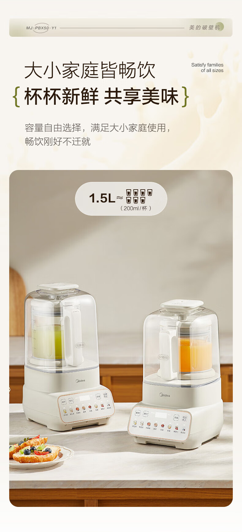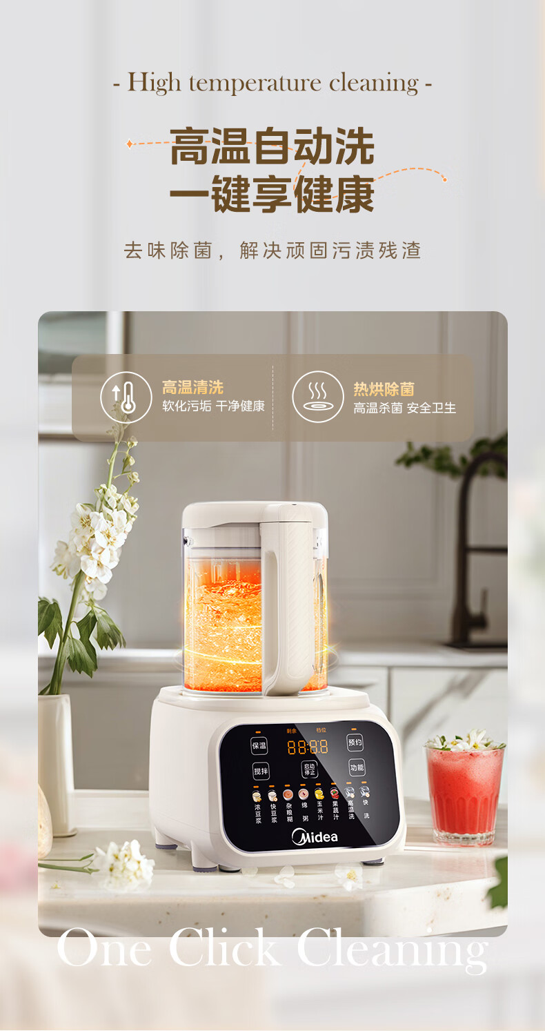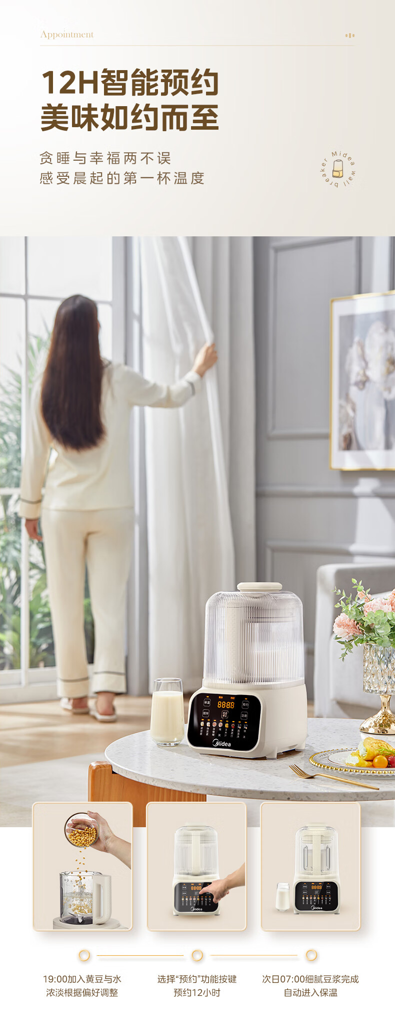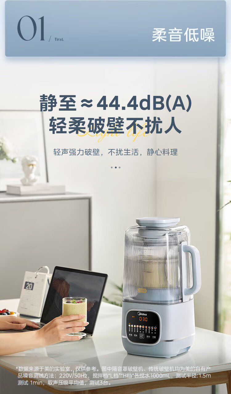 美的(Midea)大容量低音降噪破壁机 家用小米豆浆机料理辅食机全自动免过滤五谷杂粮榨汁机智能预约料理果汁机 【德国进口刀头 】-1.75L